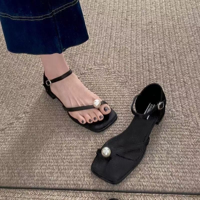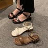 Sandalias de Tanga de Tacón Estilo Francés 2024 Primavera y Verano Nuevos Zapatos Romanos para Mujer Planos Antideslizantes Combinan con Todo Faldas Planas
