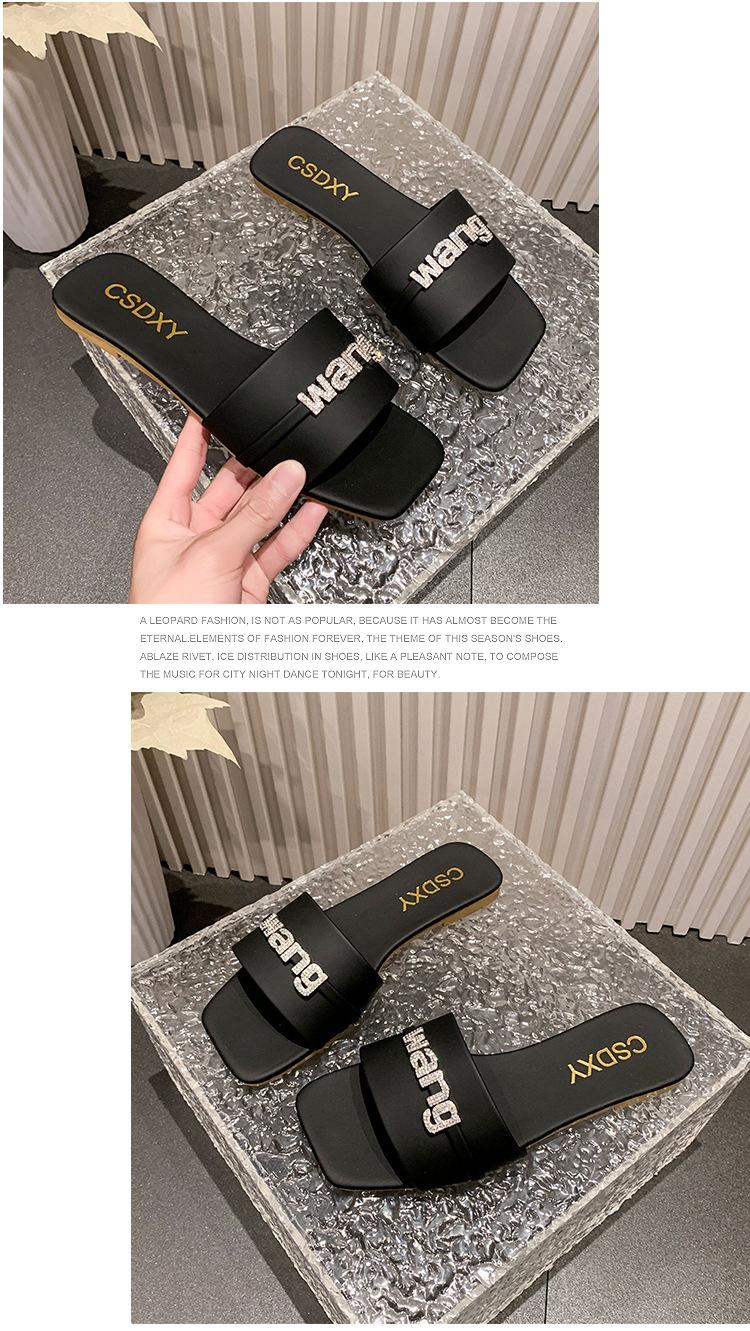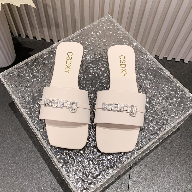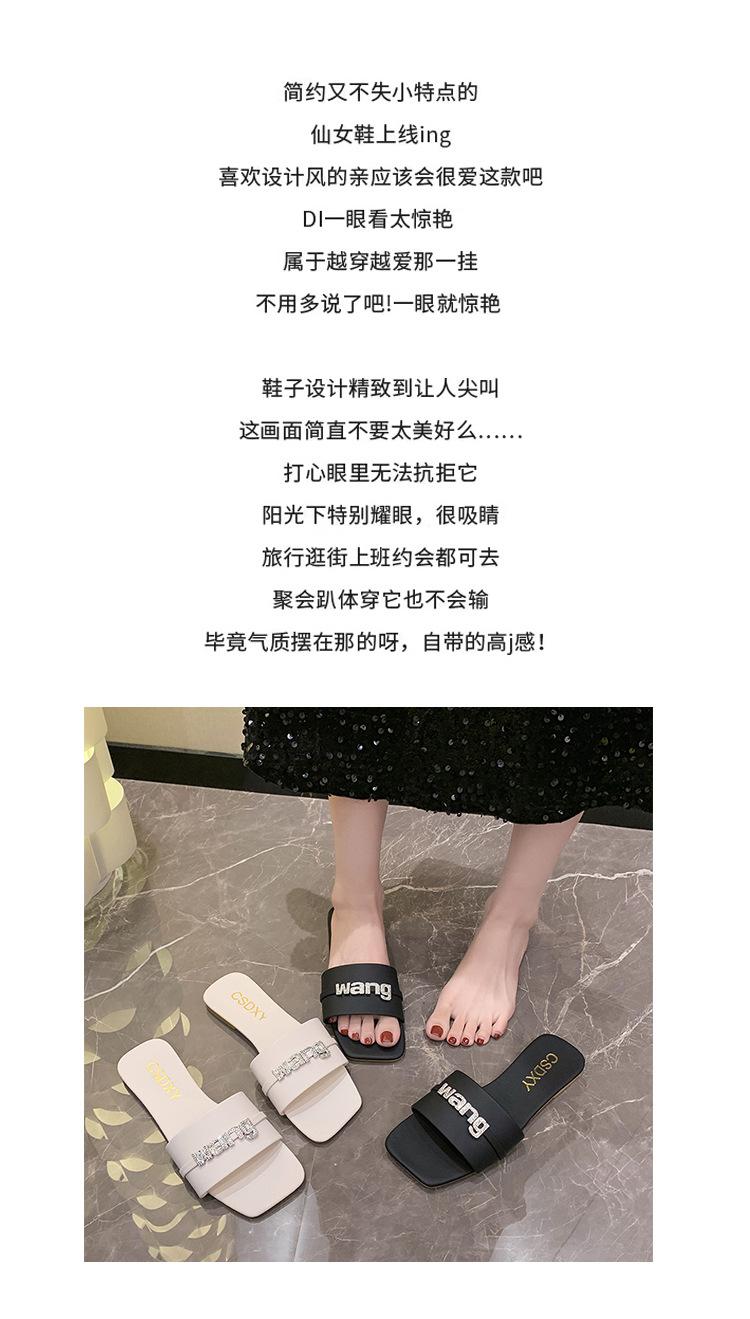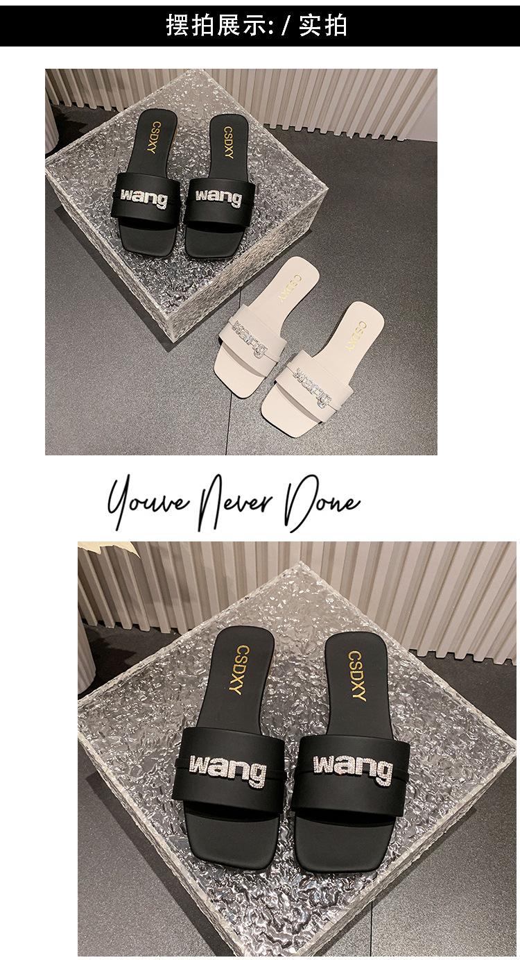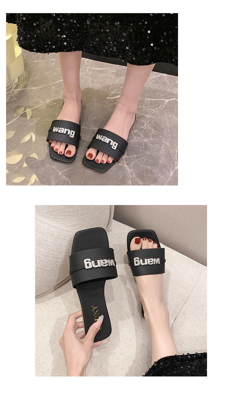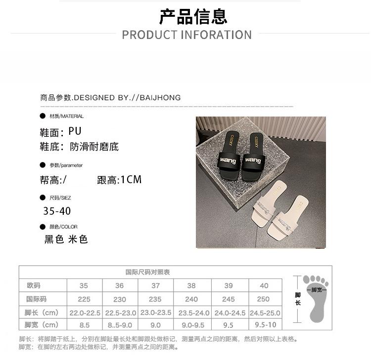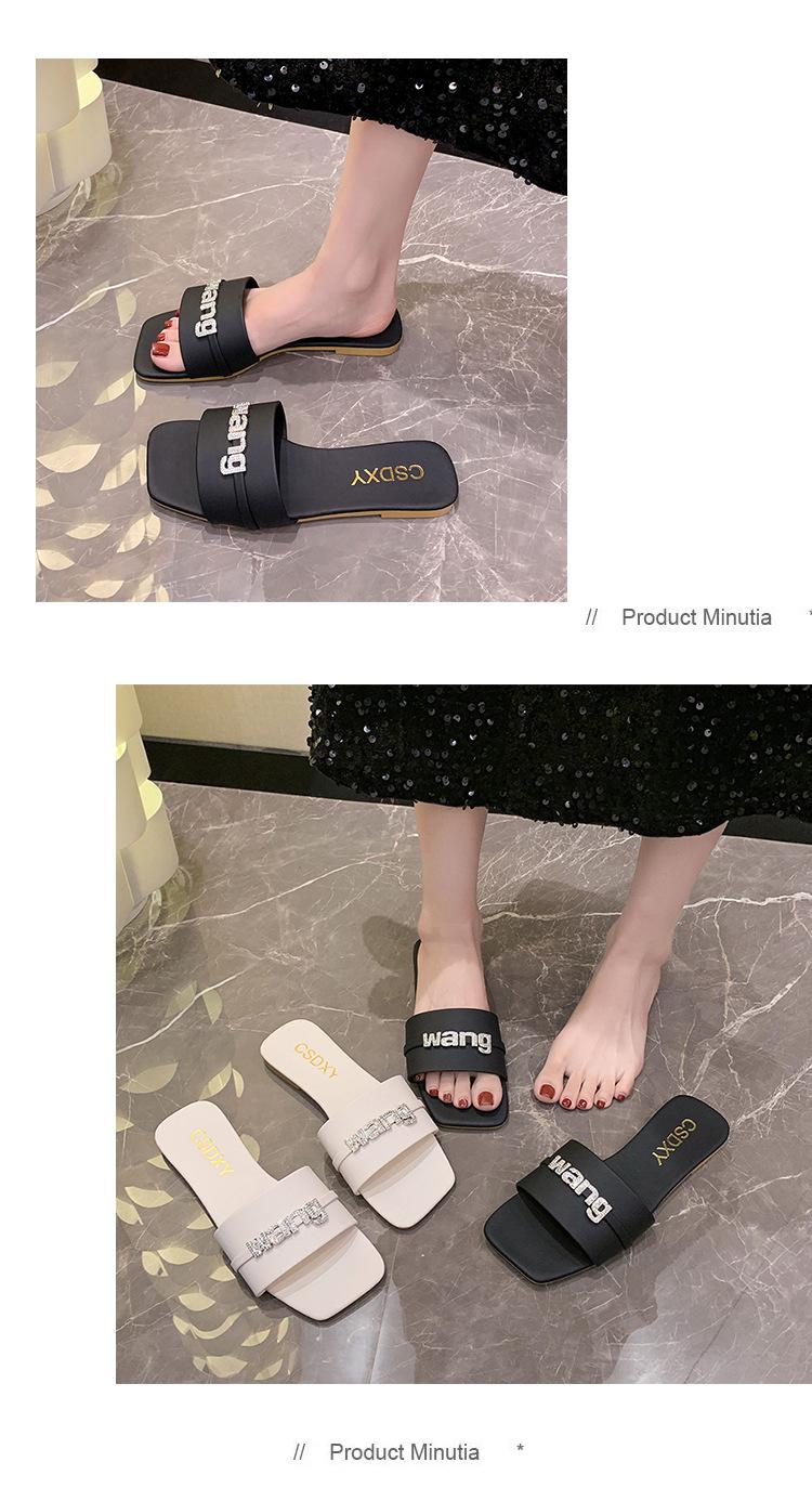 Verano 2025 Nuevo Talla Grande Transfronteriza Letra Zapatillas Planas para Mujer para Exterior Punta Cuadrada Puntera Abierta Sandalias de Moda