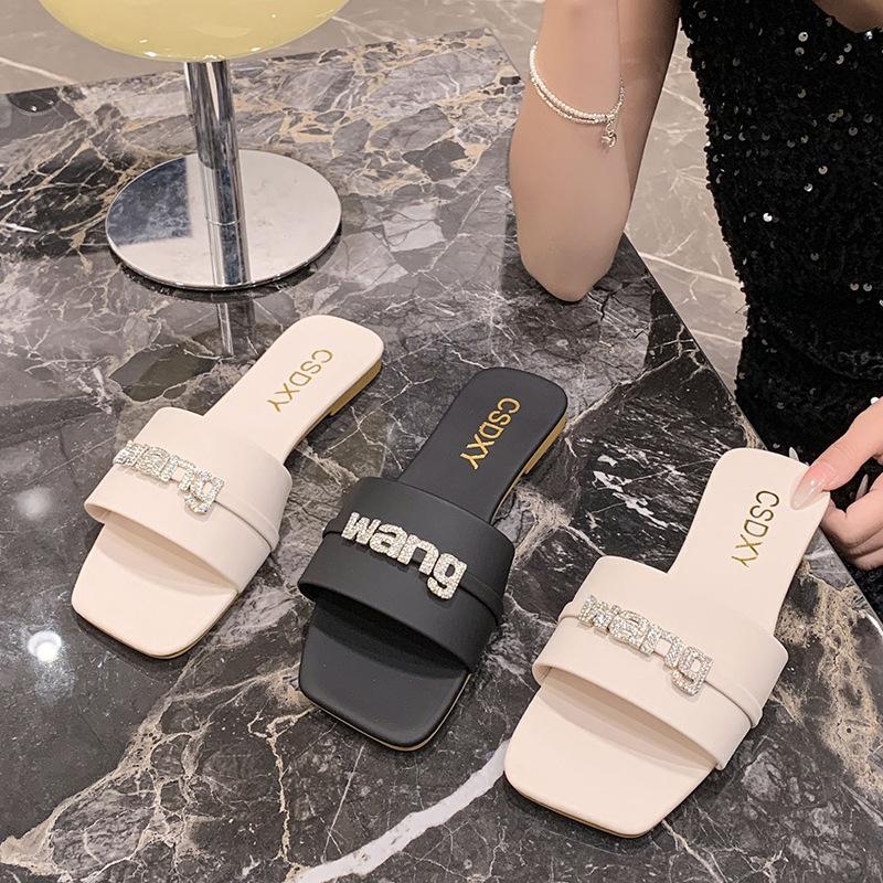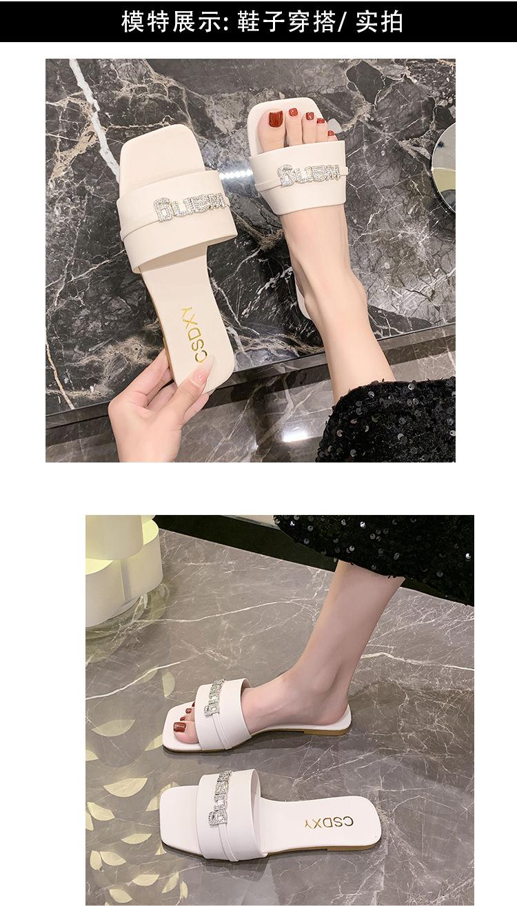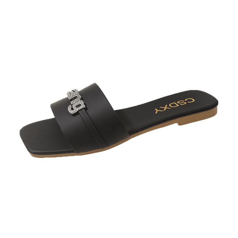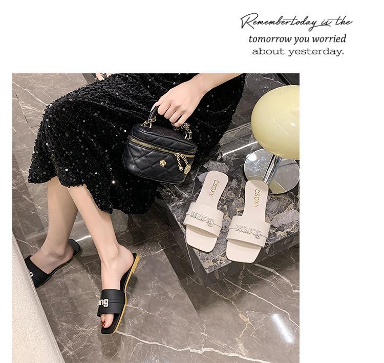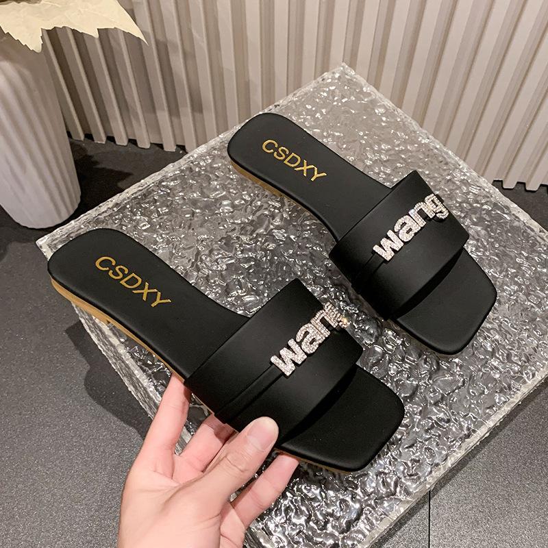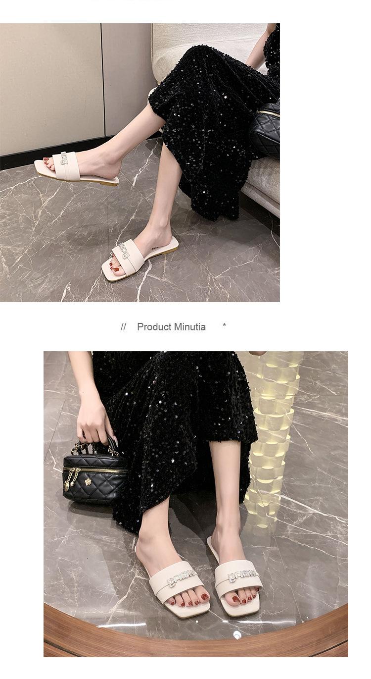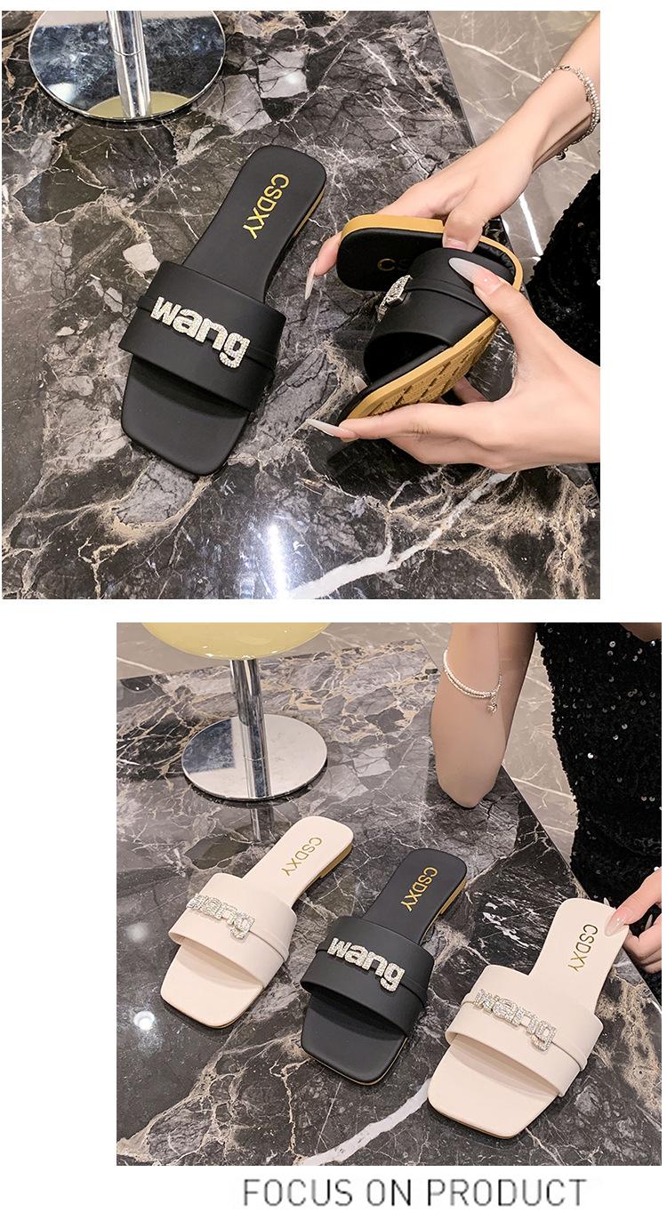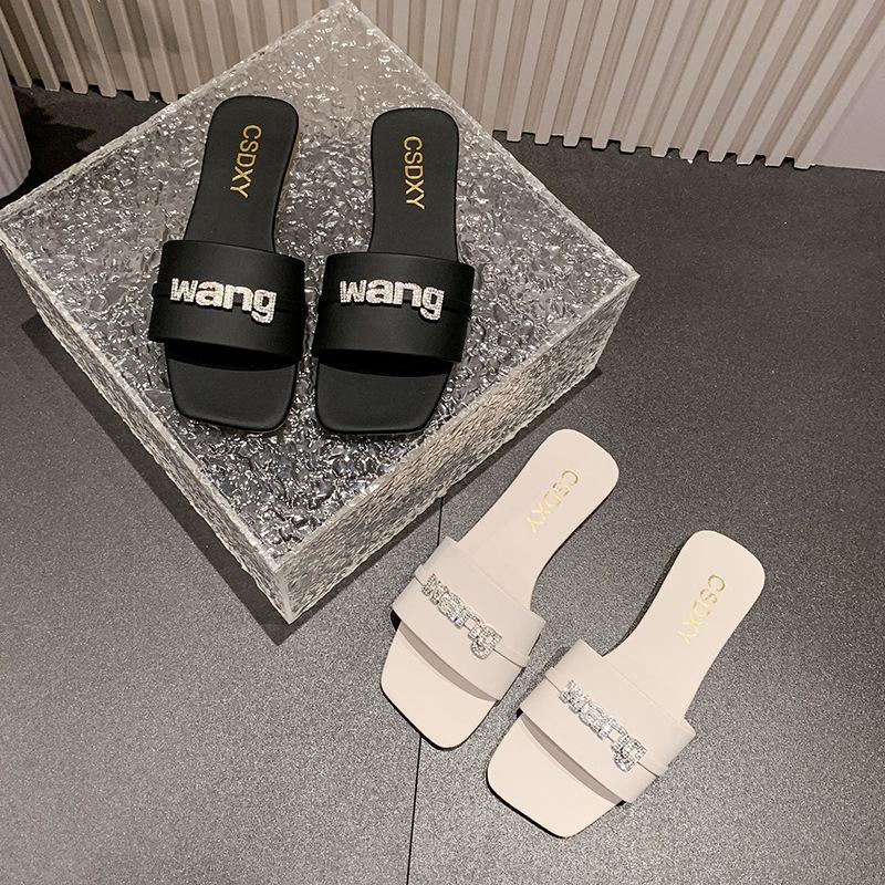 Verano 2025 Nuevo Talla Grande Transfronteriza Letra Zapatillas Planas para Mujer para Exterior Punta Cuadrada Puntera Abierta Sandalias de Moda