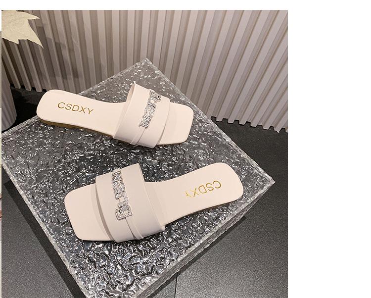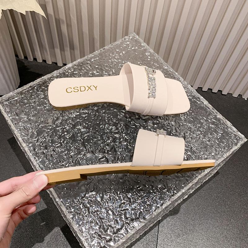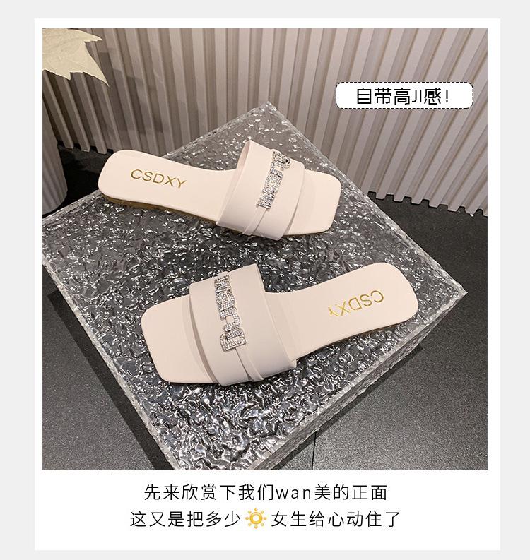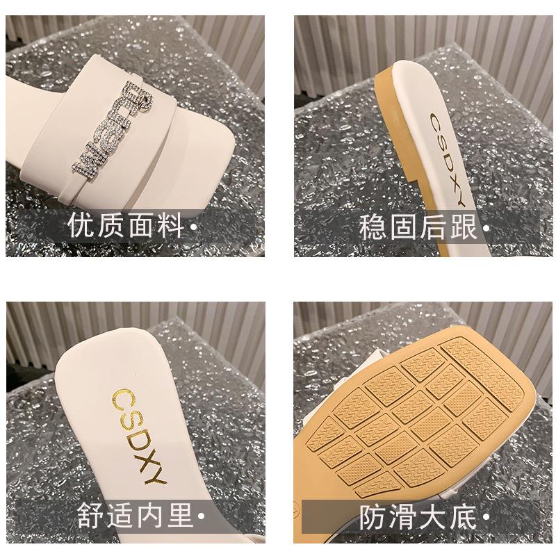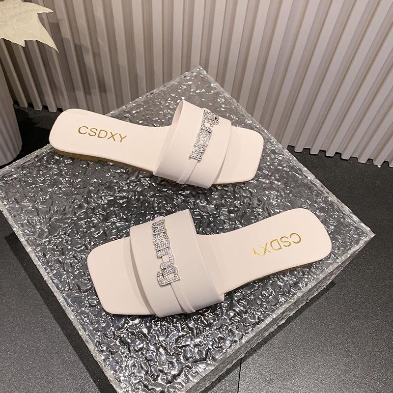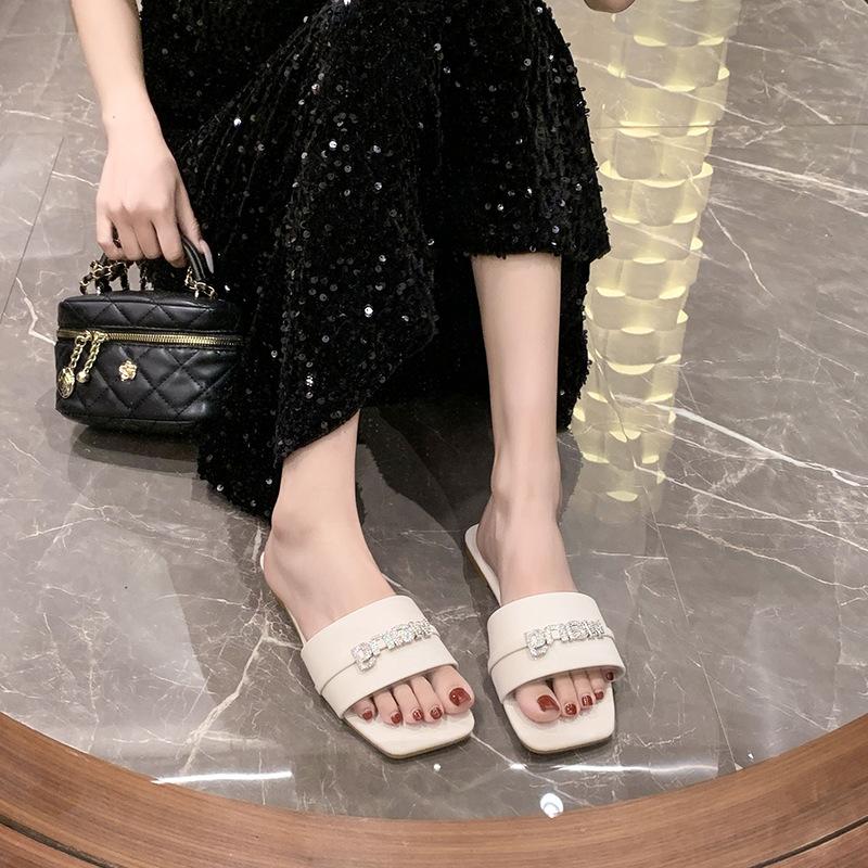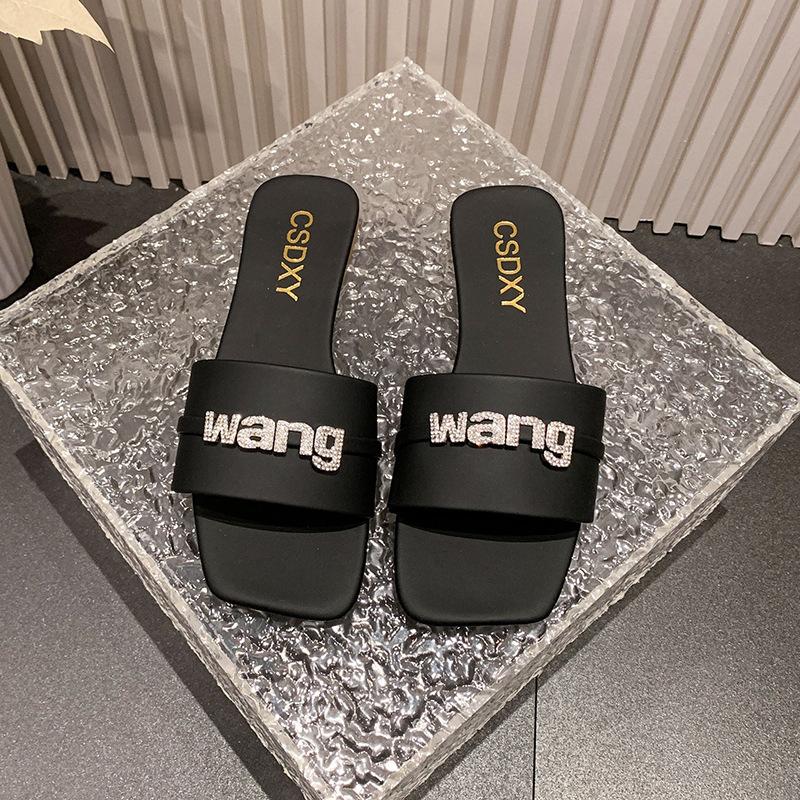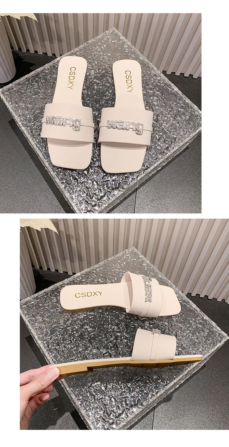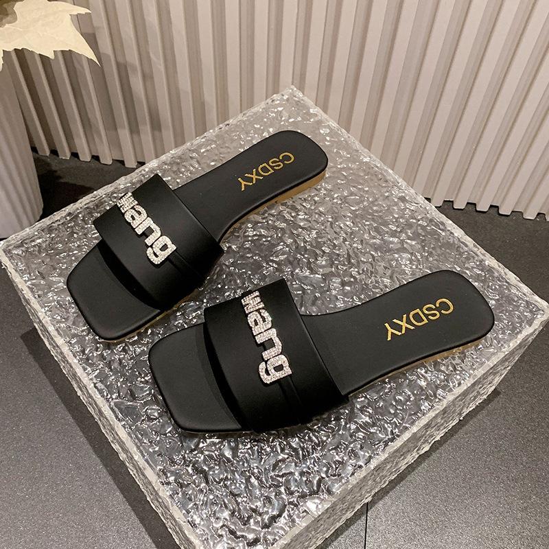 Verano 2025 Nuevo Talla Grande Transfronteriza Letra Zapatillas Planas para Mujer para Exterior Punta Cuadrada Puntera Abierta Sandalias de Moda