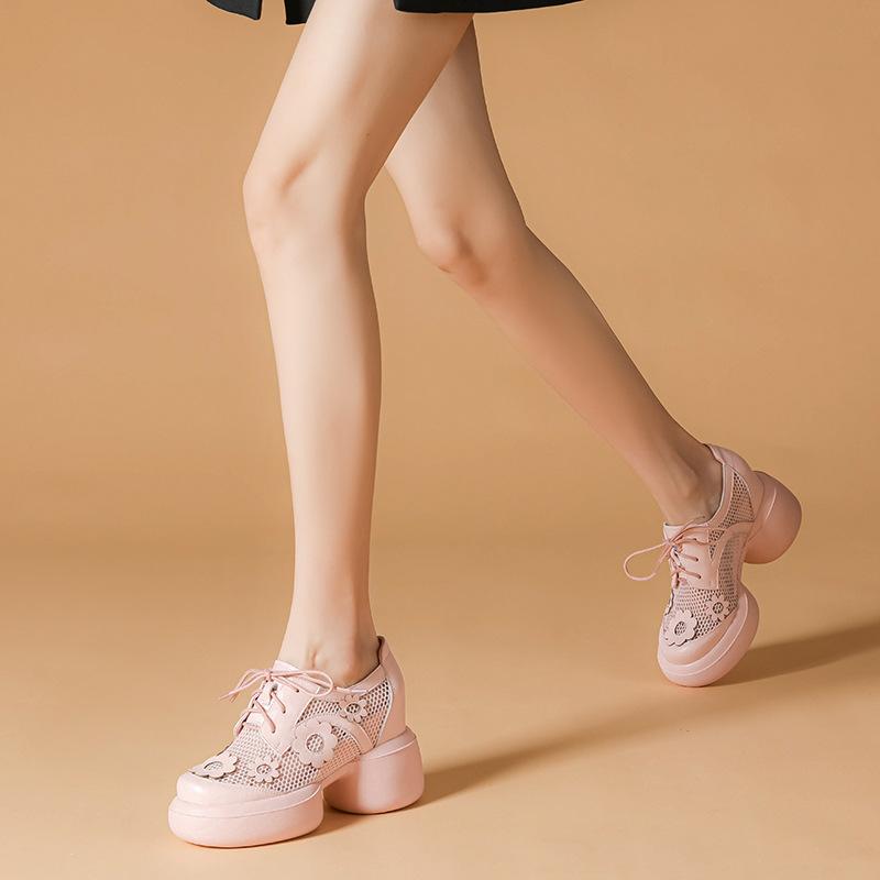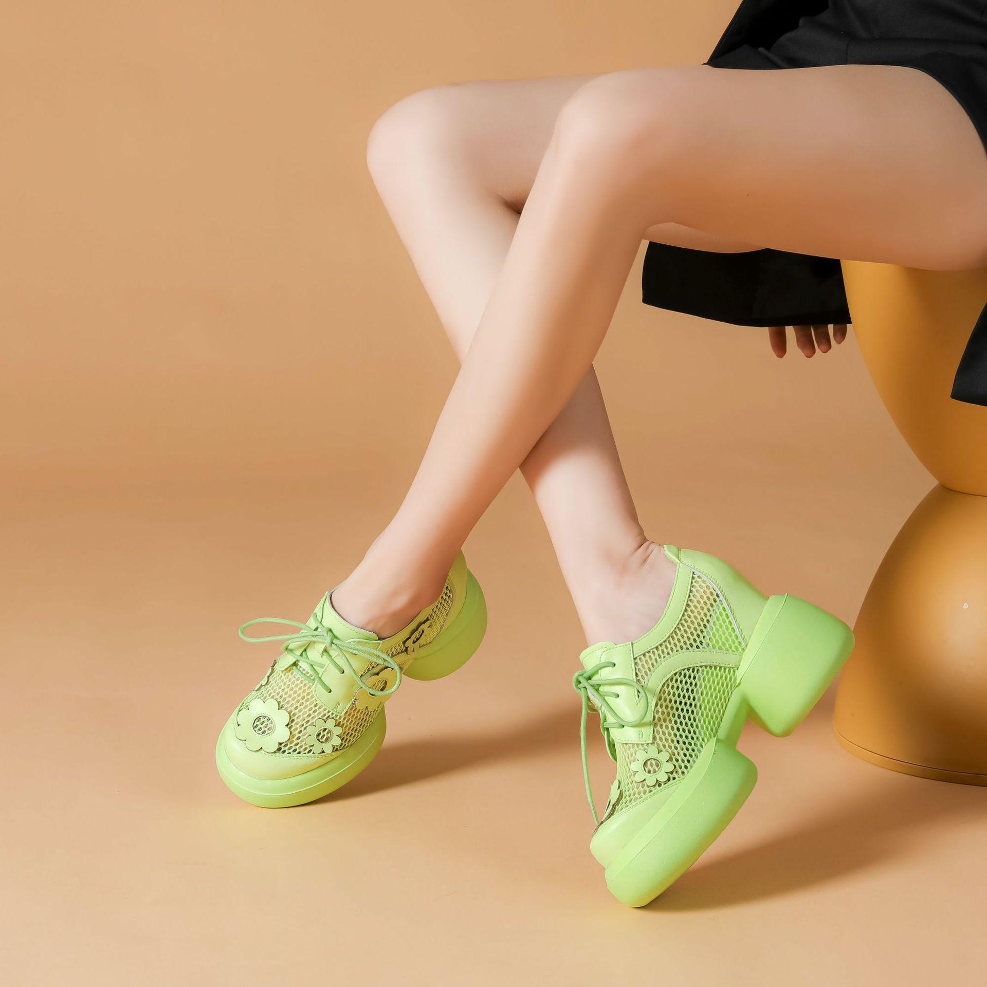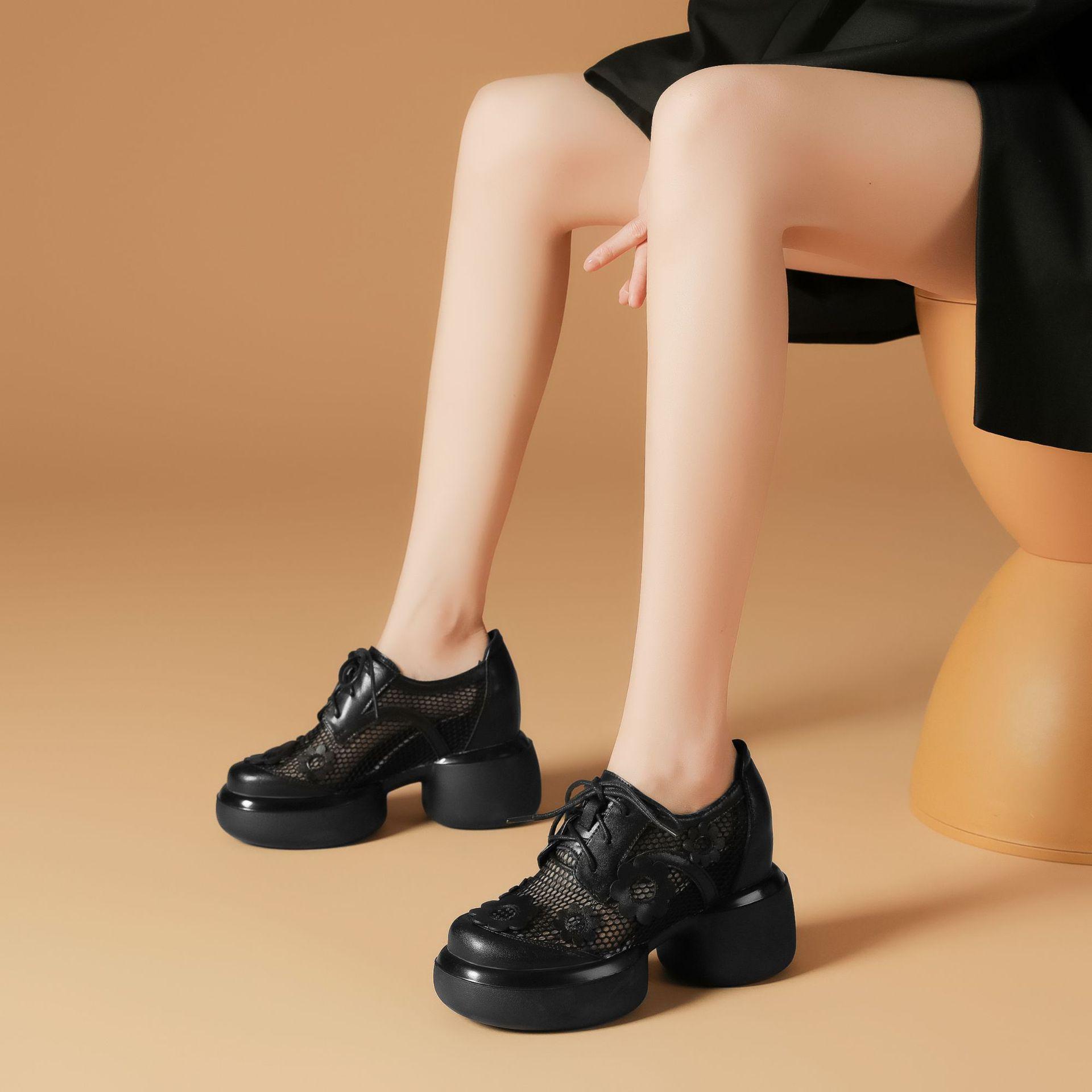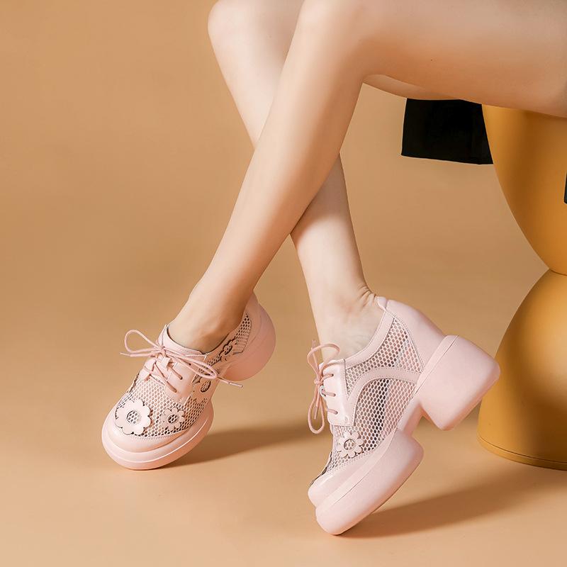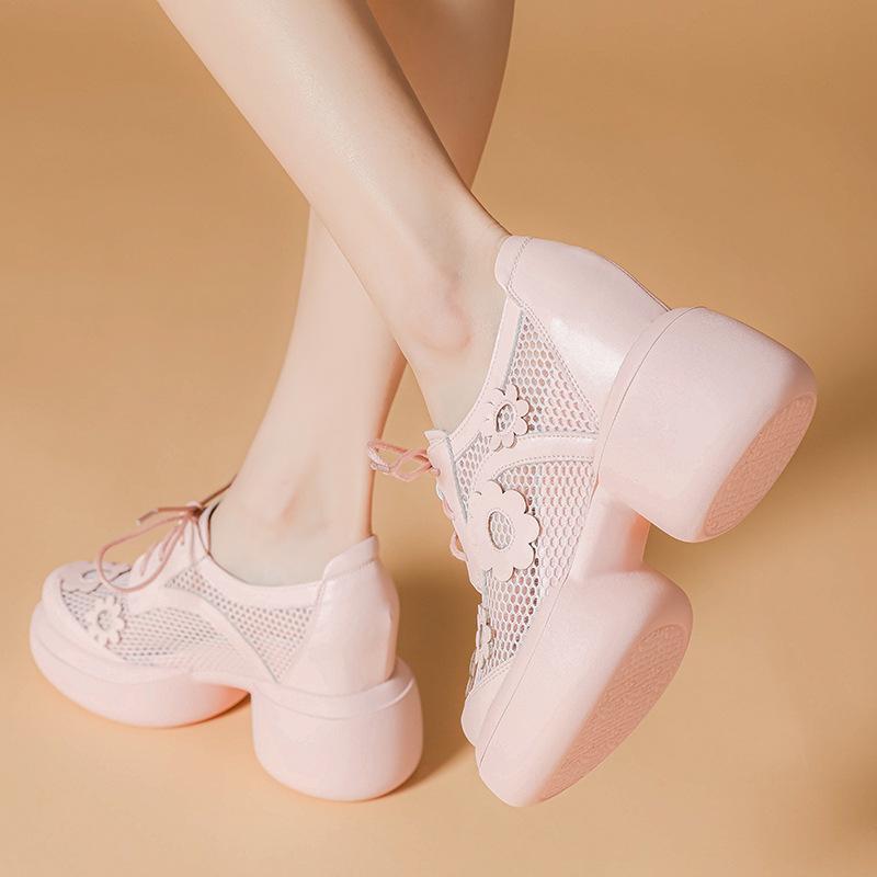 Zapatos de malla con suela gruesa de 10 cm, primavera y verano 2023, nuevos, transpirables, huecos, con tacón grueso, zapatos pequeños aumentados