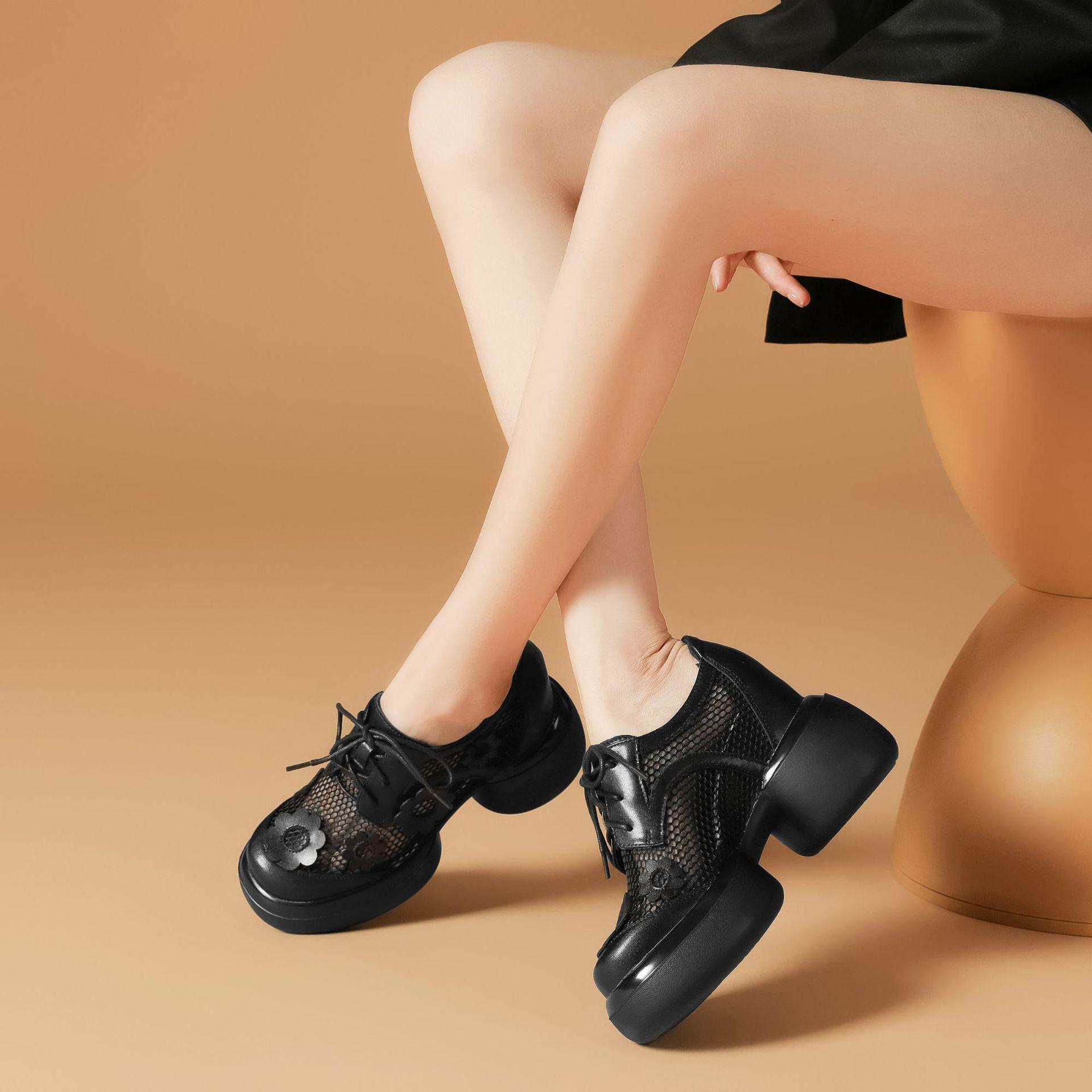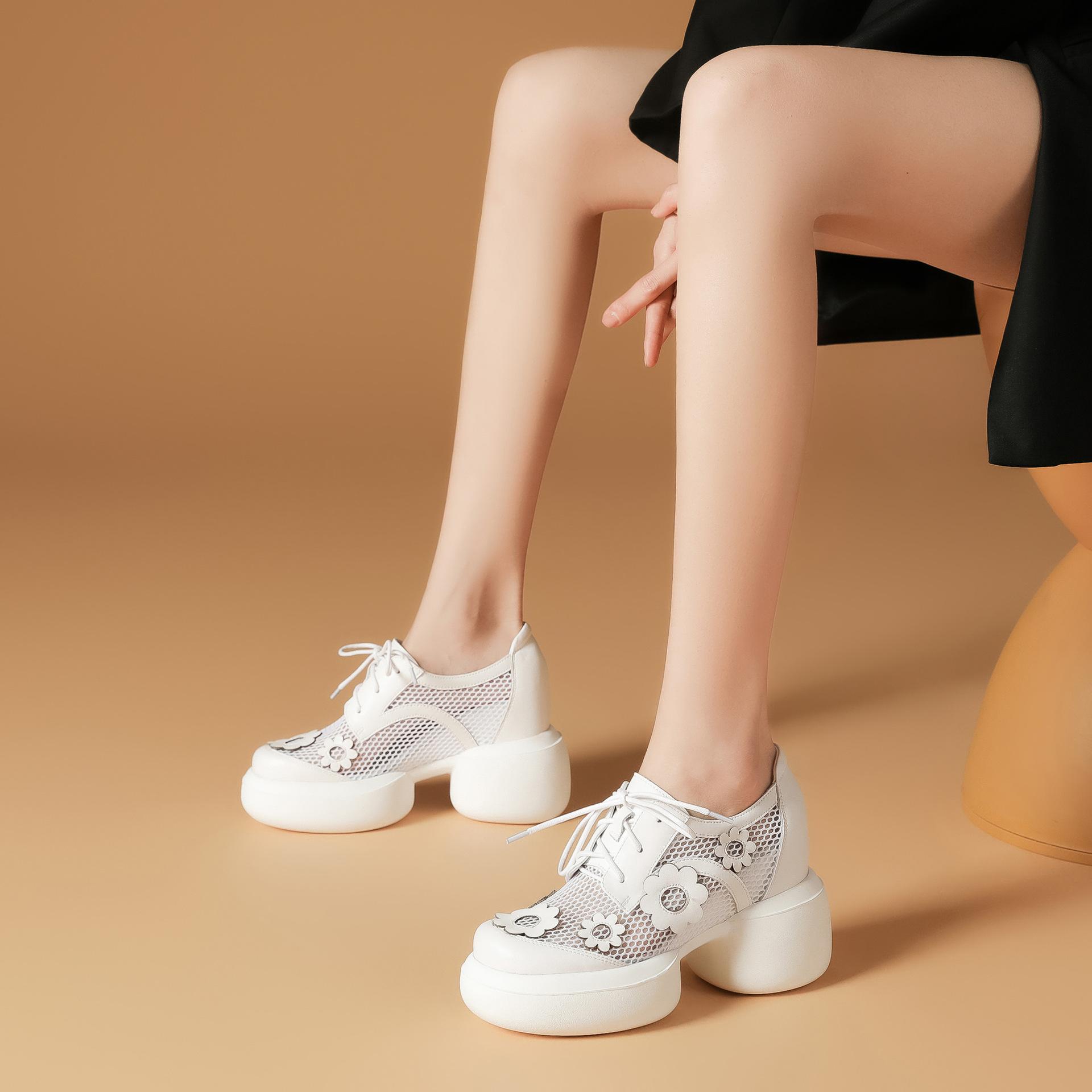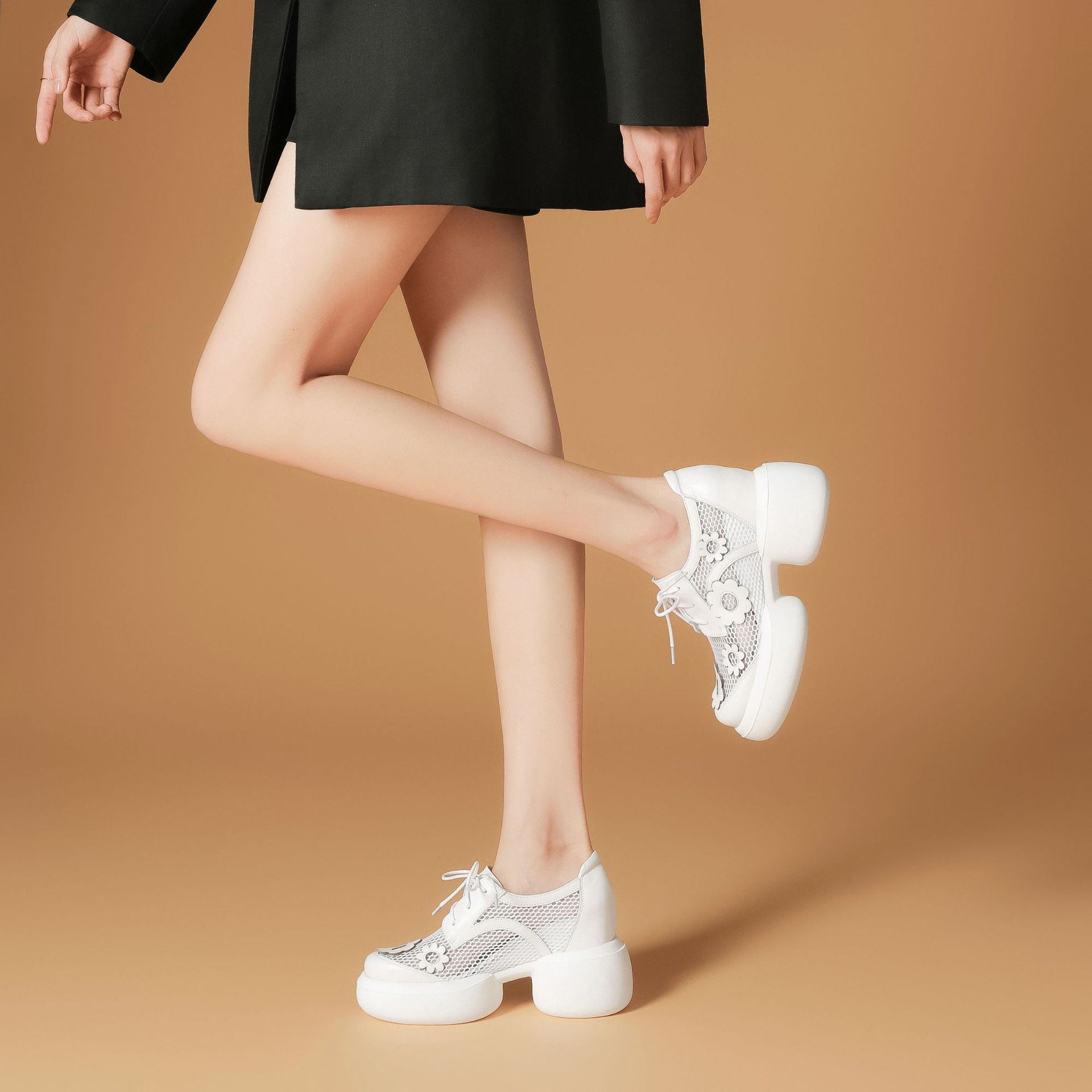Zapatos de malla con suela gruesa de 10 cm, primavera y verano 2023, nuevos, transpirables, huecos, con tacón grueso, zapatos pequeños aumentados