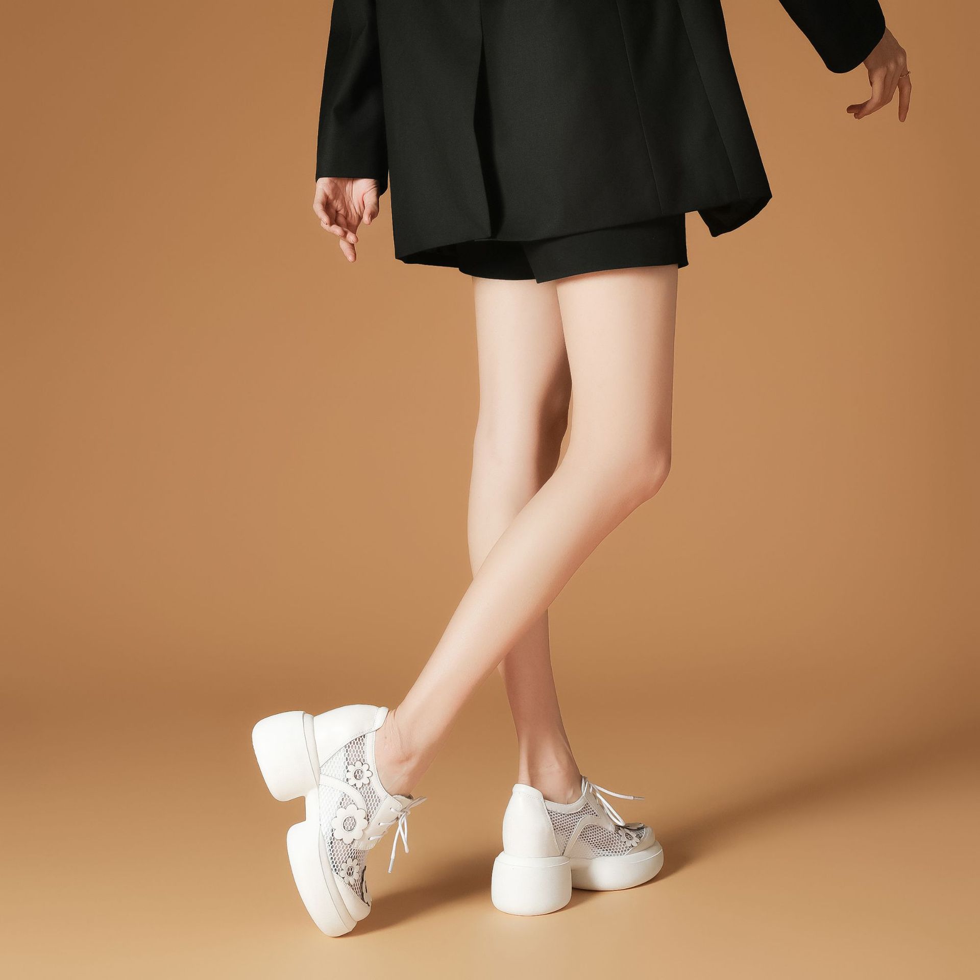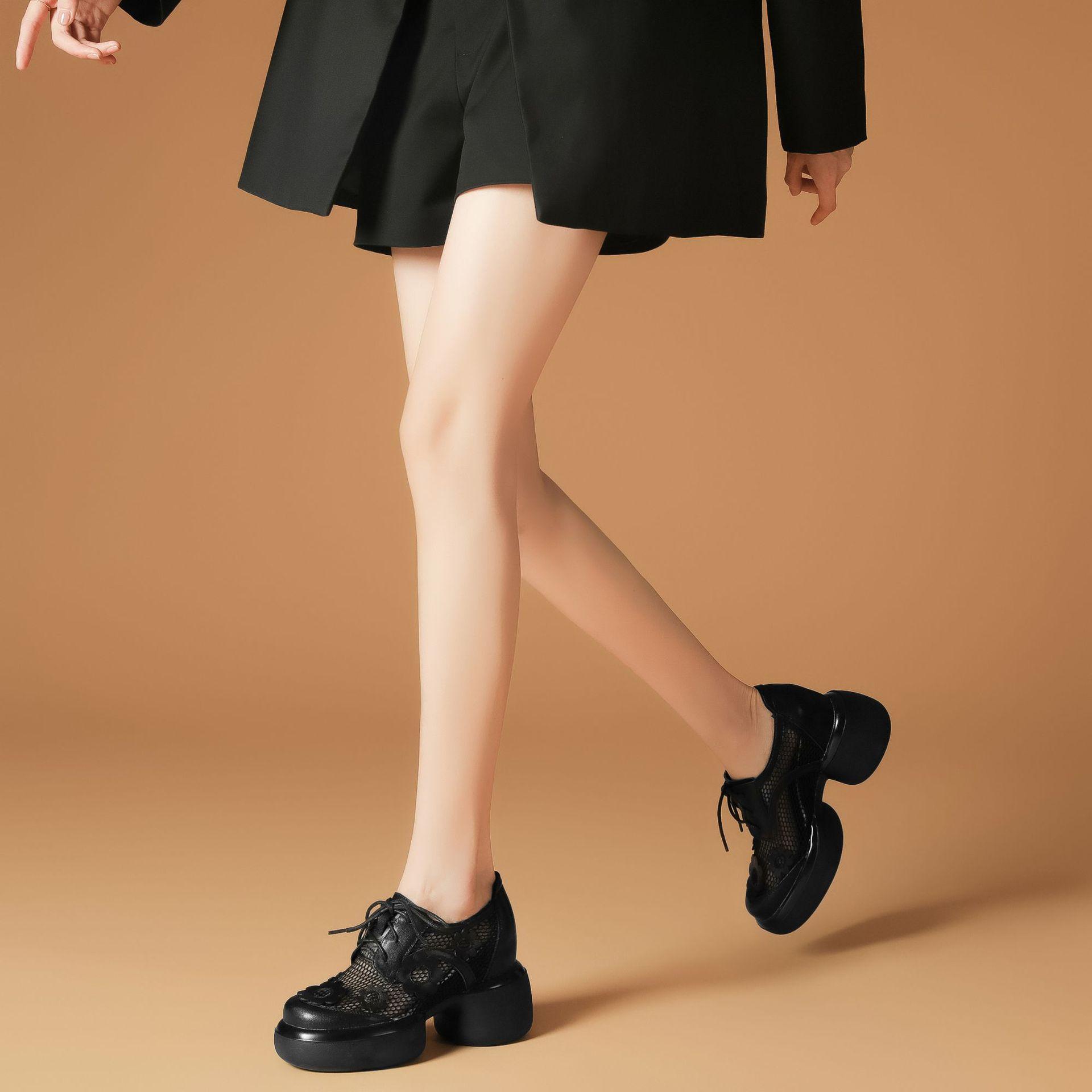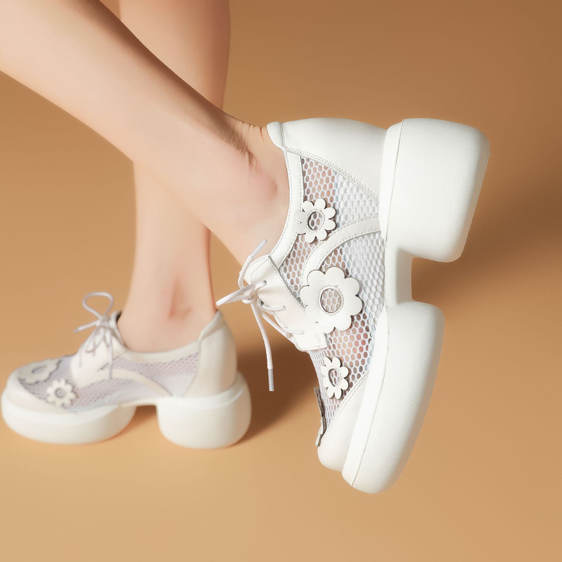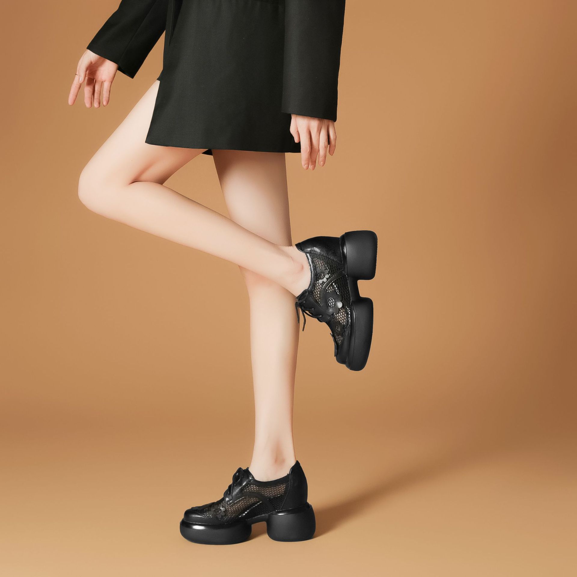 Zapatos de malla con suela gruesa de 10 cm, primavera y verano 2023, nuevos, transpirables, huecos, con tacón grueso, zapatos pequeños aumentados