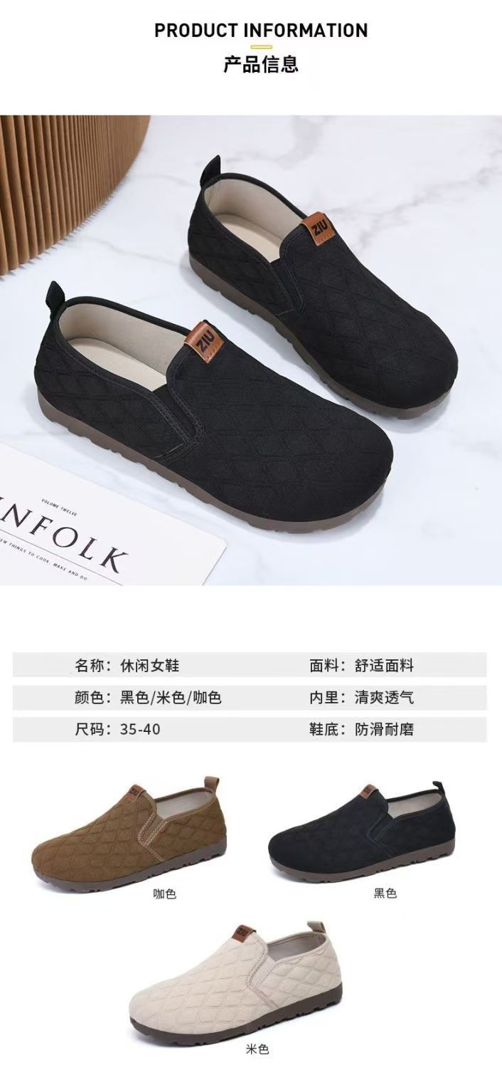 Zapatos de Verano Slip-On de Suela Blanda para Madres, Cómodos, Antideslizantes, Modernos, Transpirables, Ligeros, Versátiles Zapatos de Tela de Pekín, Transpirables y Cómodos