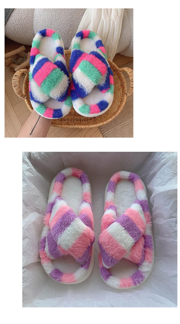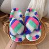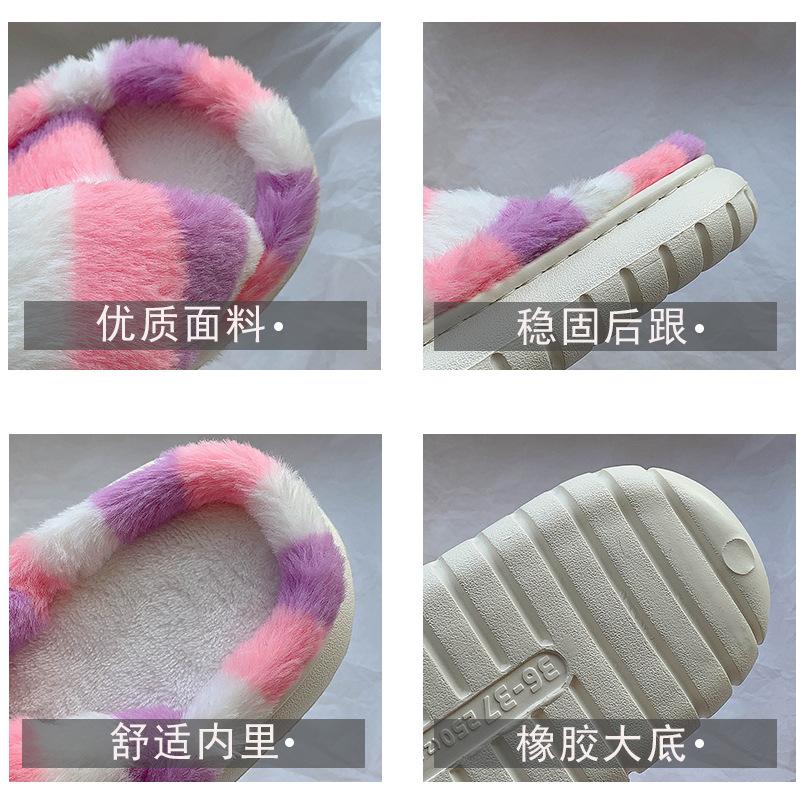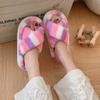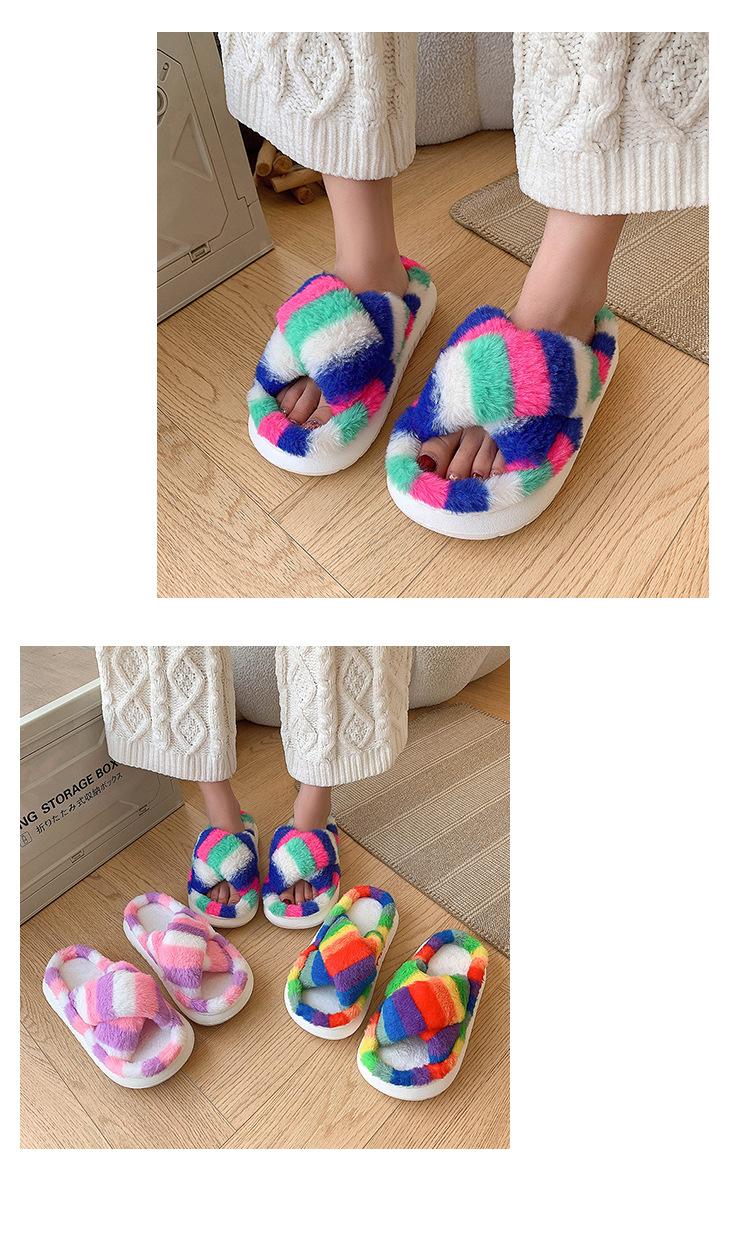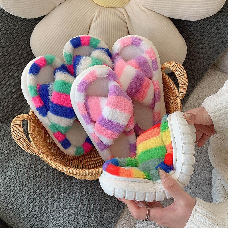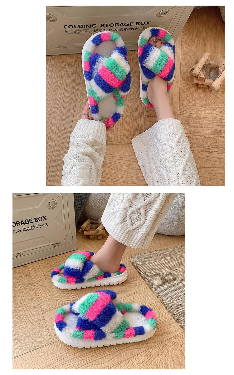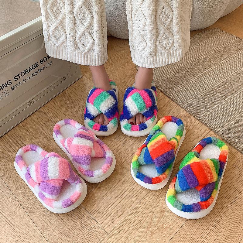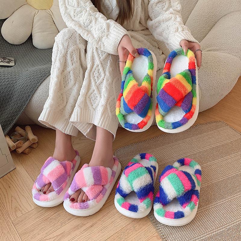 Zapatillas Mao Mao para mujer, otoño e invierno 2024, nuevas zapatillas de felpa coloridas de algodón con suela gruesa cruzada para el hogar, comercio exterior, talla grande