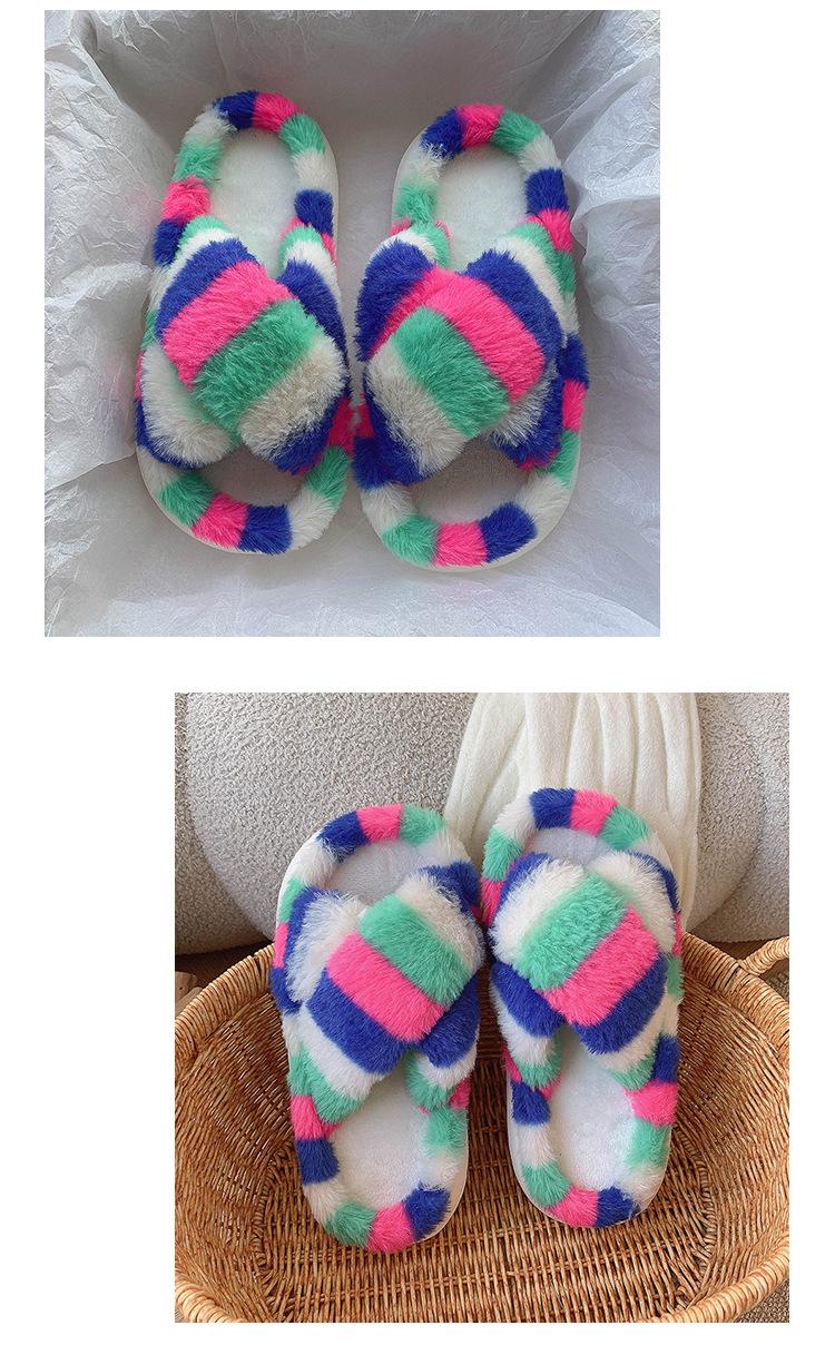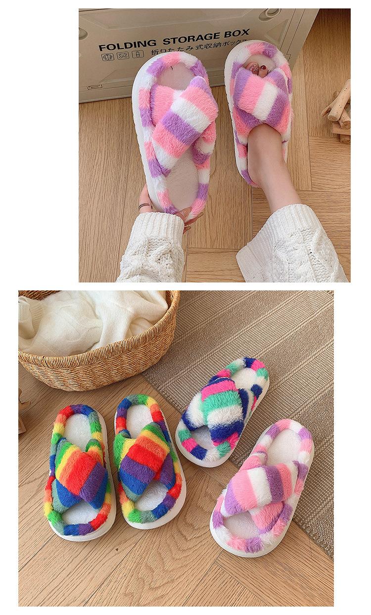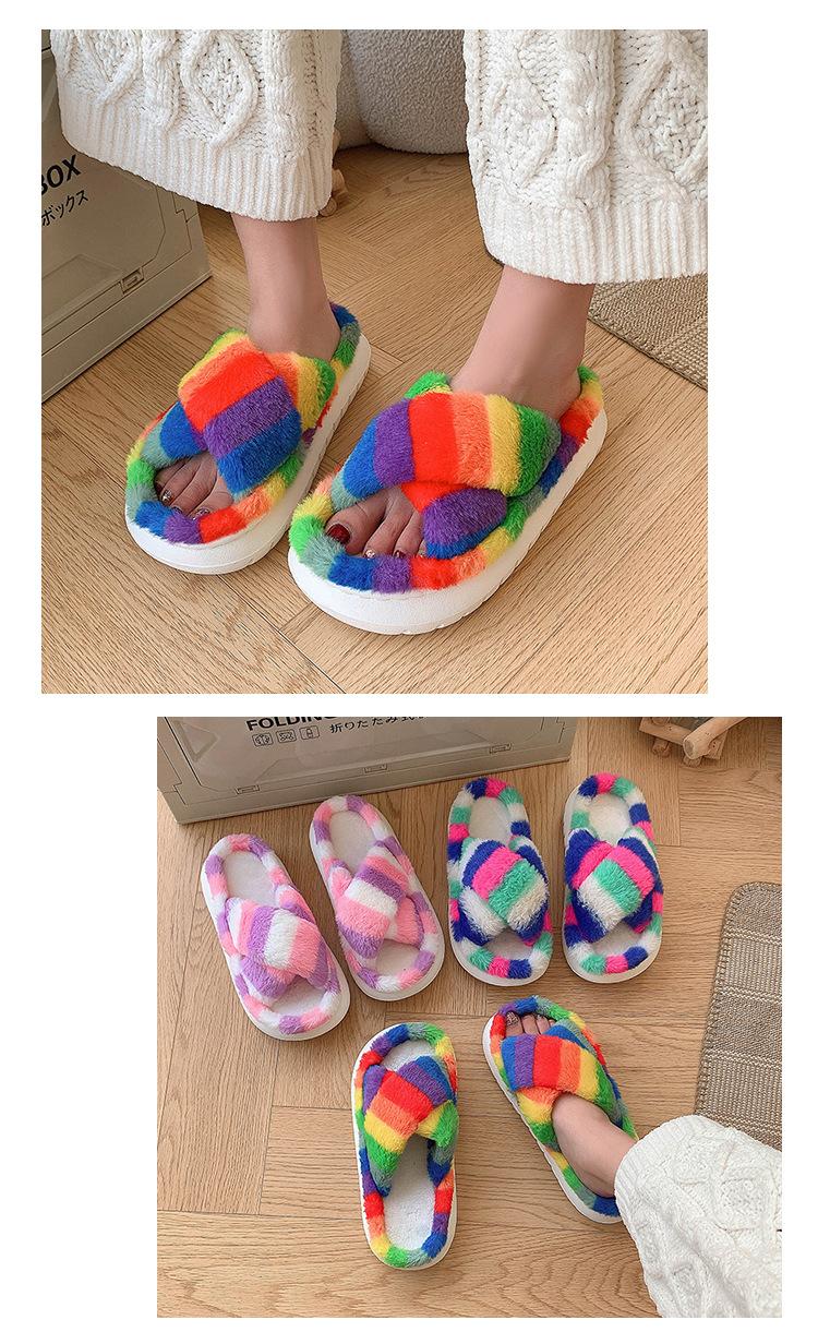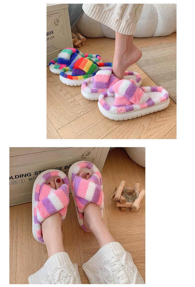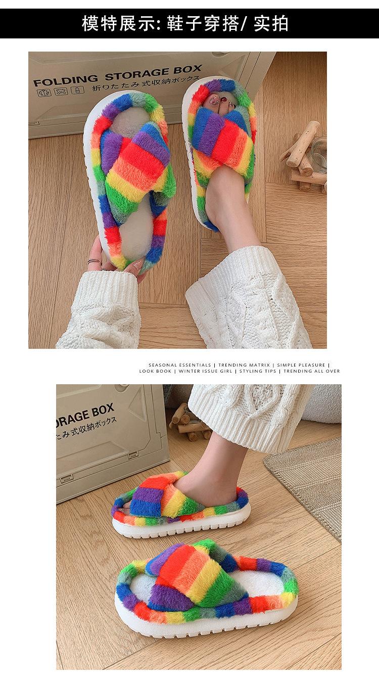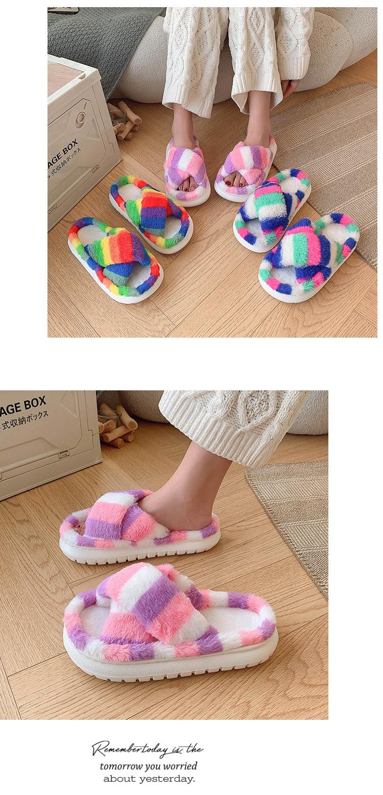 Zapatillas Mao Mao para mujer, otoño e invierno 2024, nuevas zapatillas de felpa coloridas de algodón con suela gruesa cruzada para el hogar, comercio exterior, talla grande