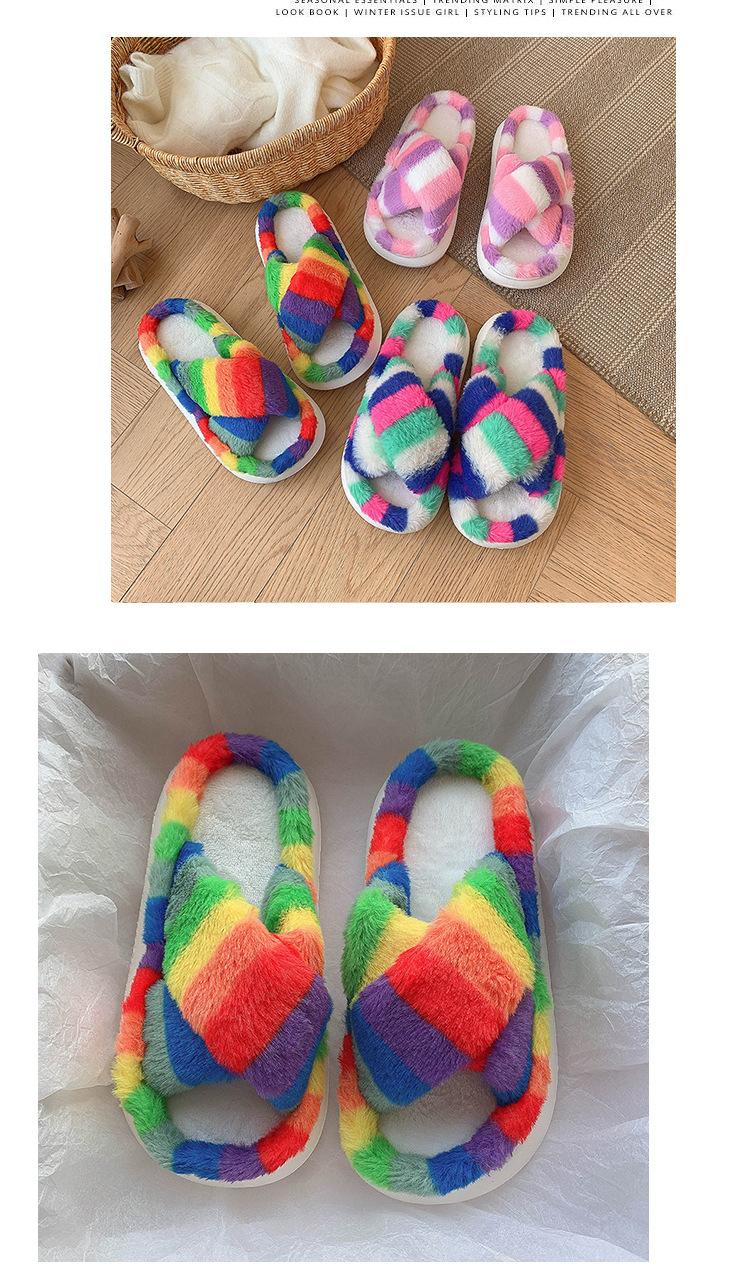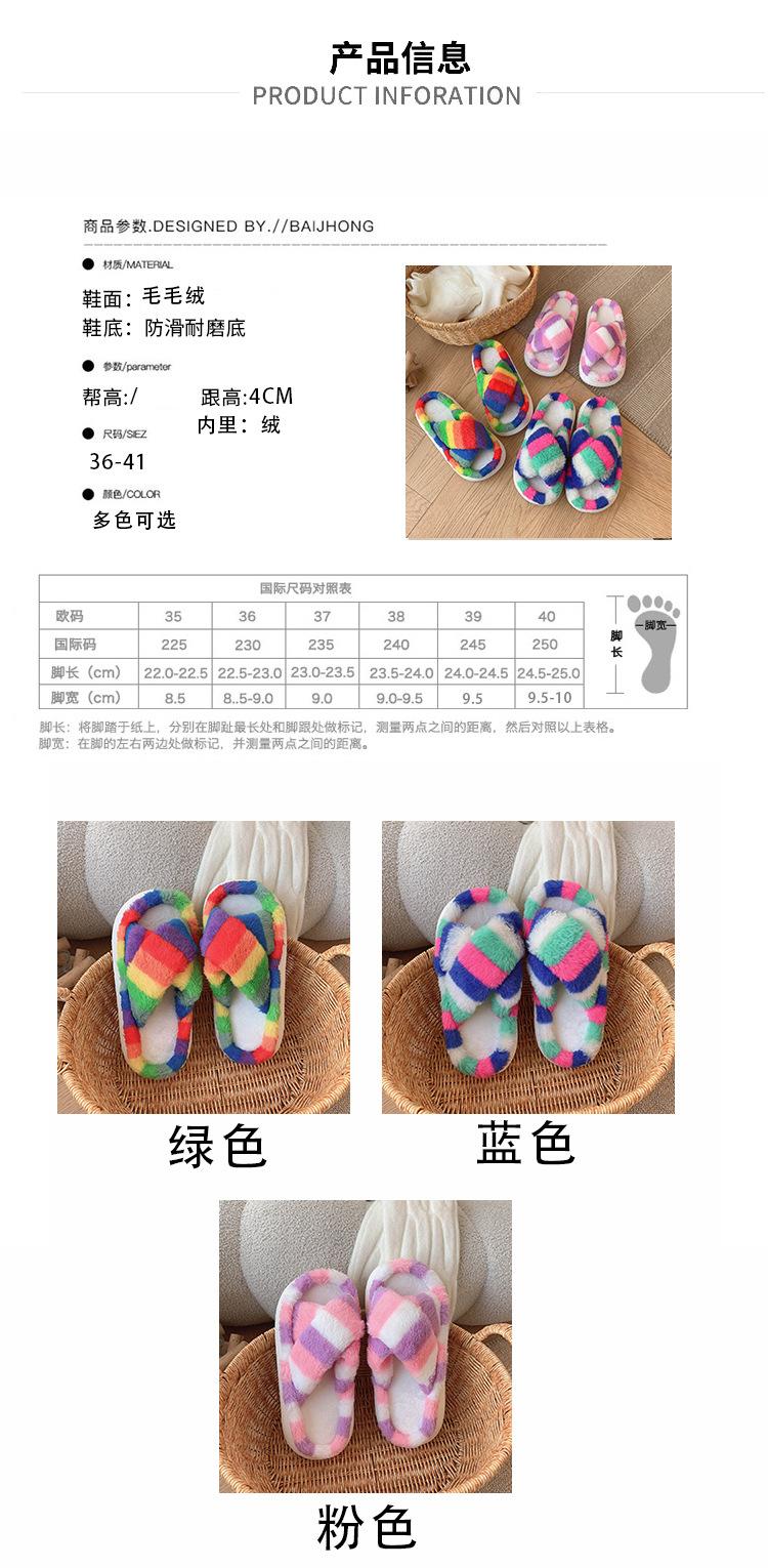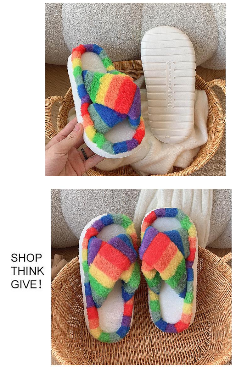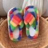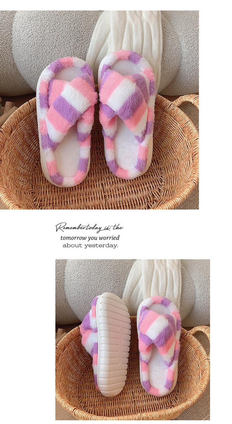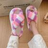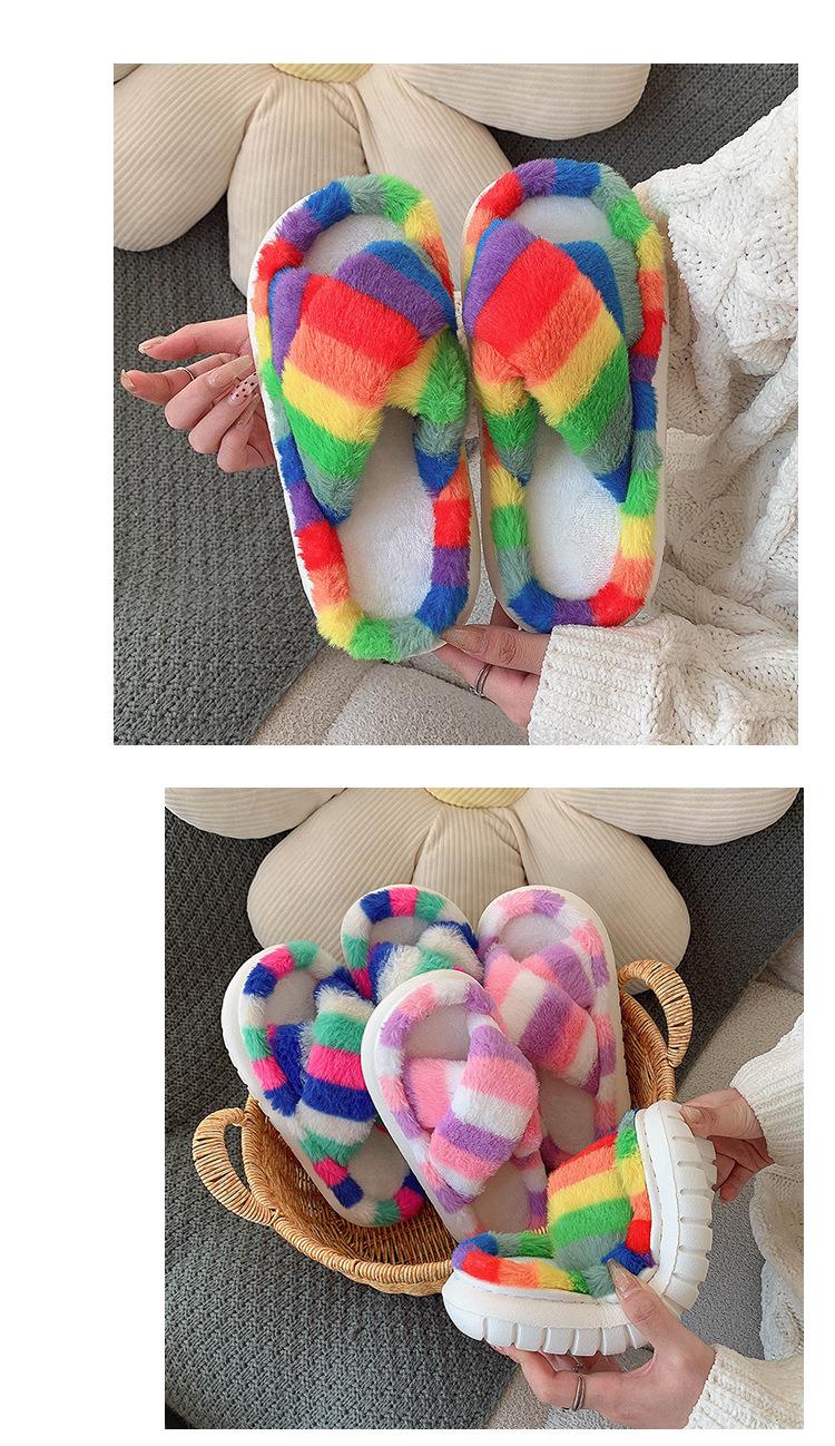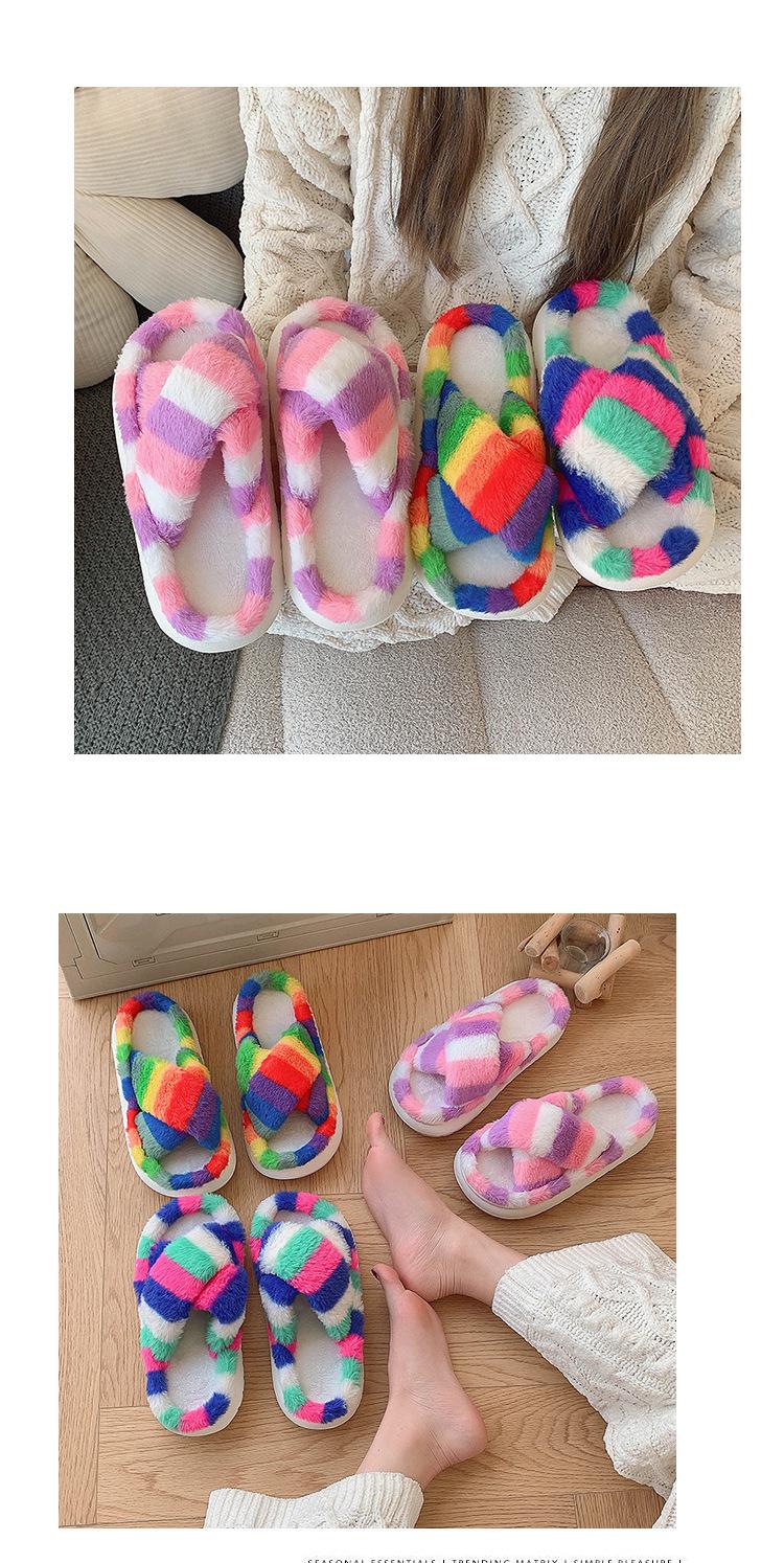 Zapatillas Mao Mao para mujer, otoño e invierno 2024, nuevas zapatillas de felpa coloridas de algodón con suela gruesa cruzada para el hogar, comercio exterior, talla grande