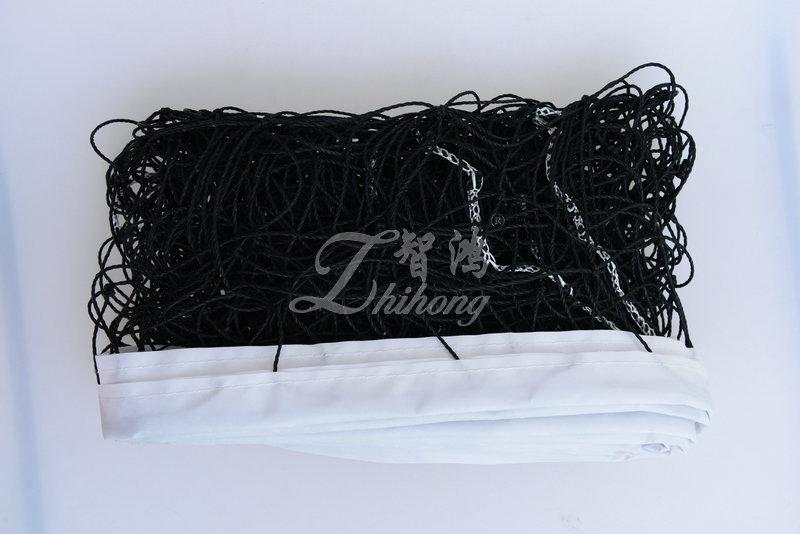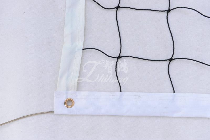 Esta es una red de voleibol de PE de un solo lado con cable de acero. El cable de acero ha sido enhebrado y se puede usar directamente después de la compra. La parte superior está hecha de tela blanca de 10 cm de ancho doblada por la mitad y cosida. El dobladillo superior está cosido doble, lo cual es pulcro y hermoso. El empaque en bolso de mano es elegante y de alta gama, y más conveniente para transportar.