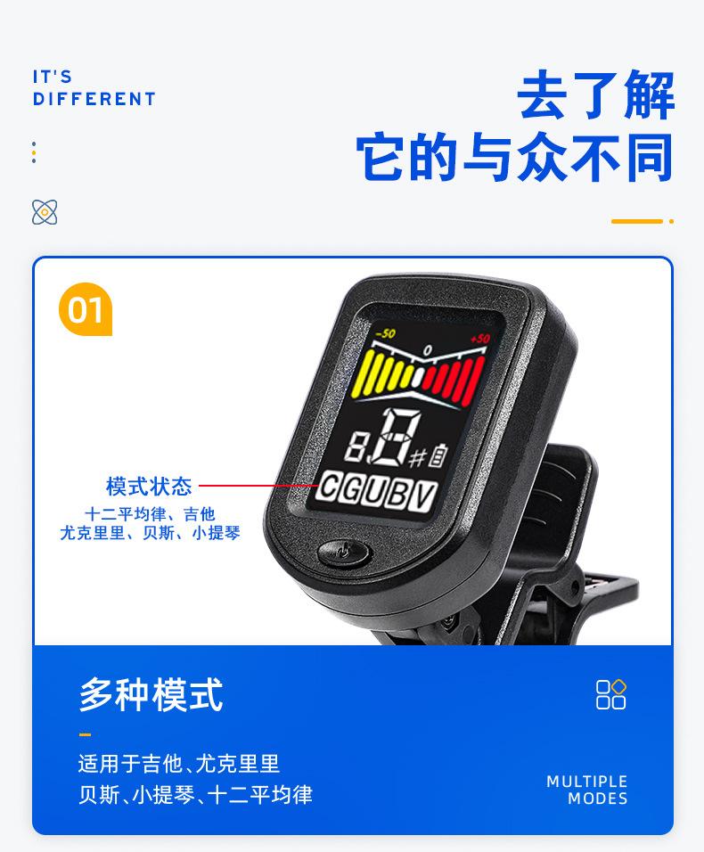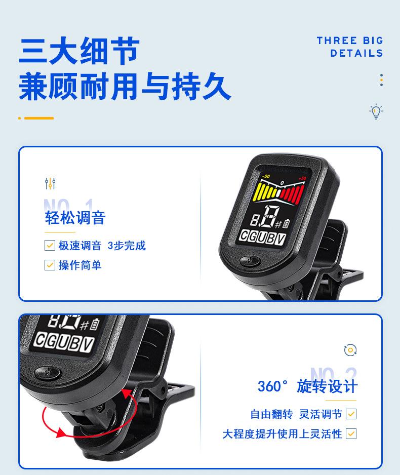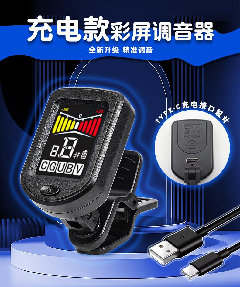 Afinador de guitarra con pantalla a color recargable, para violín, ukelele, bajo, doce pulgadas de promedio, tabla de afinación multifunción