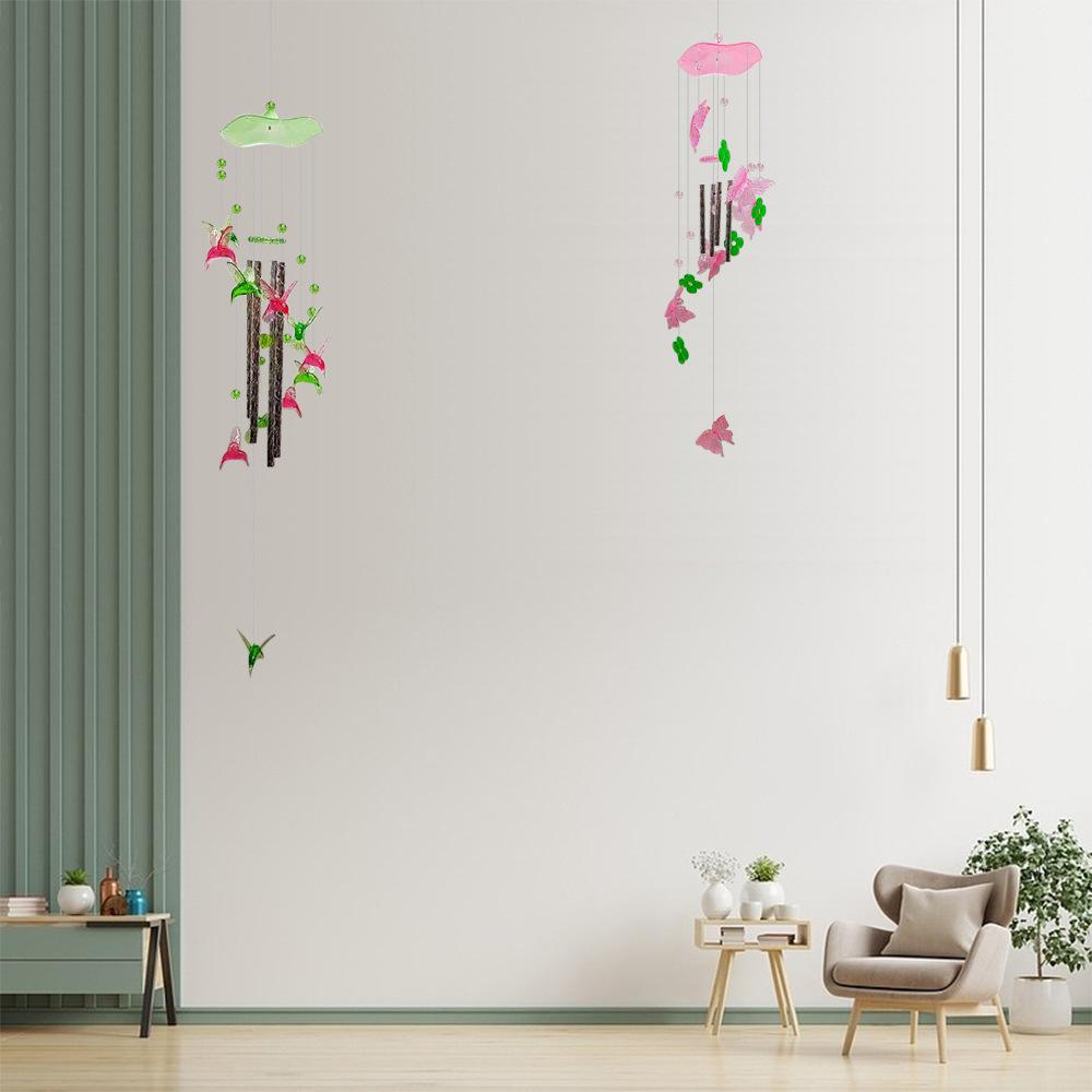 Nuevas y creativas campanas de viento de acrílico con forma de colibrí y mariposa, decoraciones para el hogar.