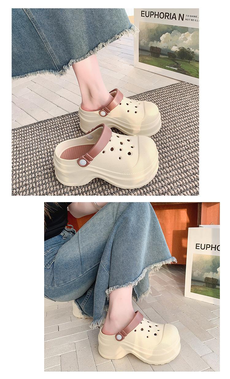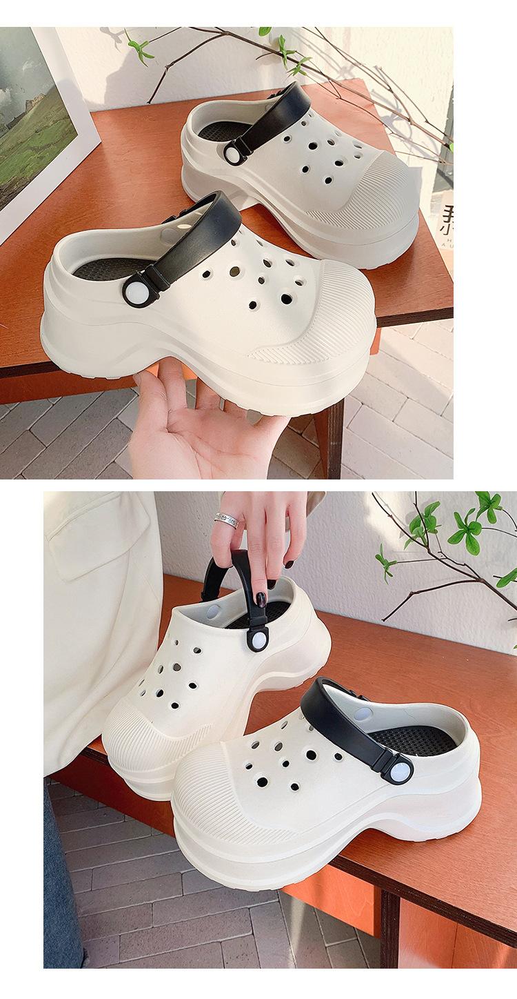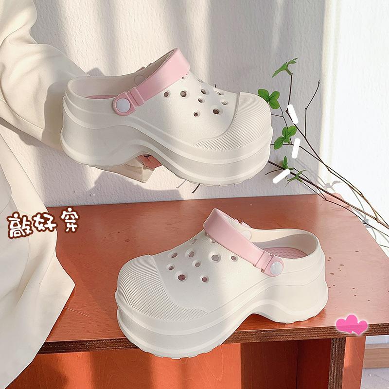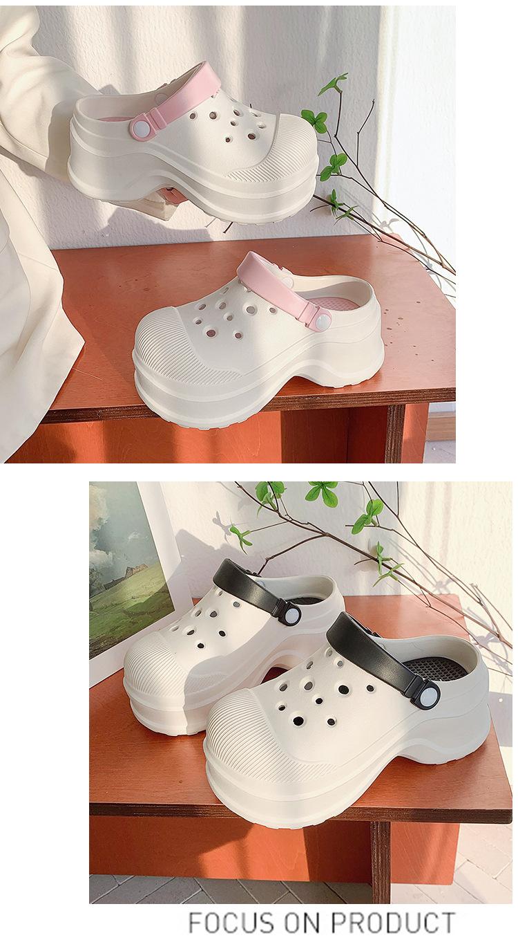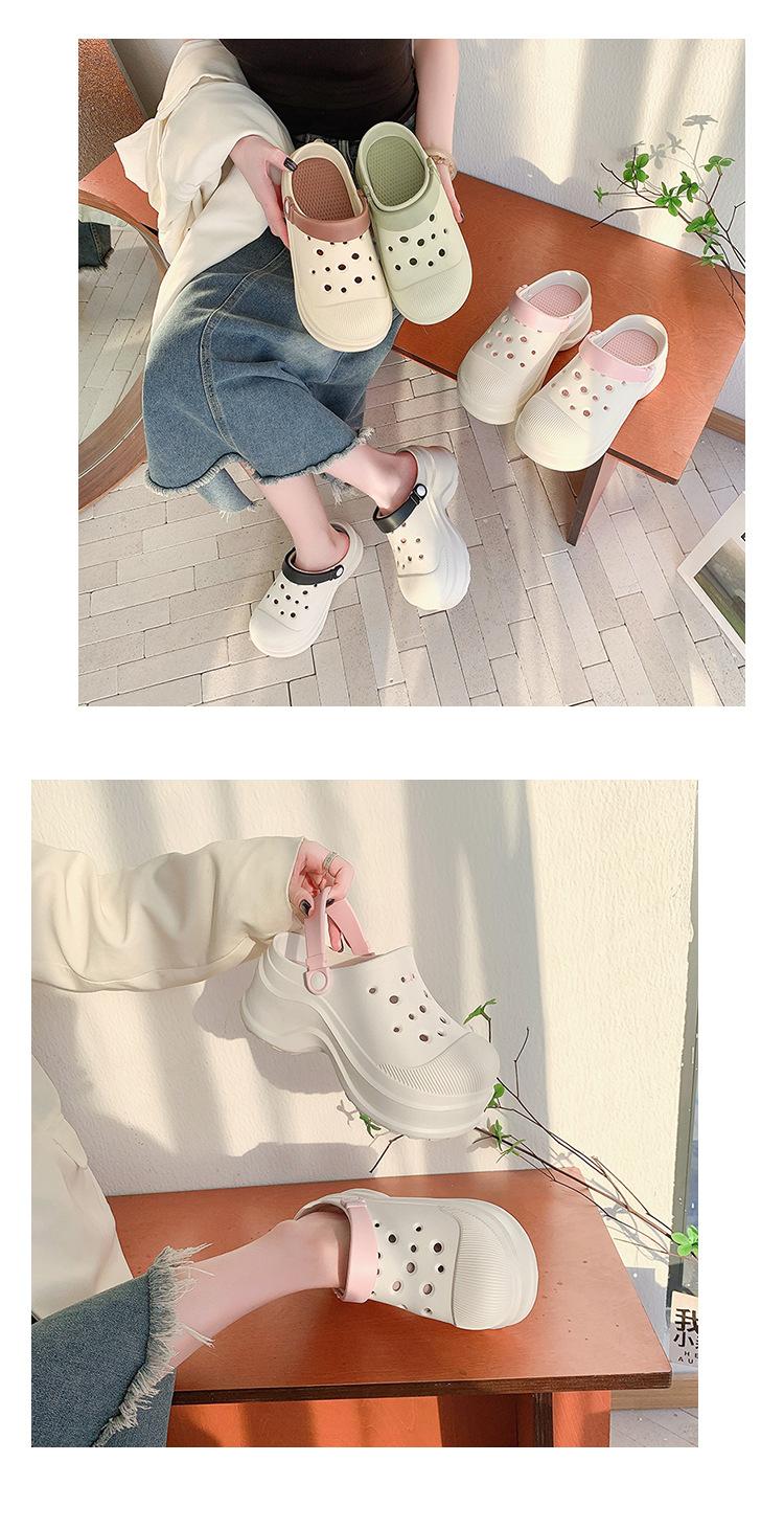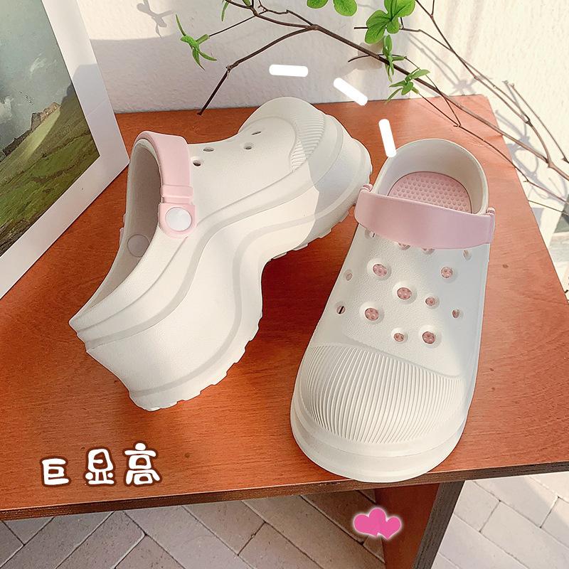 Zapatos de Agujeros para Mujer Verano Suela Gruesa Aumentada Resistente al Desgaste Transpirable Puntera Cerrada Tops EVA Ropa Exterior No Pie Apestoso Antideslizante Sandalias de Tacón