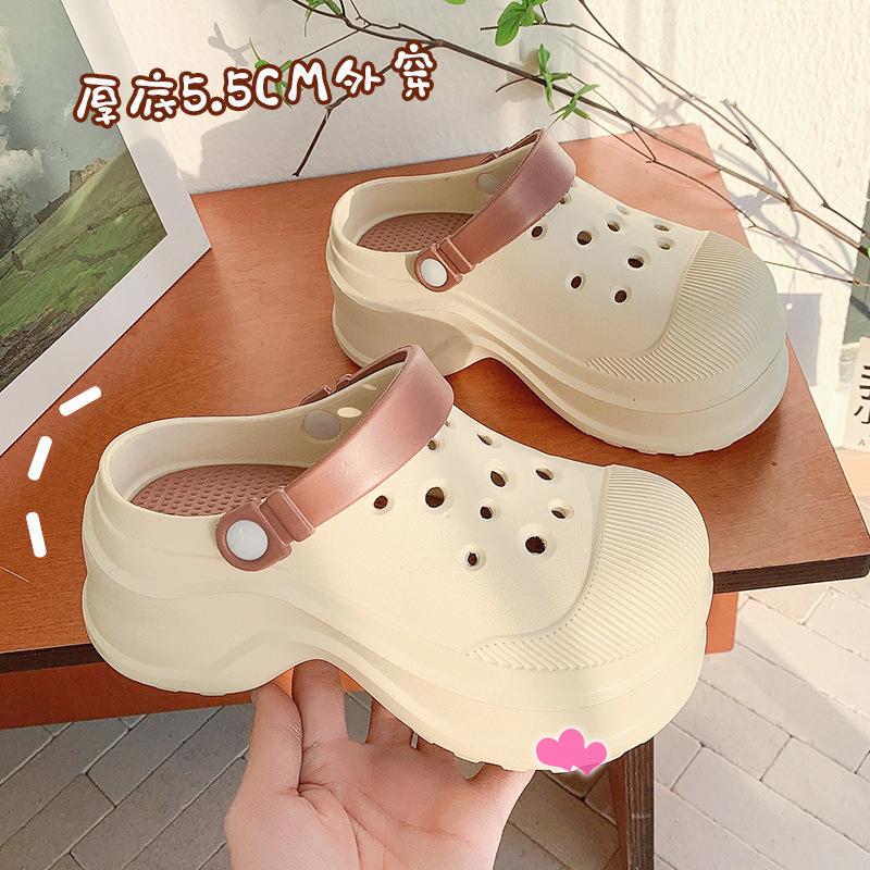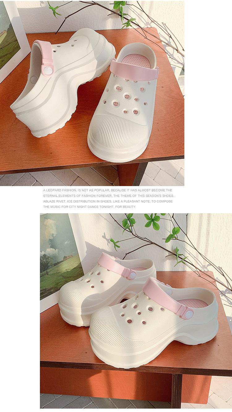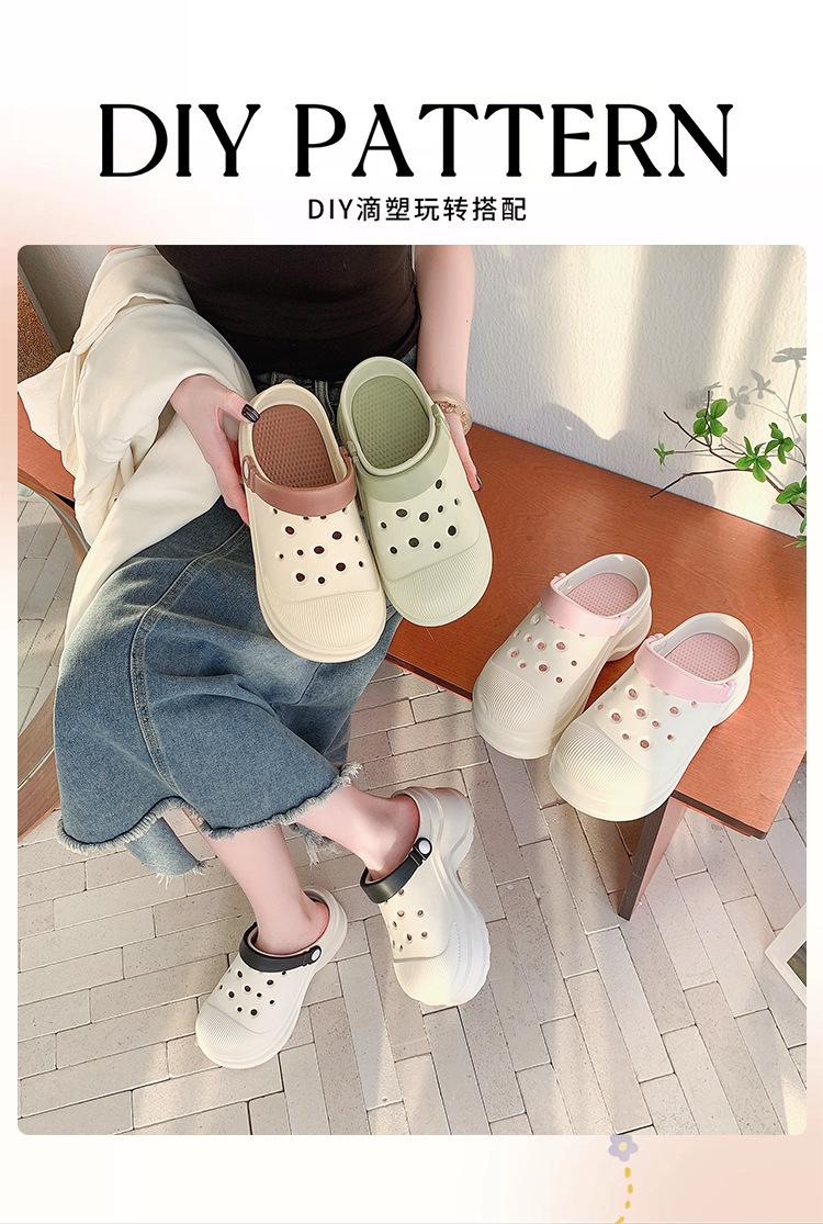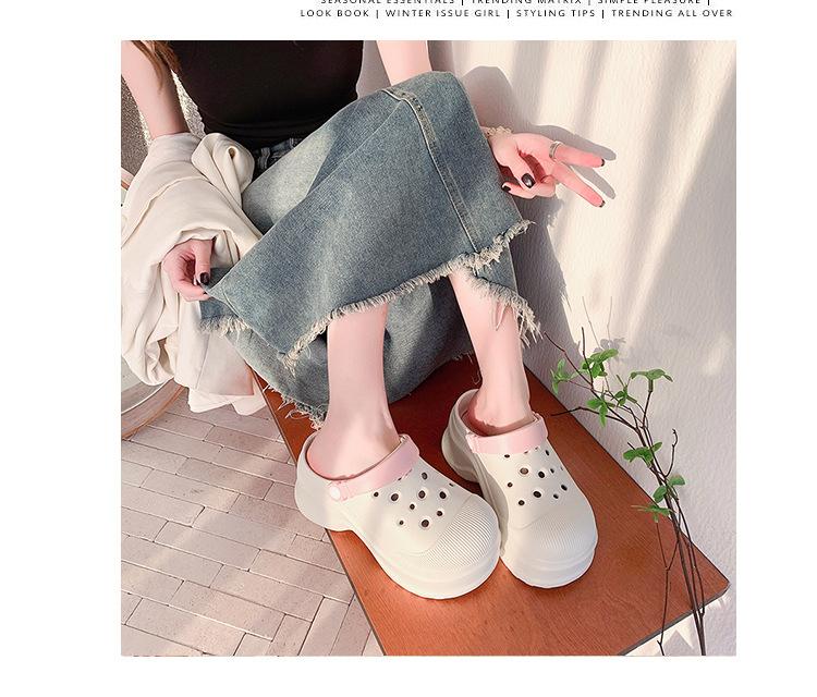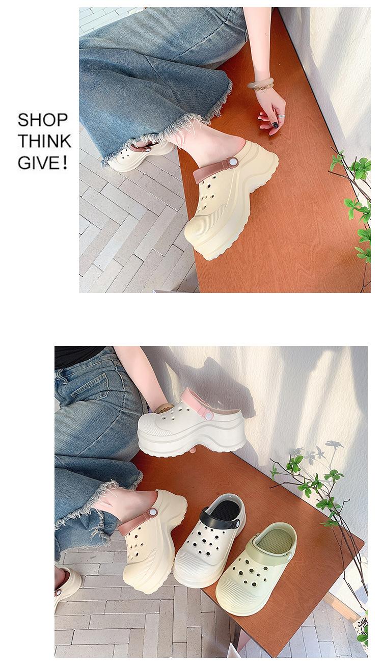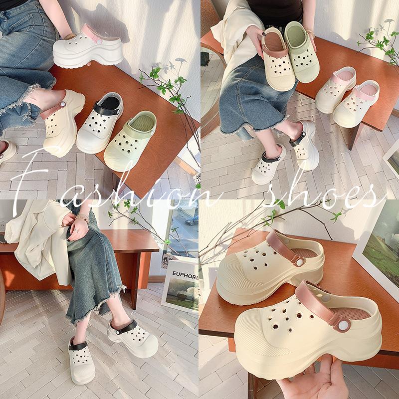 Zapatos de Agujeros para Mujer Verano Suela Gruesa Aumentada Resistente al Desgaste Transpirable Puntera Cerrada Tops EVA Ropa Exterior No Pie Apestoso Antideslizante Sandalias de Tacón