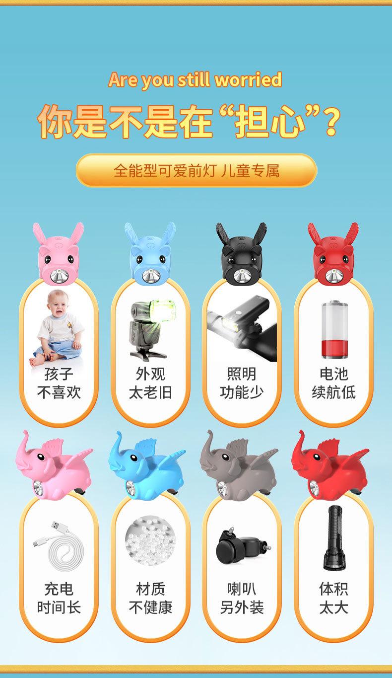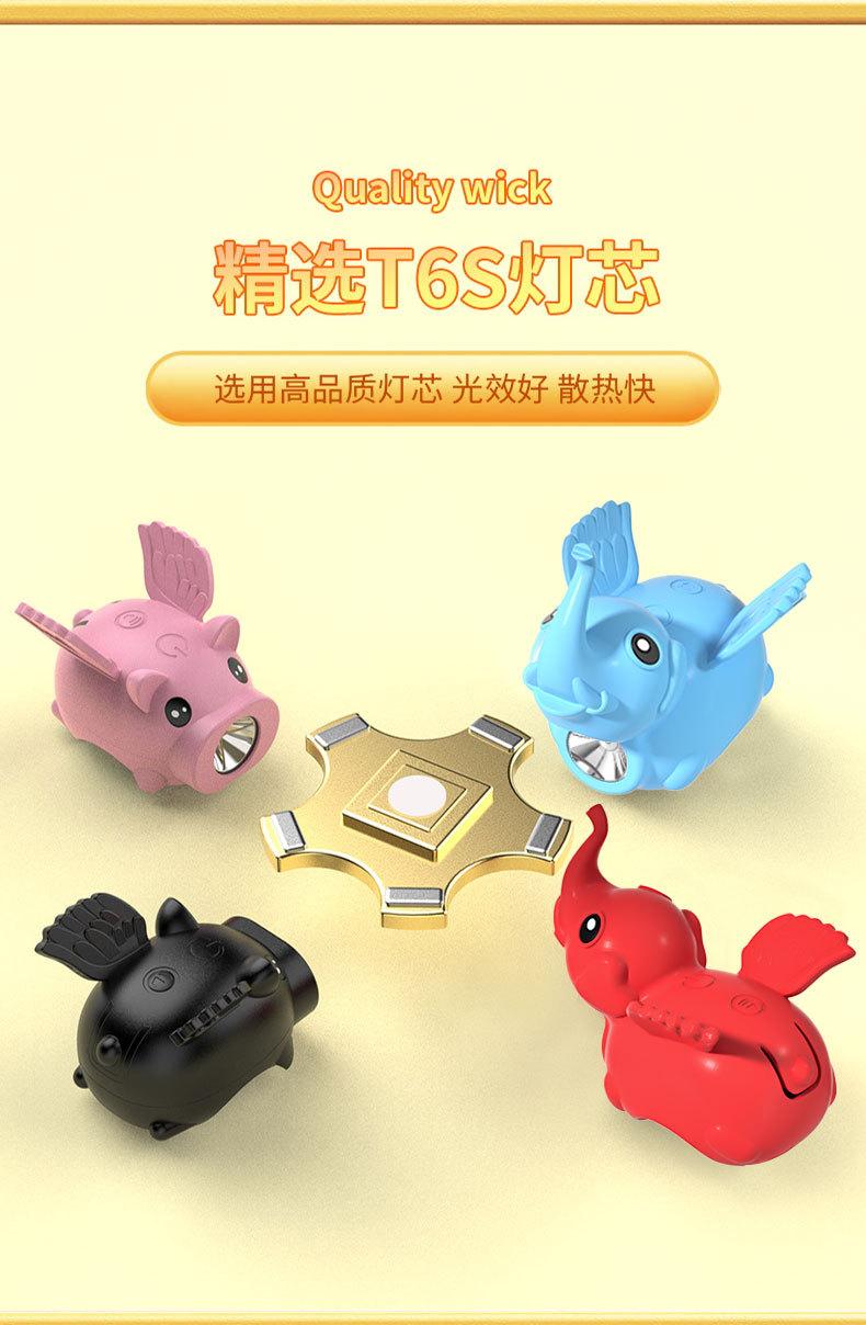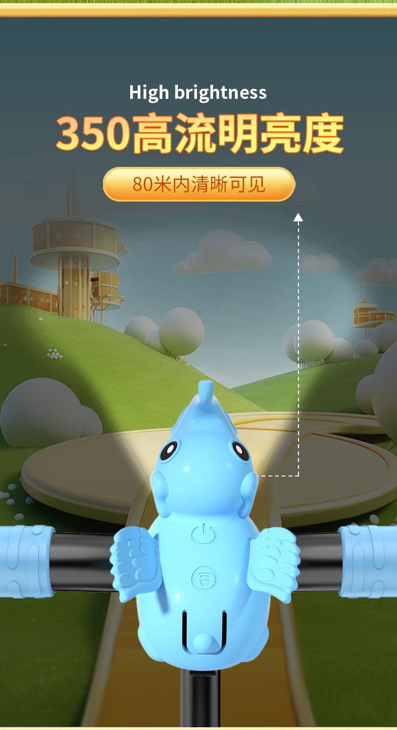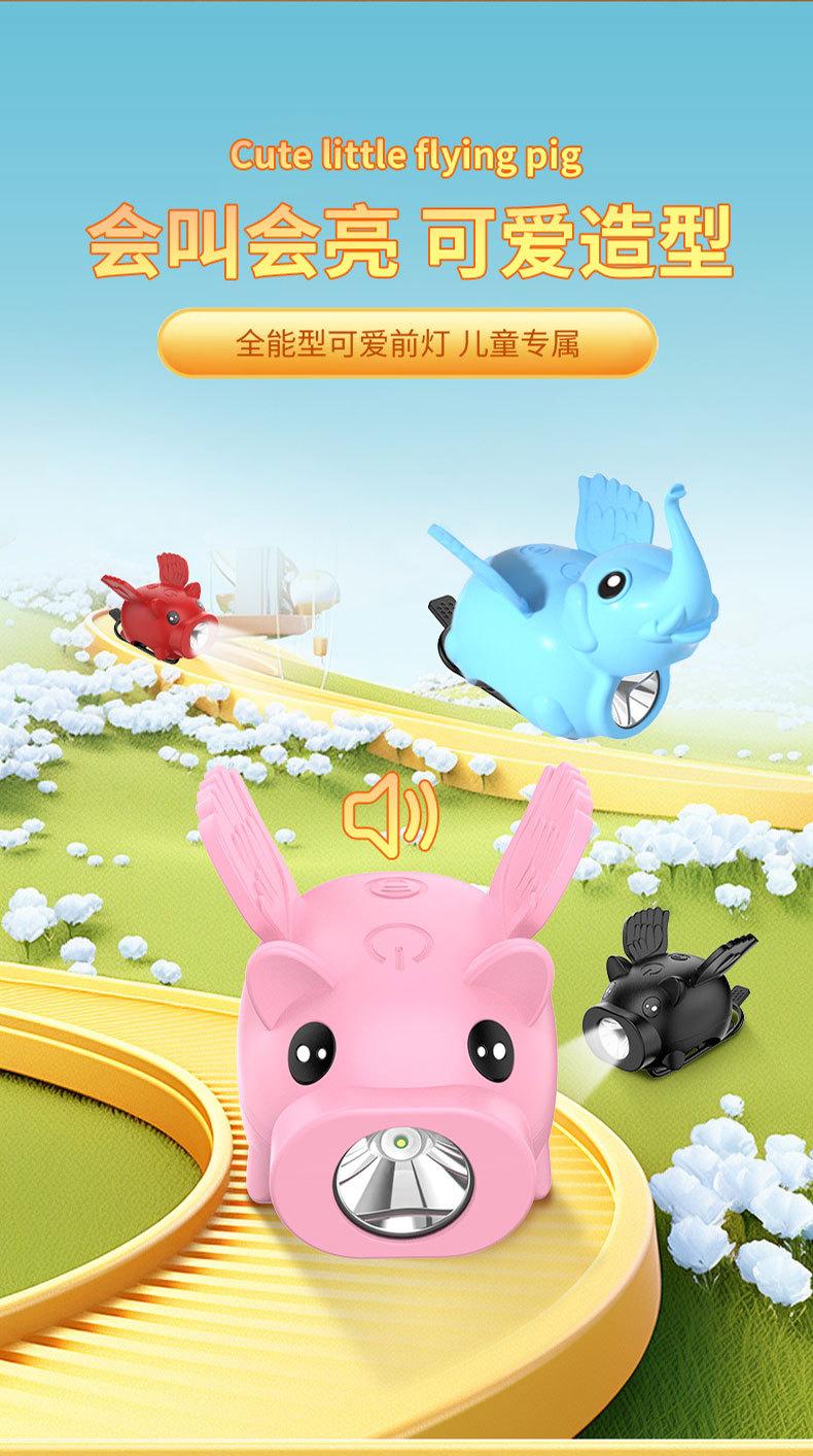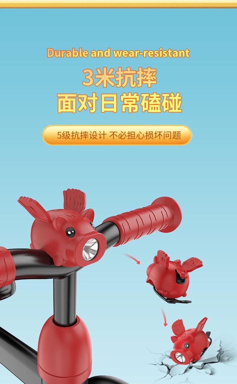 Nueva luz de bicicleta recargable tipo C para niños, luz de bocina Flying Pig creativa, luz de conducción nocturna