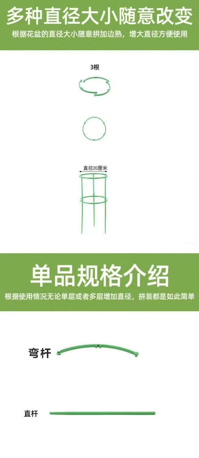 Soporte de plástico empalmable para flores, anillo de soporte, varilla de soporte para plantas de interior, soporte para flores, estante para ramas de balcón, estante para trepar, venta al por mayor
