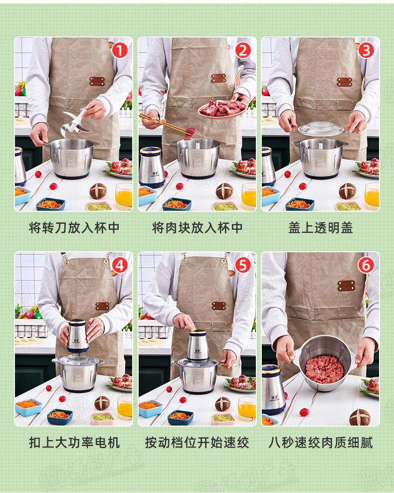 Máquina de cocina eléctrica pequeña para el hogar, herramientas de cocina para batir carne, carne picada, relleno de verduras, picadora de carne eléctrica de acero inoxidable