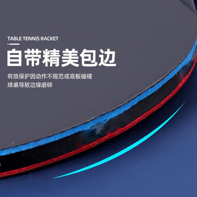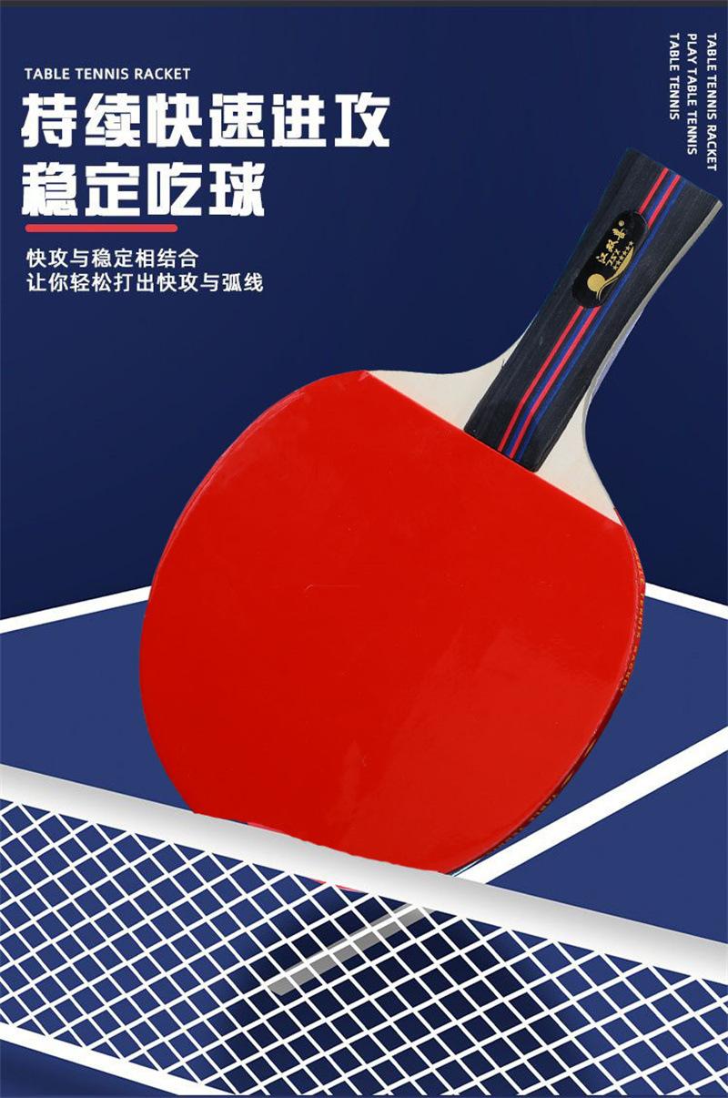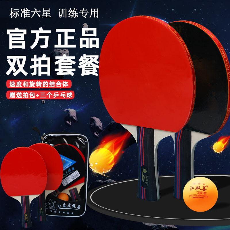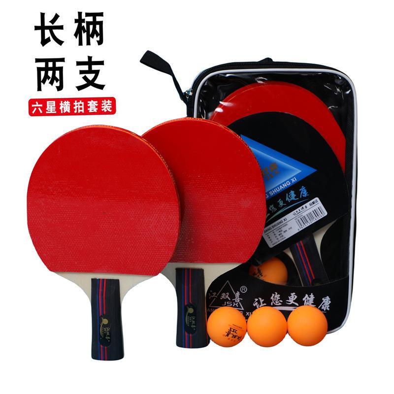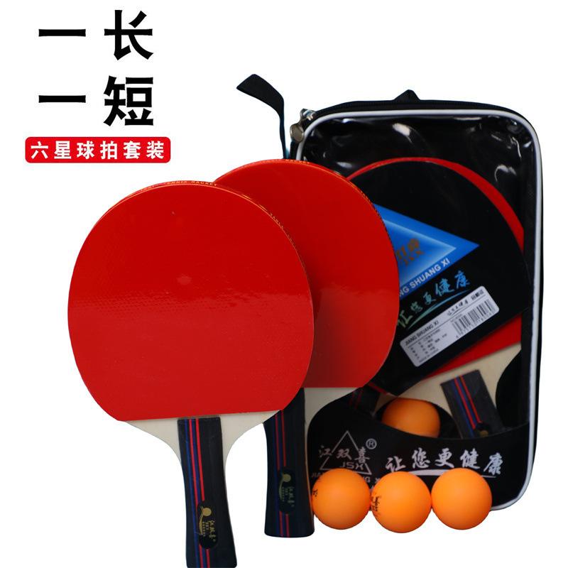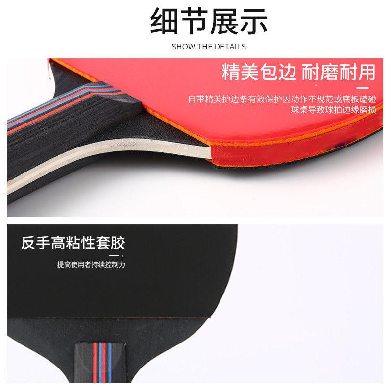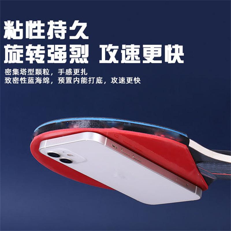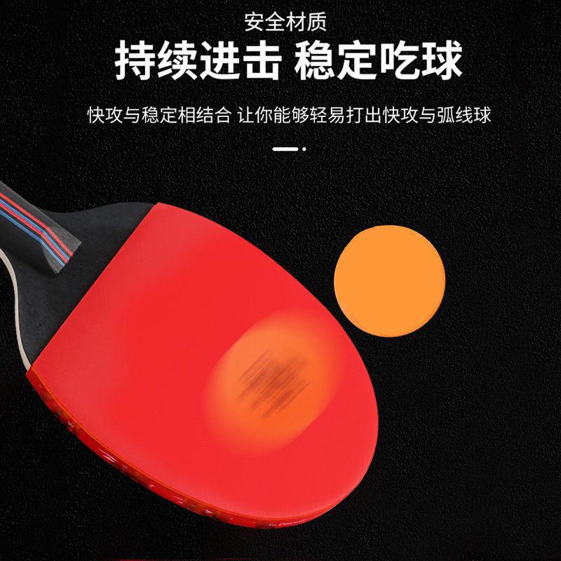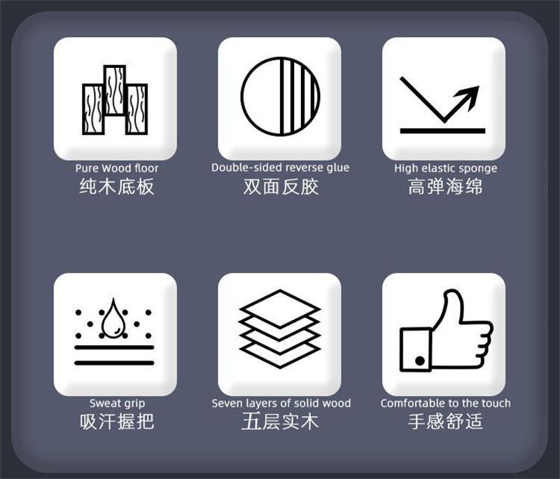 La raqueta de seis estrellas es una superficie anti-caucho altamente elástica de doble cara de grado de competencia profesional y un tablero de madera de alta calidad.。