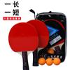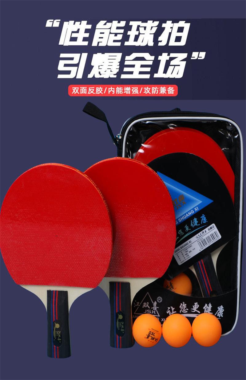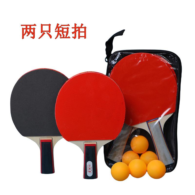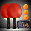 Una raqueta de dos estrellas tiene un lado con goma normal y el otro con esponja. Incluye dos raquetas, tres pelotas y una bolsa de almacenamiento.