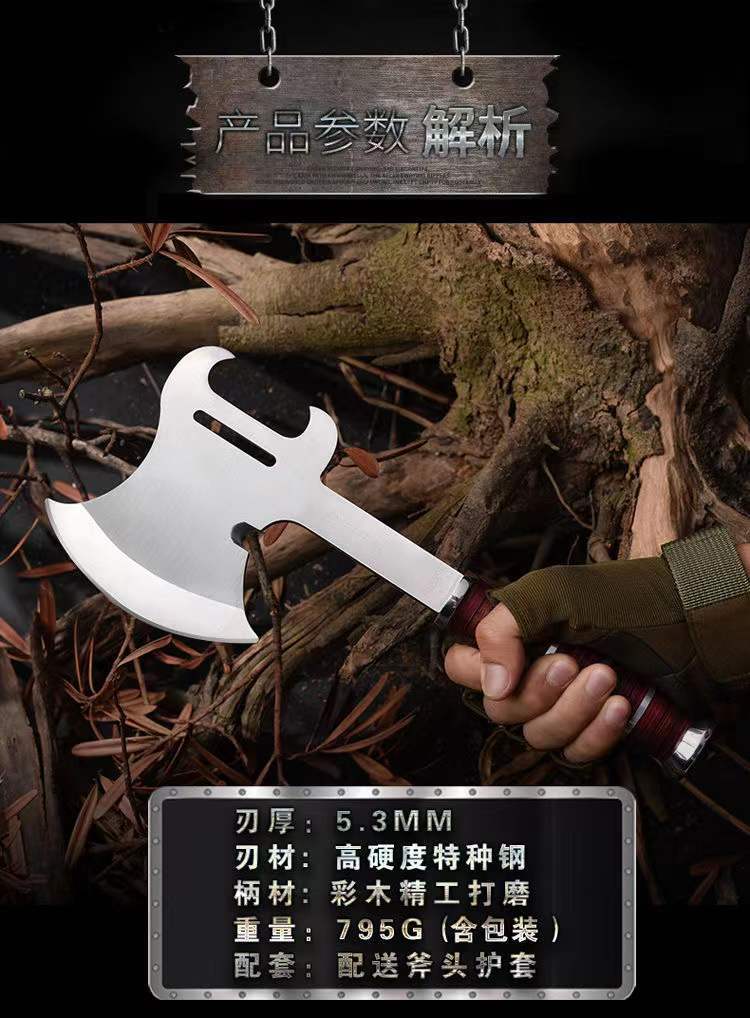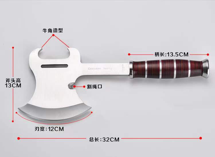 Hacha de Bombero Hacha para Cortar Montaña al Aire Libre Hacha para Cortar Madera Hacha Doméstica para Cortar Huesos Tomahawk de Ingeniería Todo Acero Camping Multifuncional