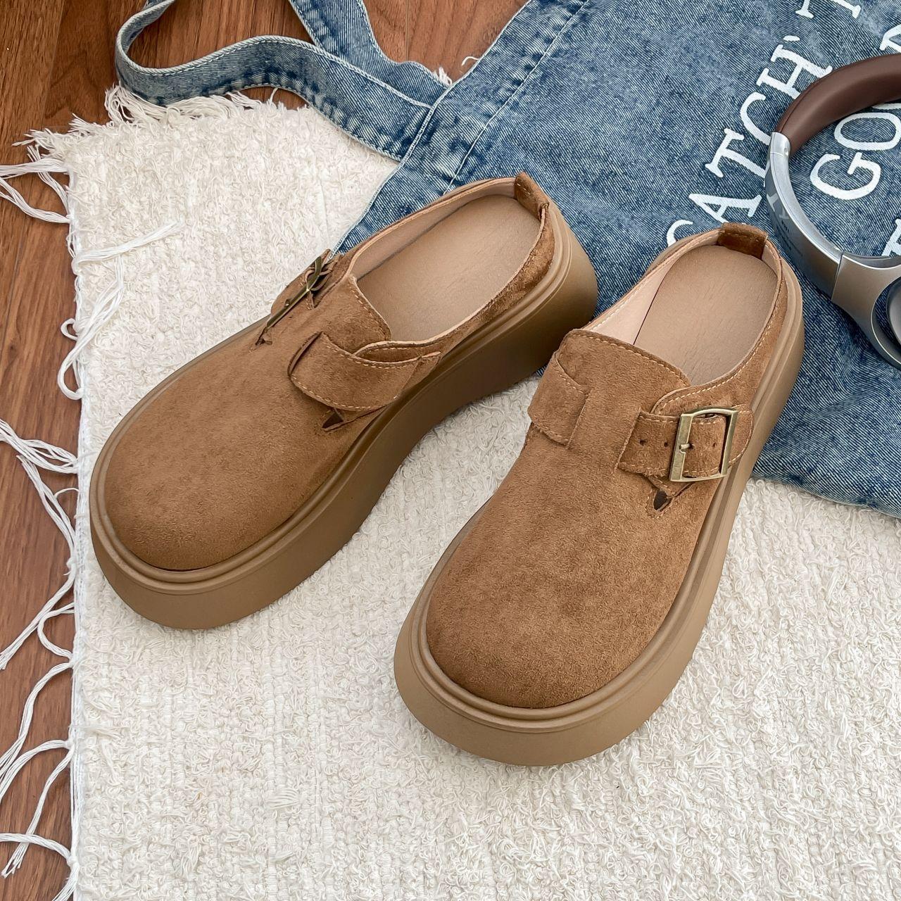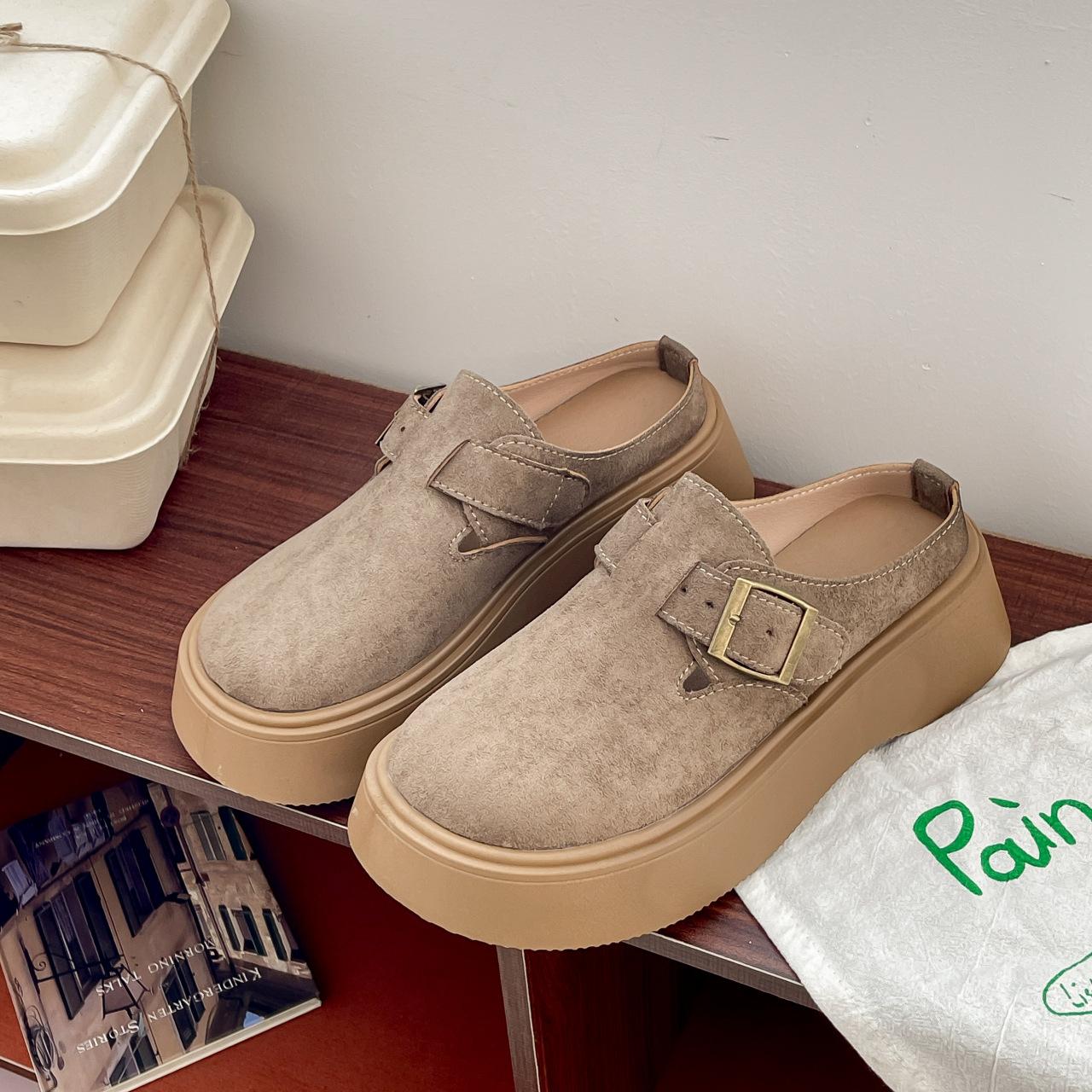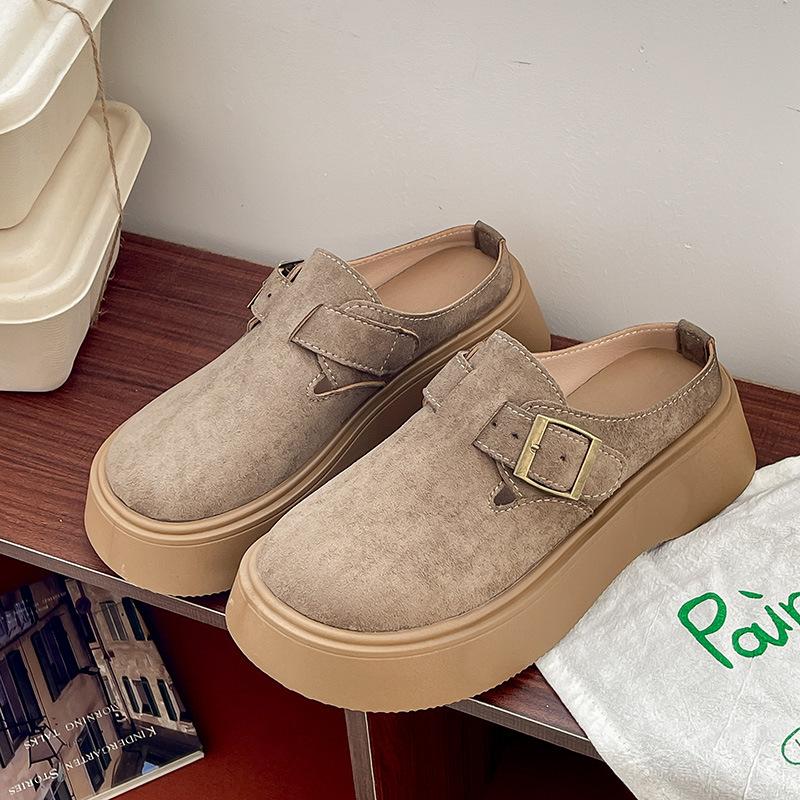 Plataforma Zapatos Burcan Zapatillas de Media Puntera Baotou para Mujer 2025 Nuevos Zapatos de Primavera para Mujer Zapatos Slip-on Holgazanes