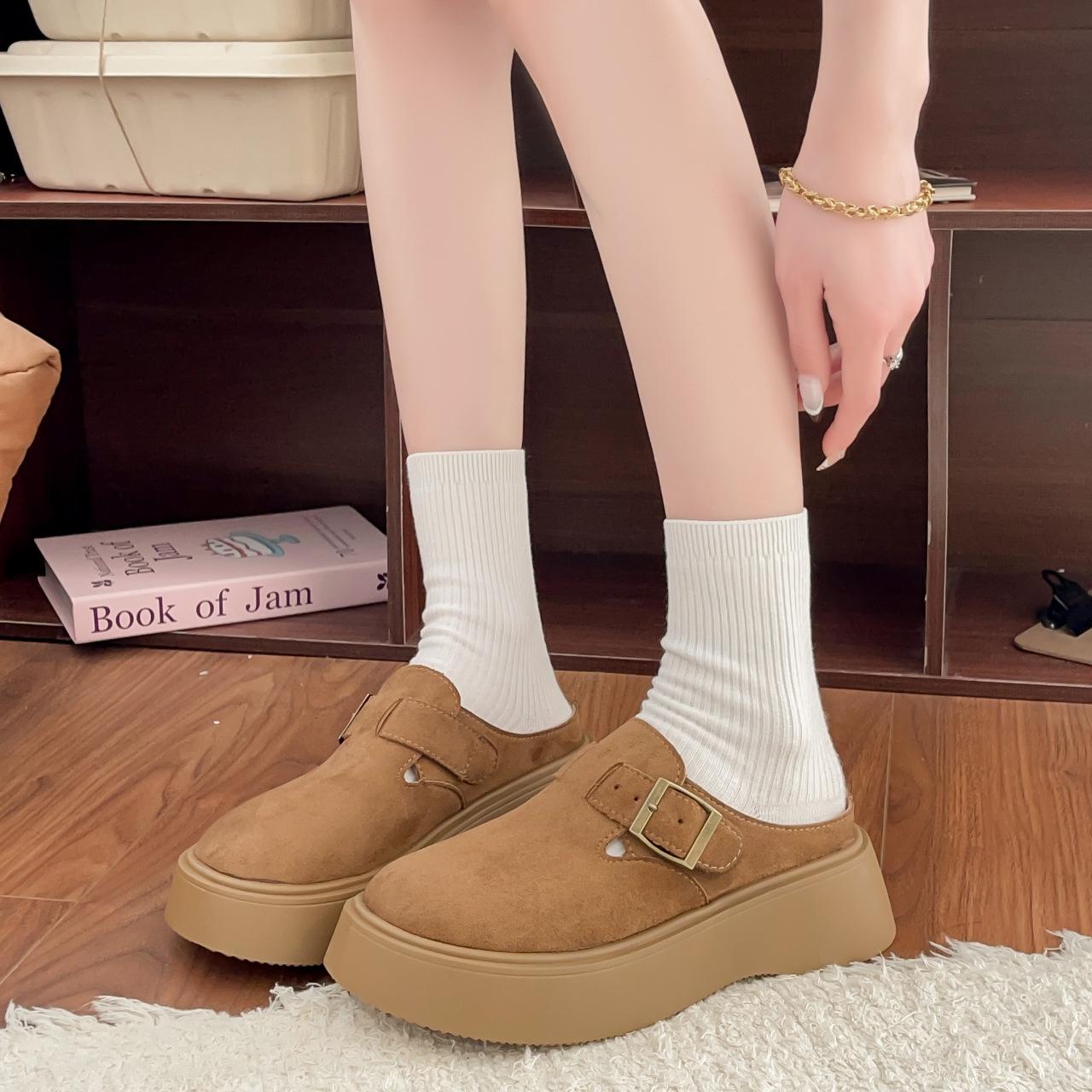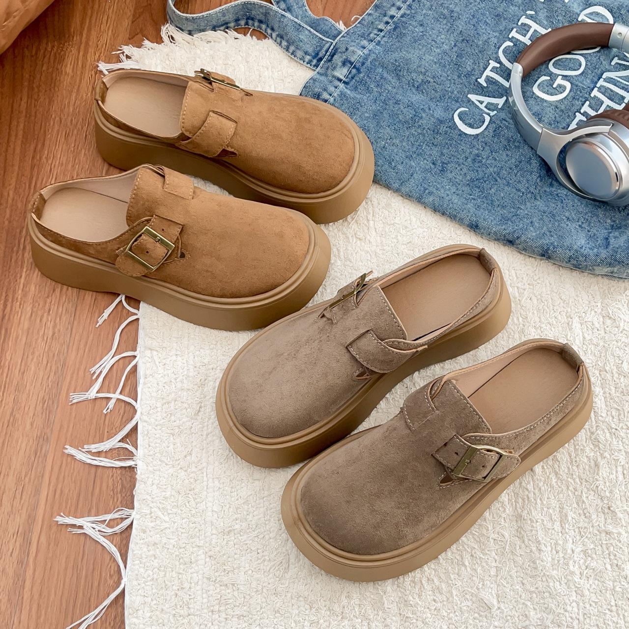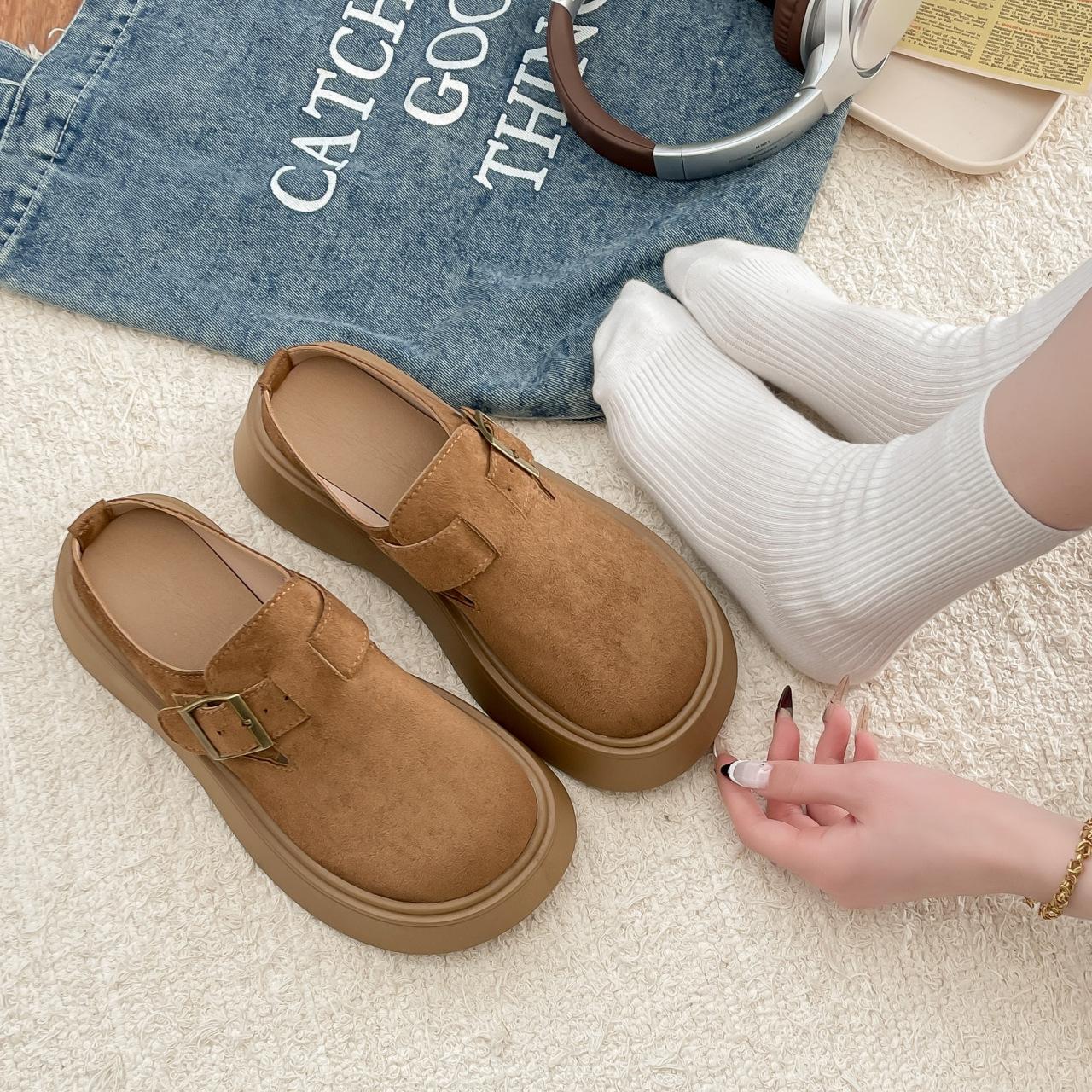 Plataforma Zapatos Burcan Zapatillas de Media Puntera Baotou para Mujer 2025 Nuevos Zapatos de Primavera para Mujer Zapatos Slip-on Holgazanes