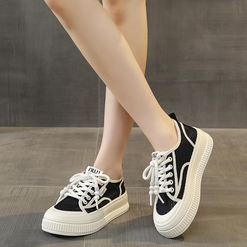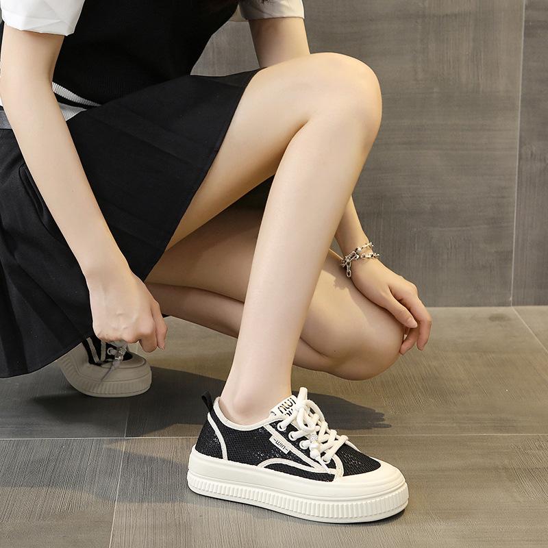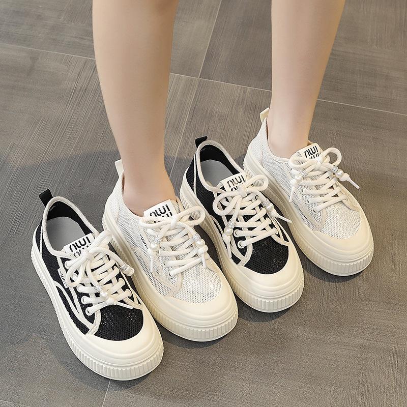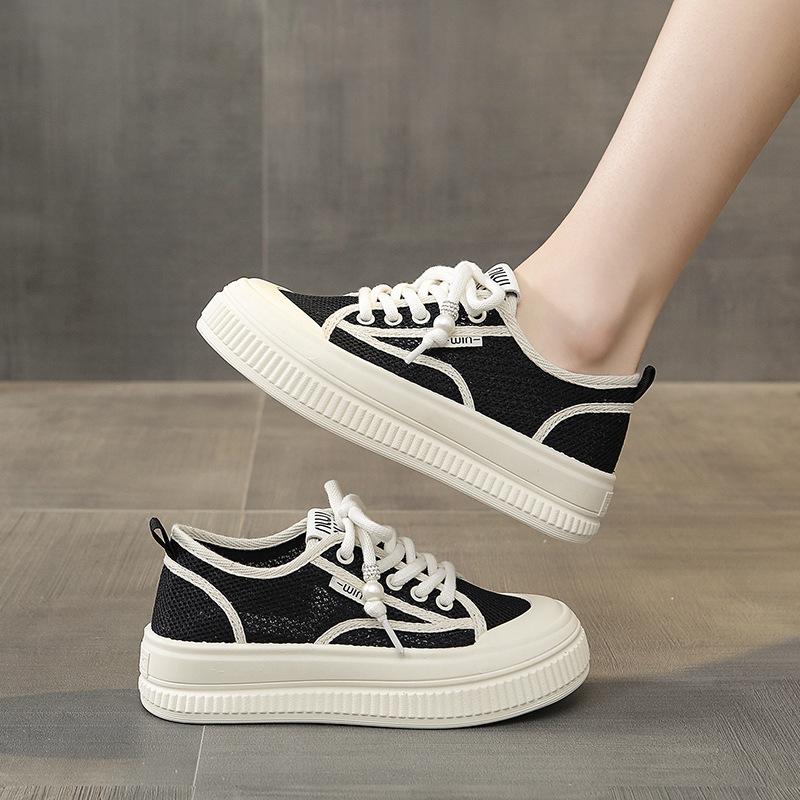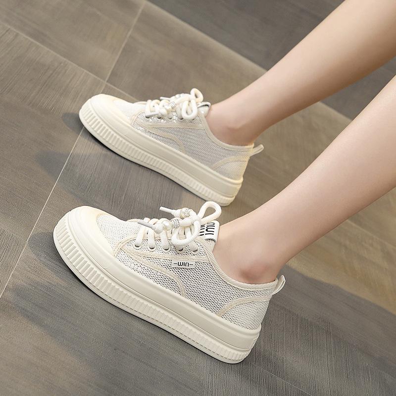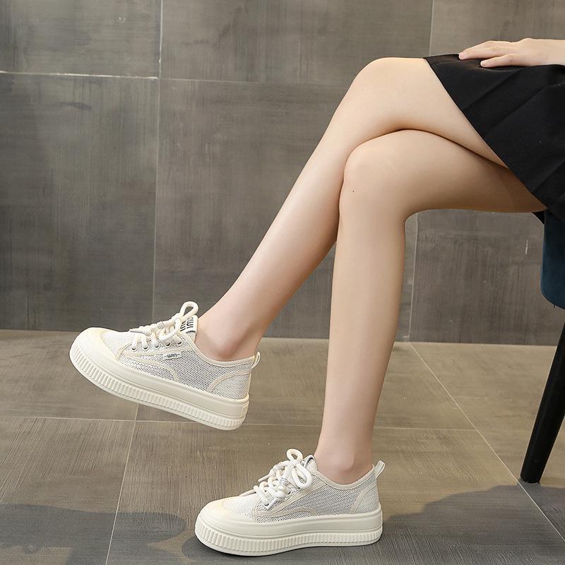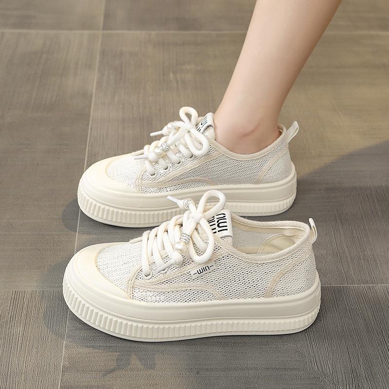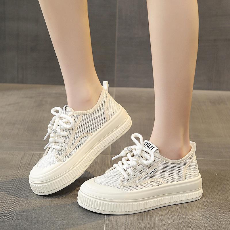 Zapatos blancos de malla nuevos de verano 2024, zapatos de plataforma transpirables para mujer, zapatos deportivos casuales, zapatos de tabla para estudiantes, zapatos de moda