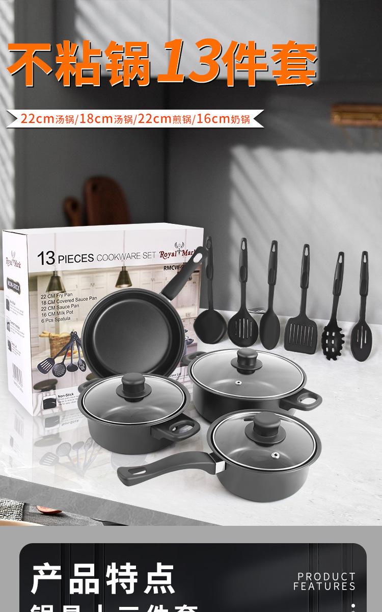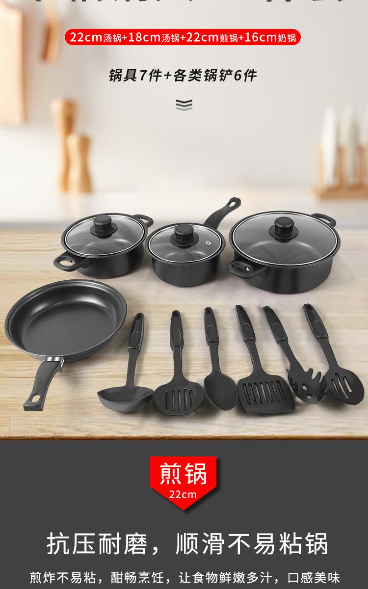 Juego de cocina de 13 piezas de comercio exterior, juego de cuatro piezas de utensilios de cocina de varias piezas, pala, olla antiadherente para sopa, sartén para leche, juego de ollas de varias piezas