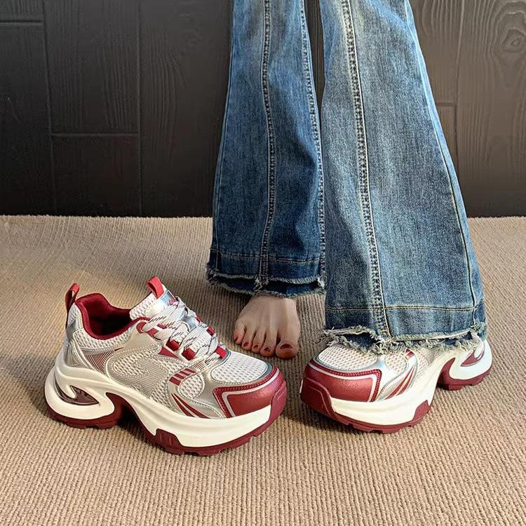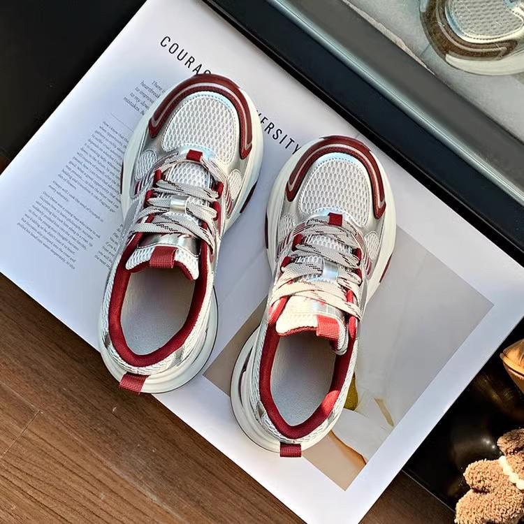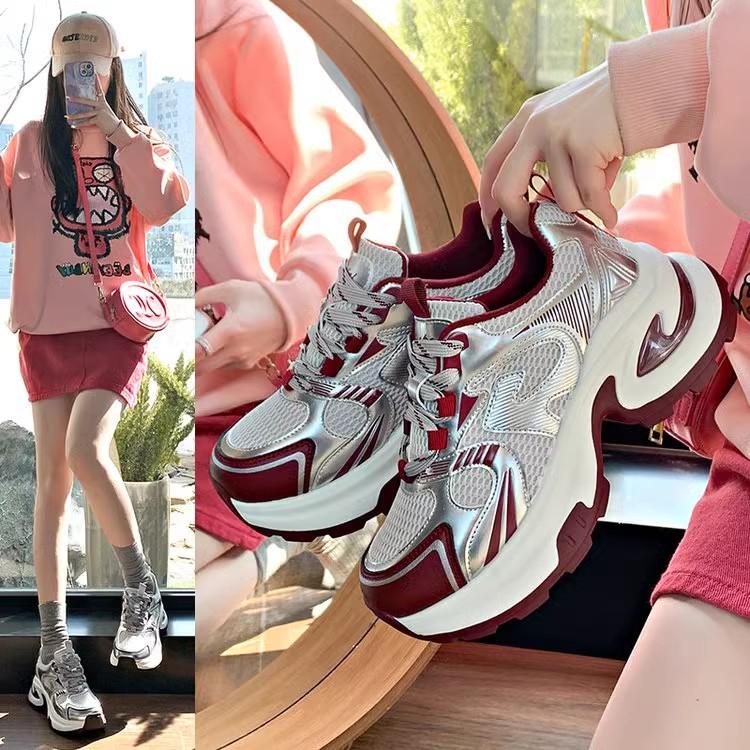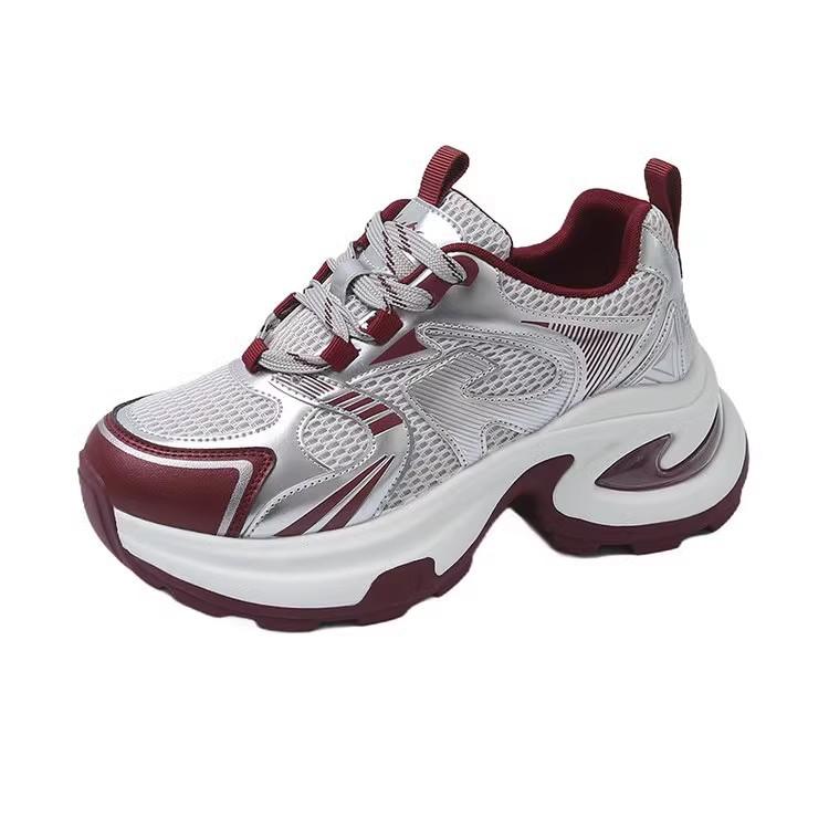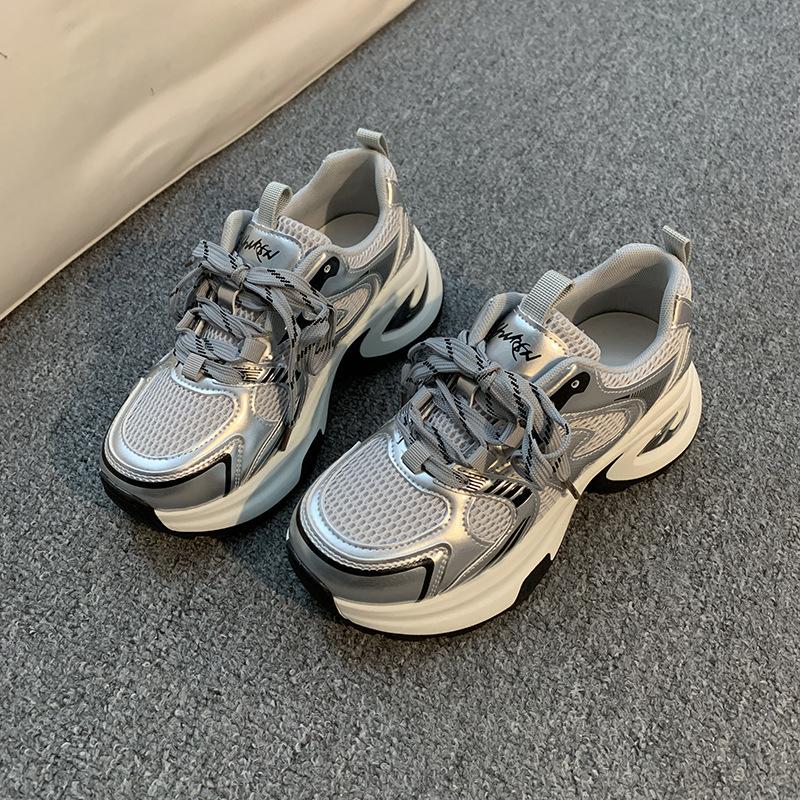 Zapatos de suela gruesa Torre para mujer, zapatillas deportivas de ocio plateadas, transpirables y nuevas para otoño y verano de 2025.