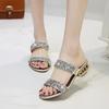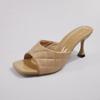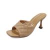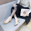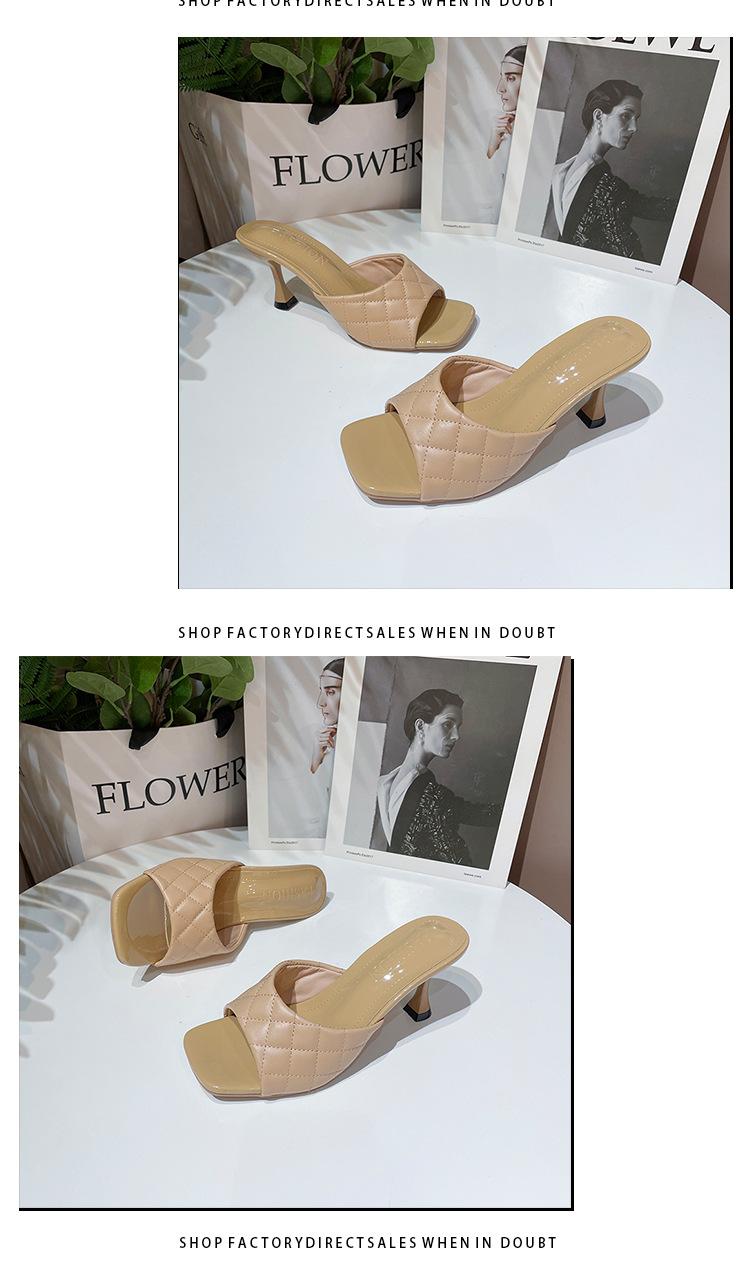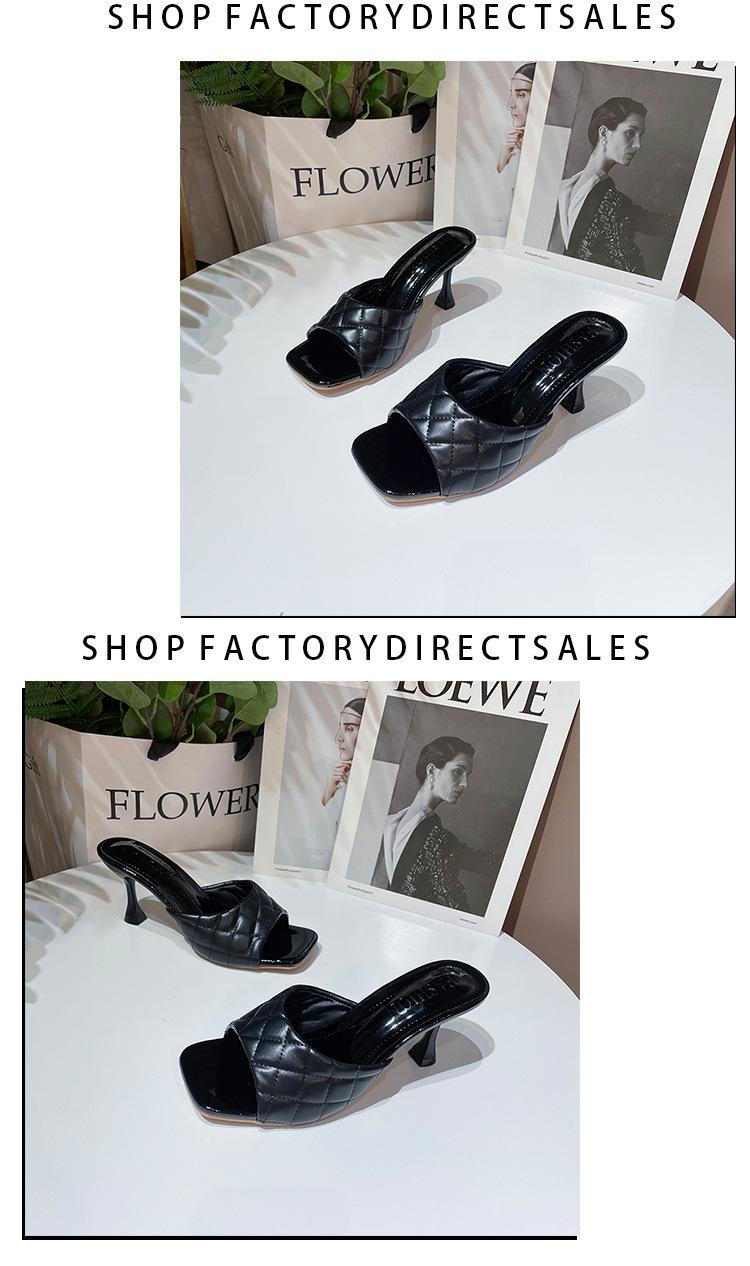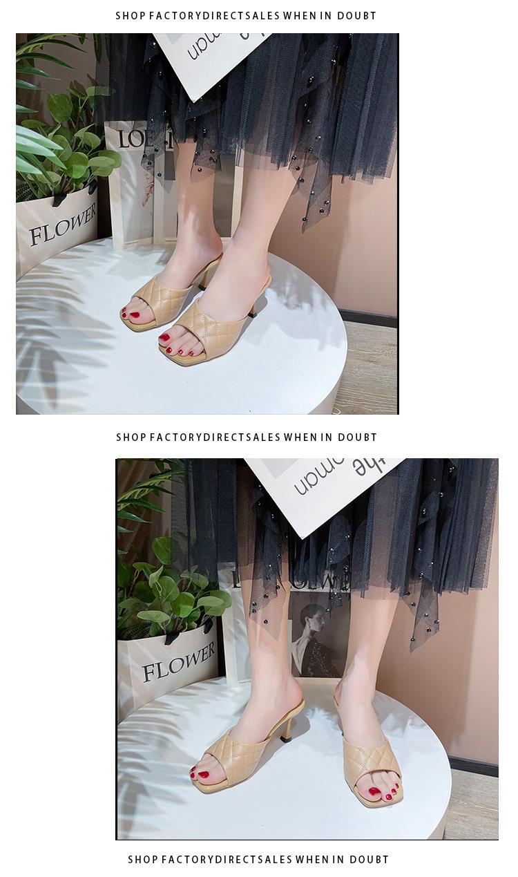 Comercio Exterior Europeo y Americano 2025 Verano Nuevo Talla Grande Color Sólido Ropa Exterior Casual Punta Cuadrada Sandalias de Tacón Fino para Mujer