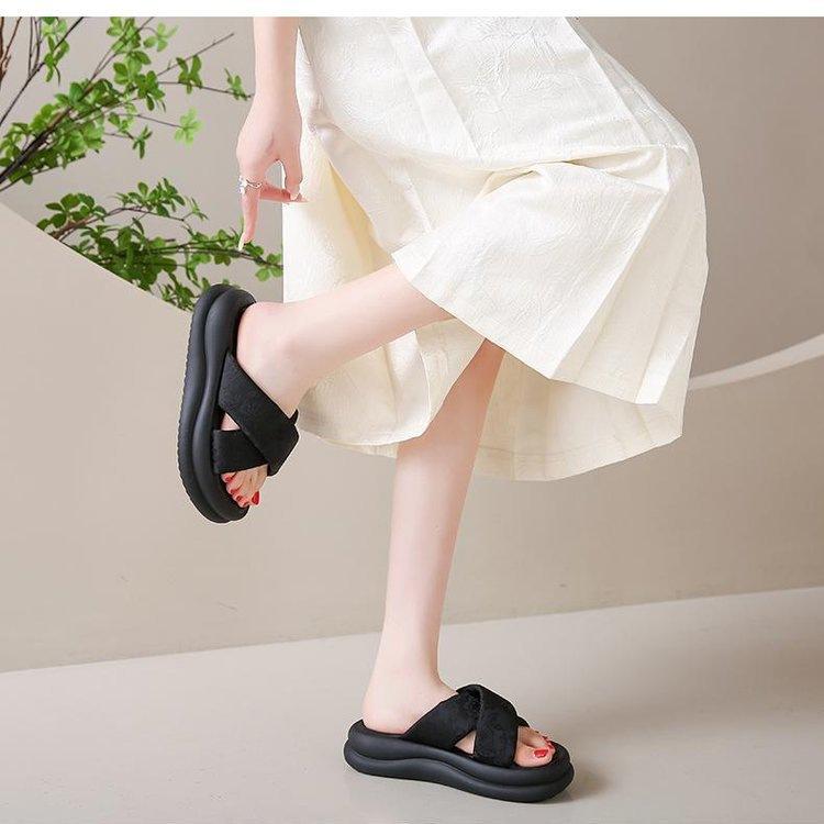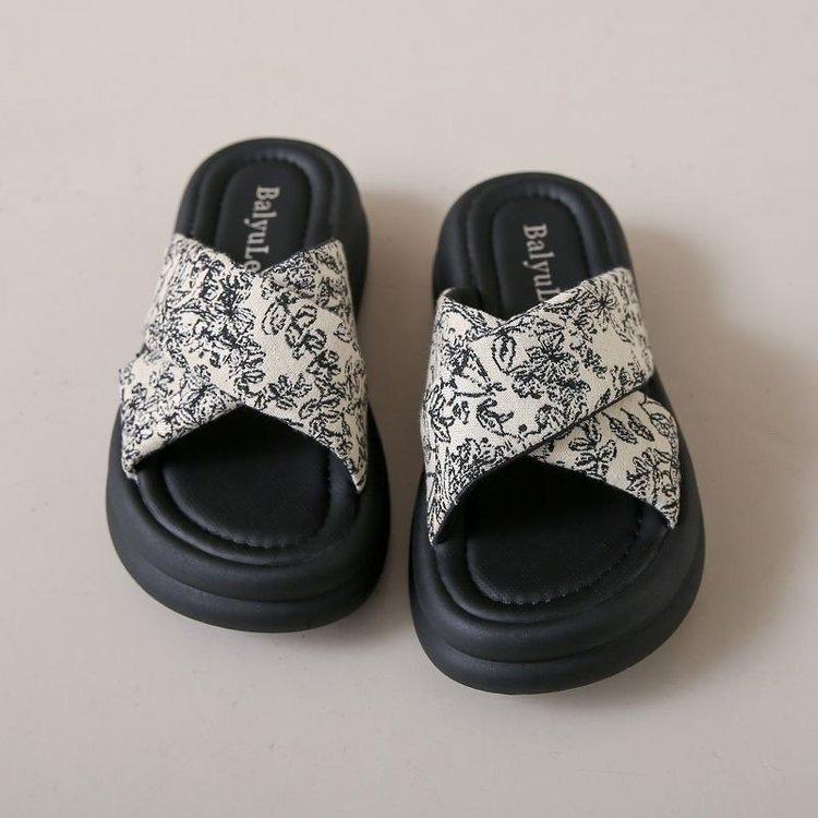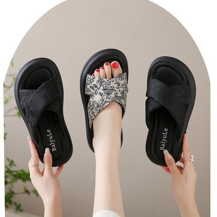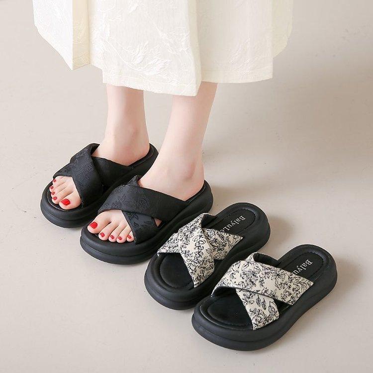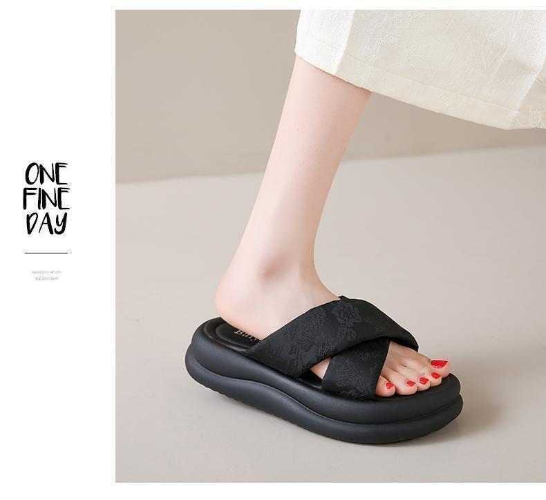 Pantuflas de Fondo Grueso Estilo Chino Nuevo Estilo Nacional para Mujer Verano 2025 Nueva Moda Zapatos de Playa Cruzados Antideslizantes Sandalias de Suela Blanda