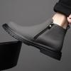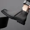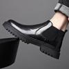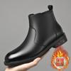 Zapatos de Vestir Formales de Caña Alta para Otoño e Invierno para Hombre, Botines Cortos, Botas Chelsea de Piel Genuina Brillante con Forro Polar Cálido para Invierno y Suela Gruesa