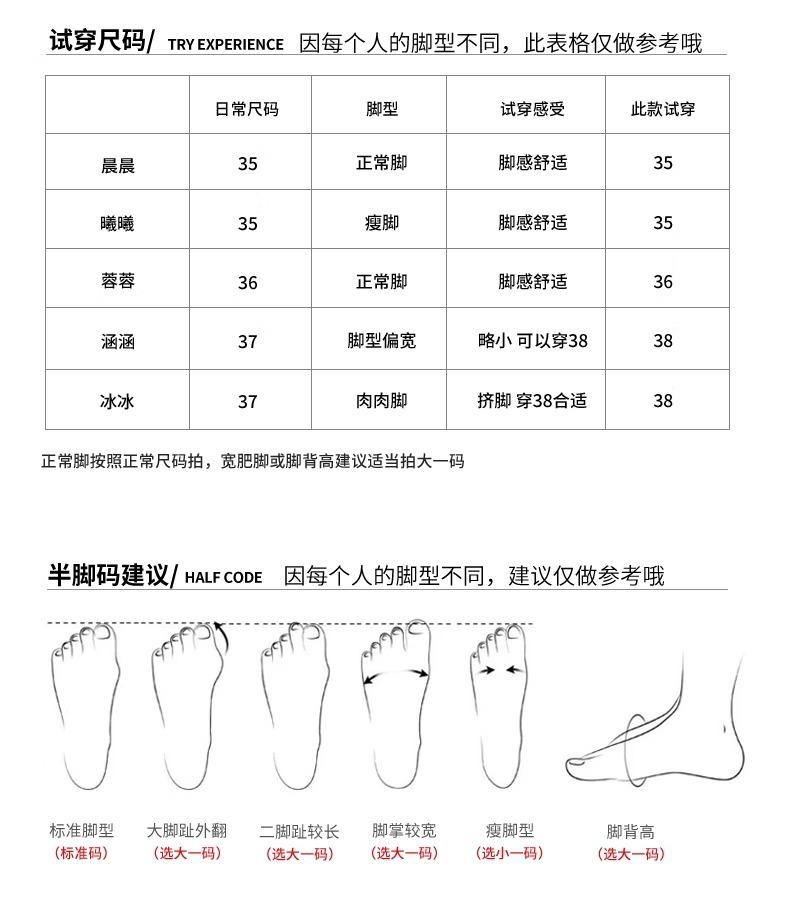 [Sobre la talla] Si le queda pequeño, verifique si hay una nota (una talla menos) en la clasificación de colores. Si no hay nota, todas son tallas estándar; simplemente pida su talla habitual. Si tiene pies anchos, puede pedir una talla más.