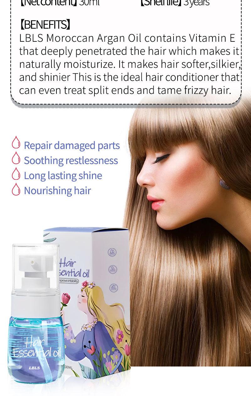 Aceite esencial para el cuidado del cabello LBLS de 30 ml para mejorar el frizz, suavizar el cabello fuerte y con fragancia duradera, aceite esencial para el cuidado del cabello al por mayor