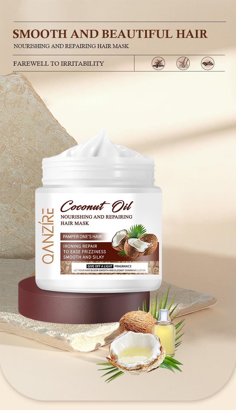 Mascarilla capilar de coco transfronteriza 500 g Mascarilla capilar Acondicionador en crema antifrizz con película invertida suave de coco
