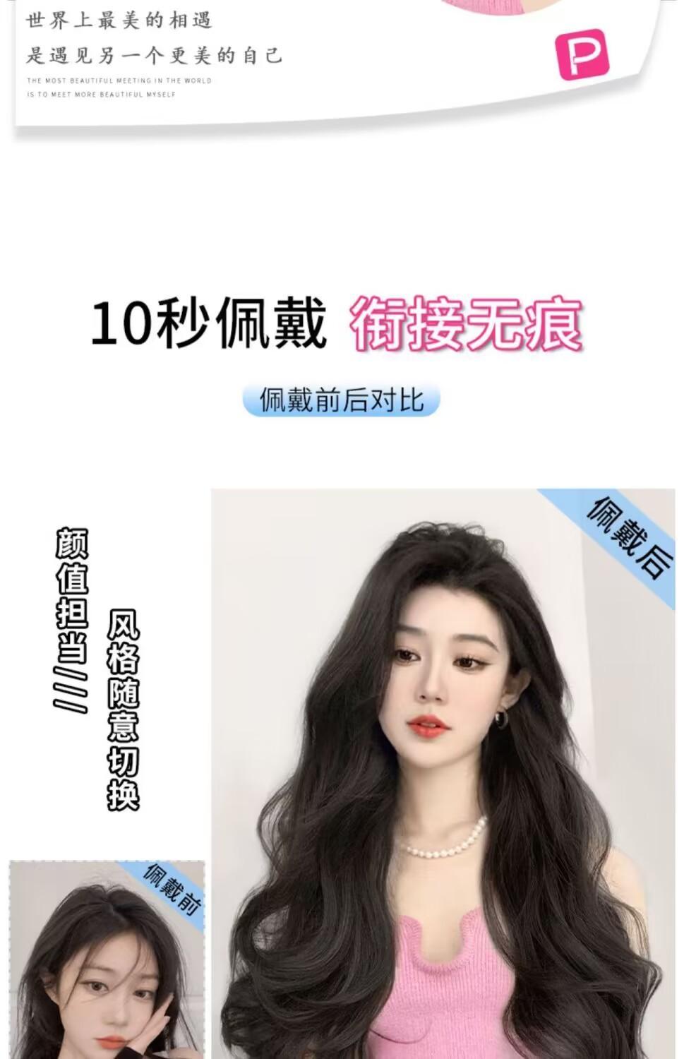 Peluca para Mujer Cabello Largo Rizado de Una Pieza Invisible y Sin Marcas Cabello Artificial en Capas Cabello de Onda Grande Francesa para Aumentar el Volumen Extensión de Cabello