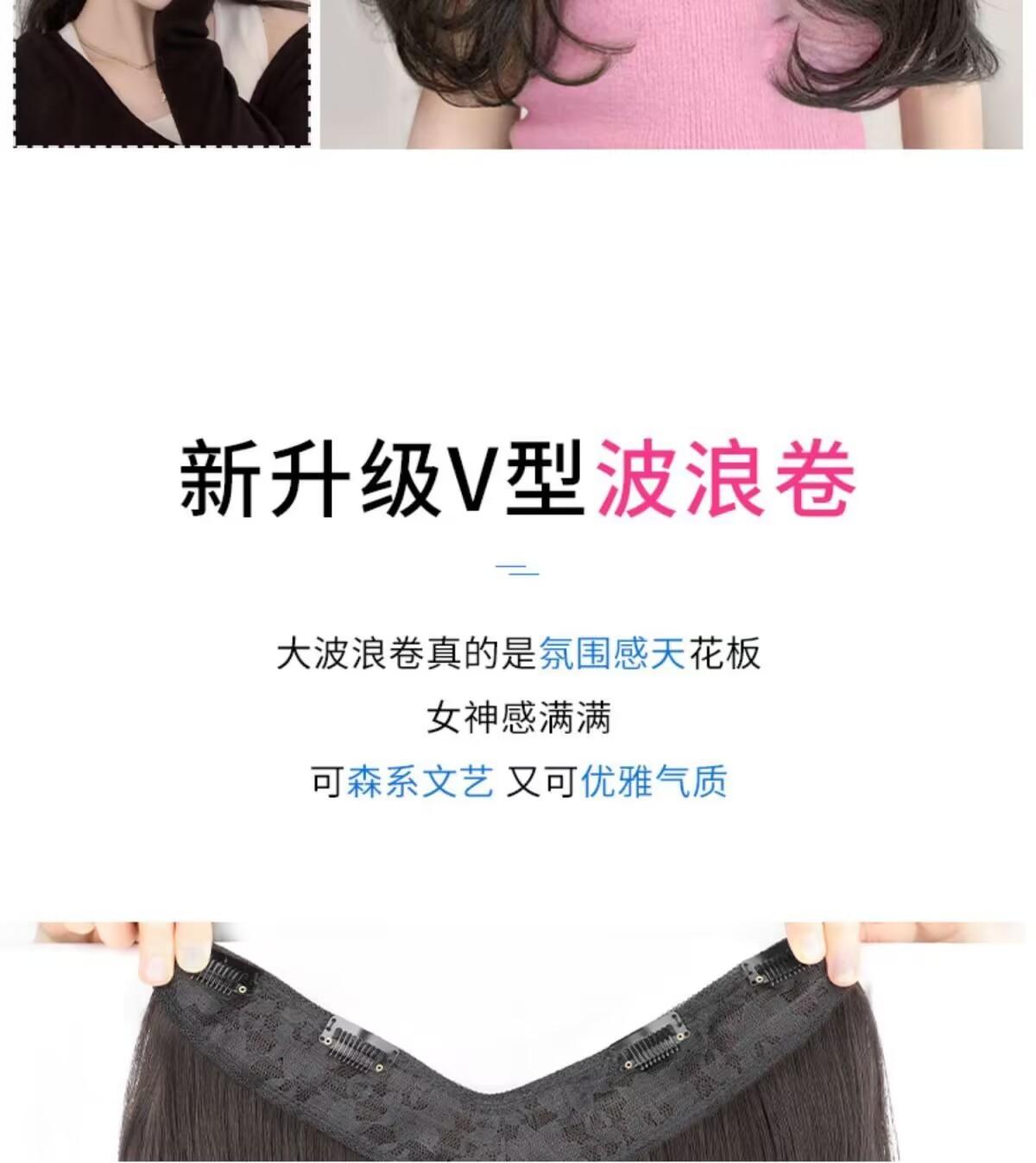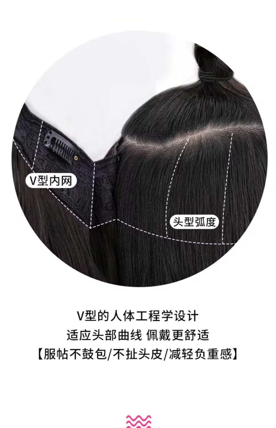 One-piece v-shaped curly hair piece 45cm155g-natural black