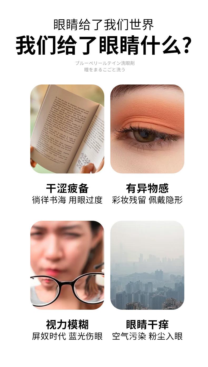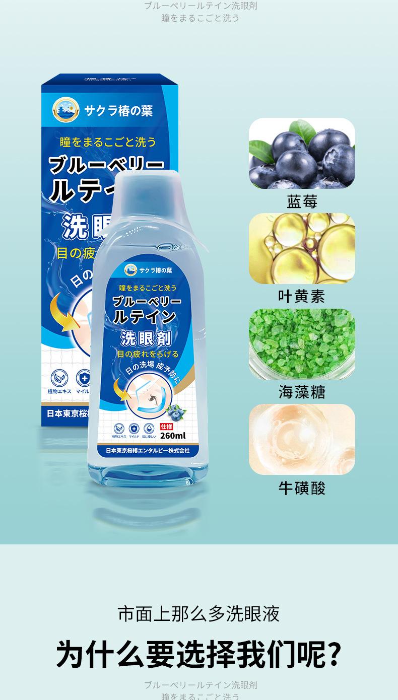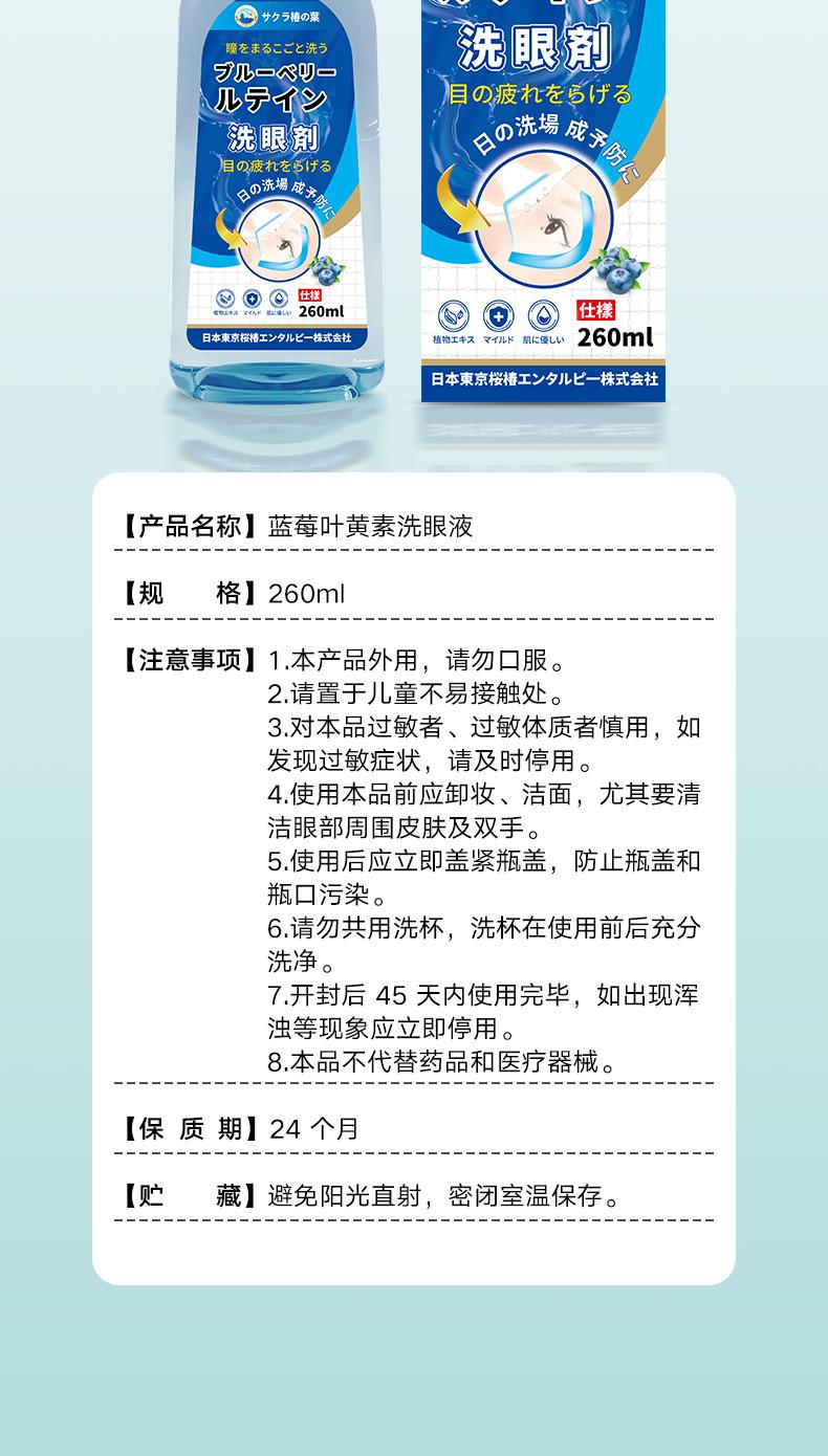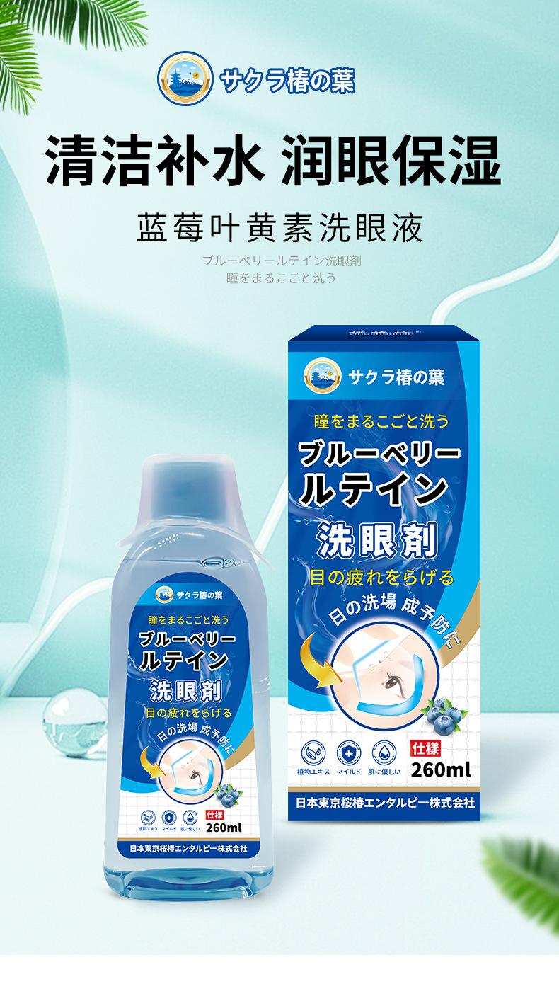 Solución limpiadora para el cuidado de los ojos con luteína y arándanos con entalpía de Sakura japonesa, para aliviar la fatiga y la sequedad, además de hidratar suavemente.