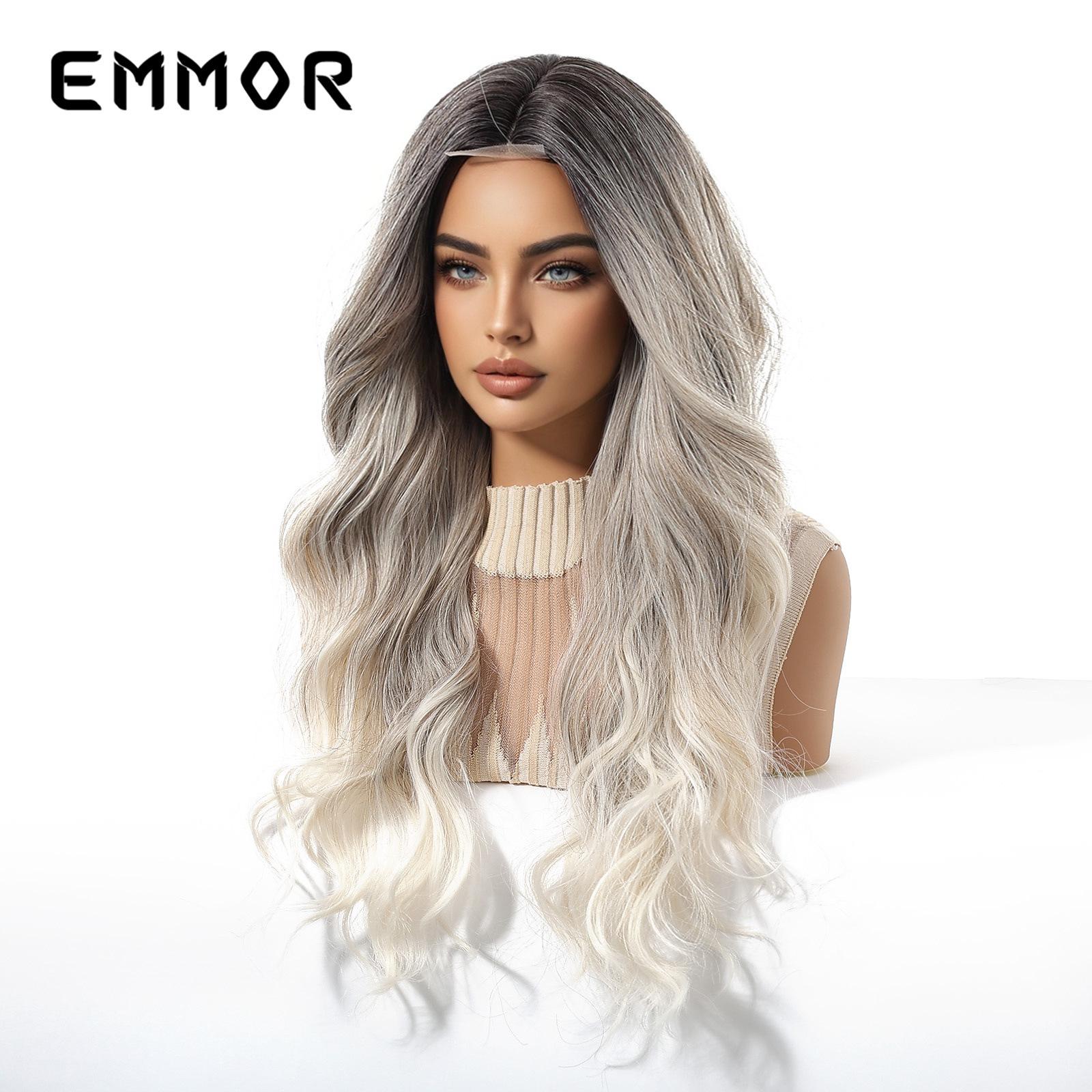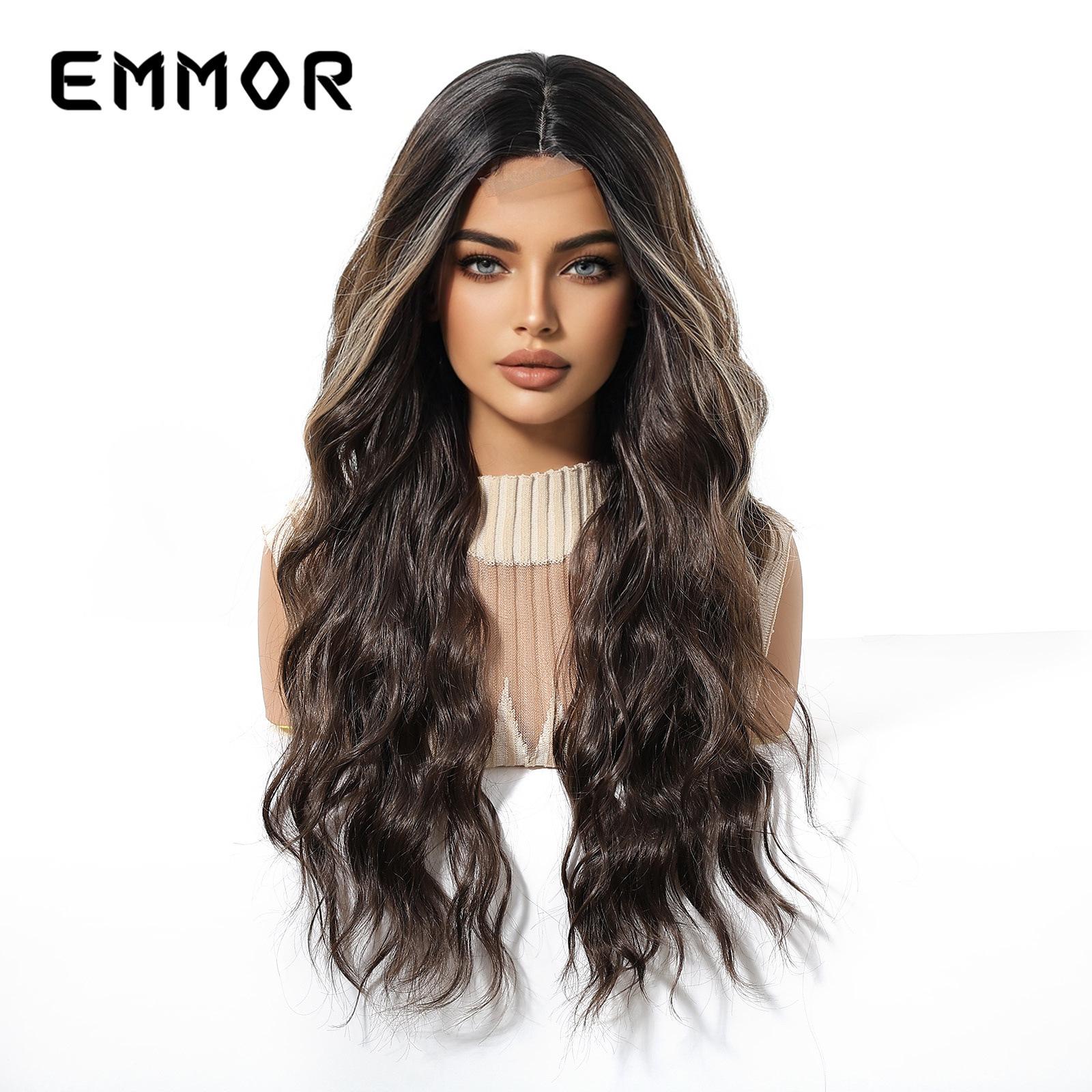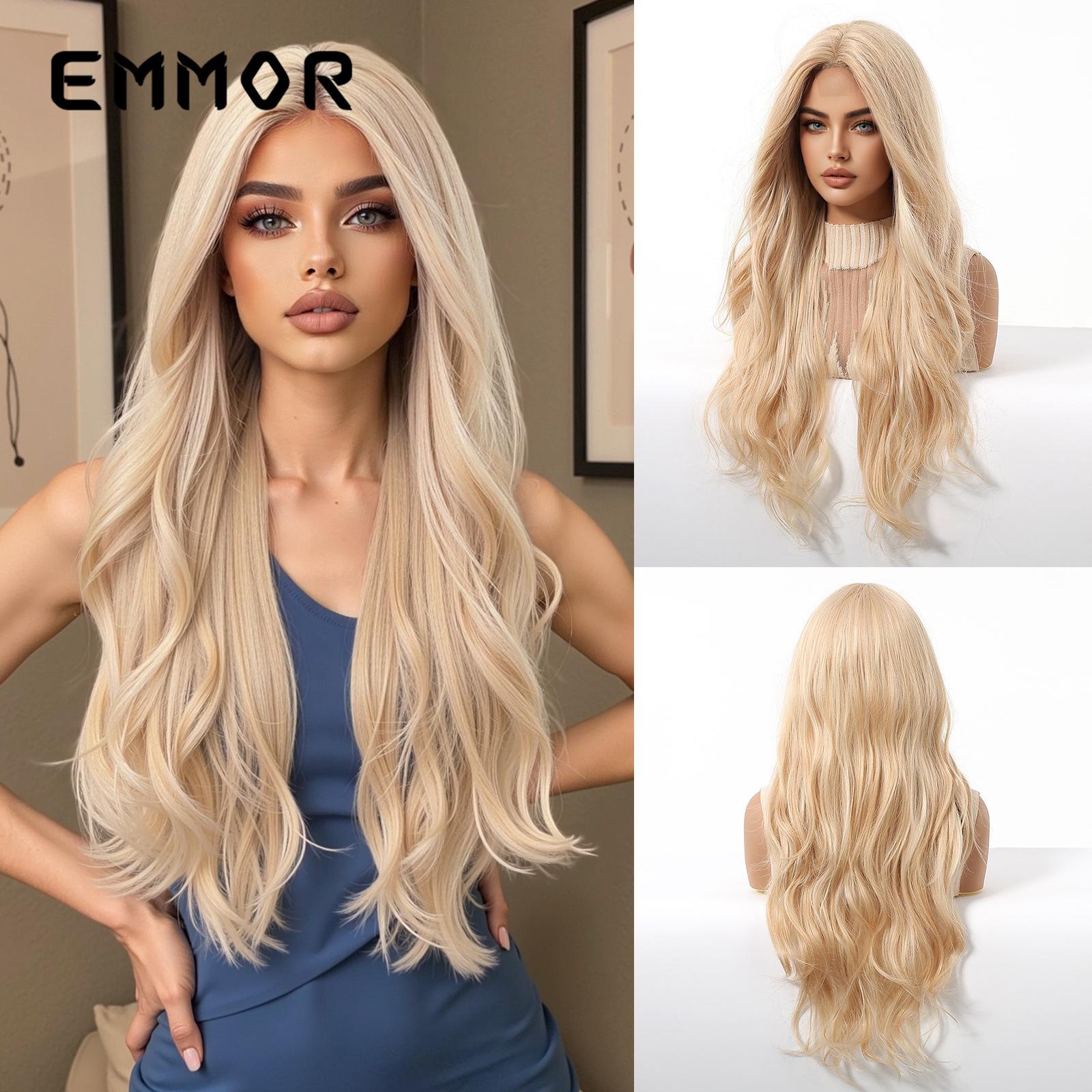Amazon Transfronterizo Caliente Encaje Frontal Rubio Medio Onda Grande Cabello Largo Rizado Peluca de Moda Estilo de Cabello Completo