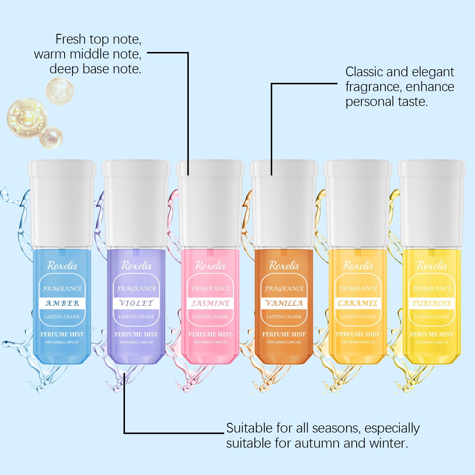 El perfume en aerosol emite encanto y una fragancia duradera, portátil, elegante y fresca con una variedad de fragancias atractivas.