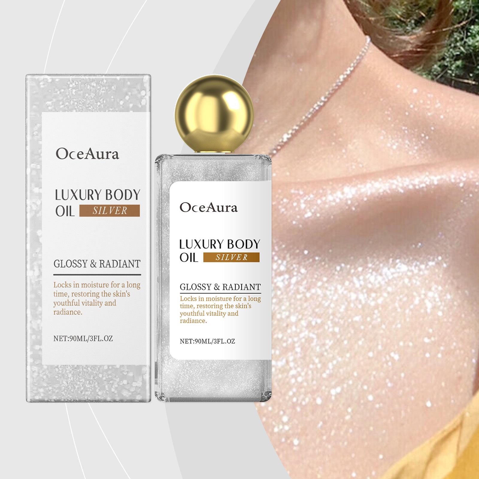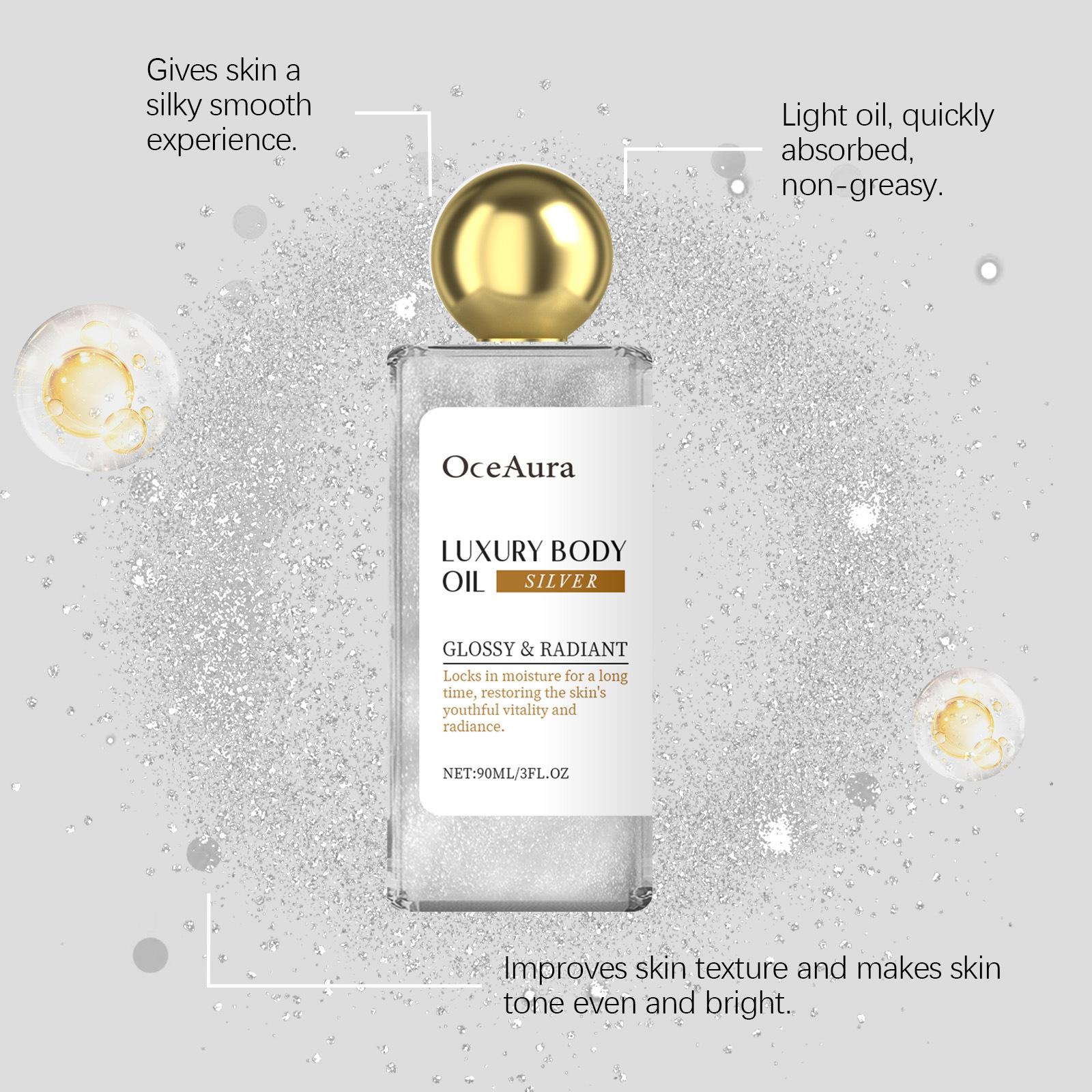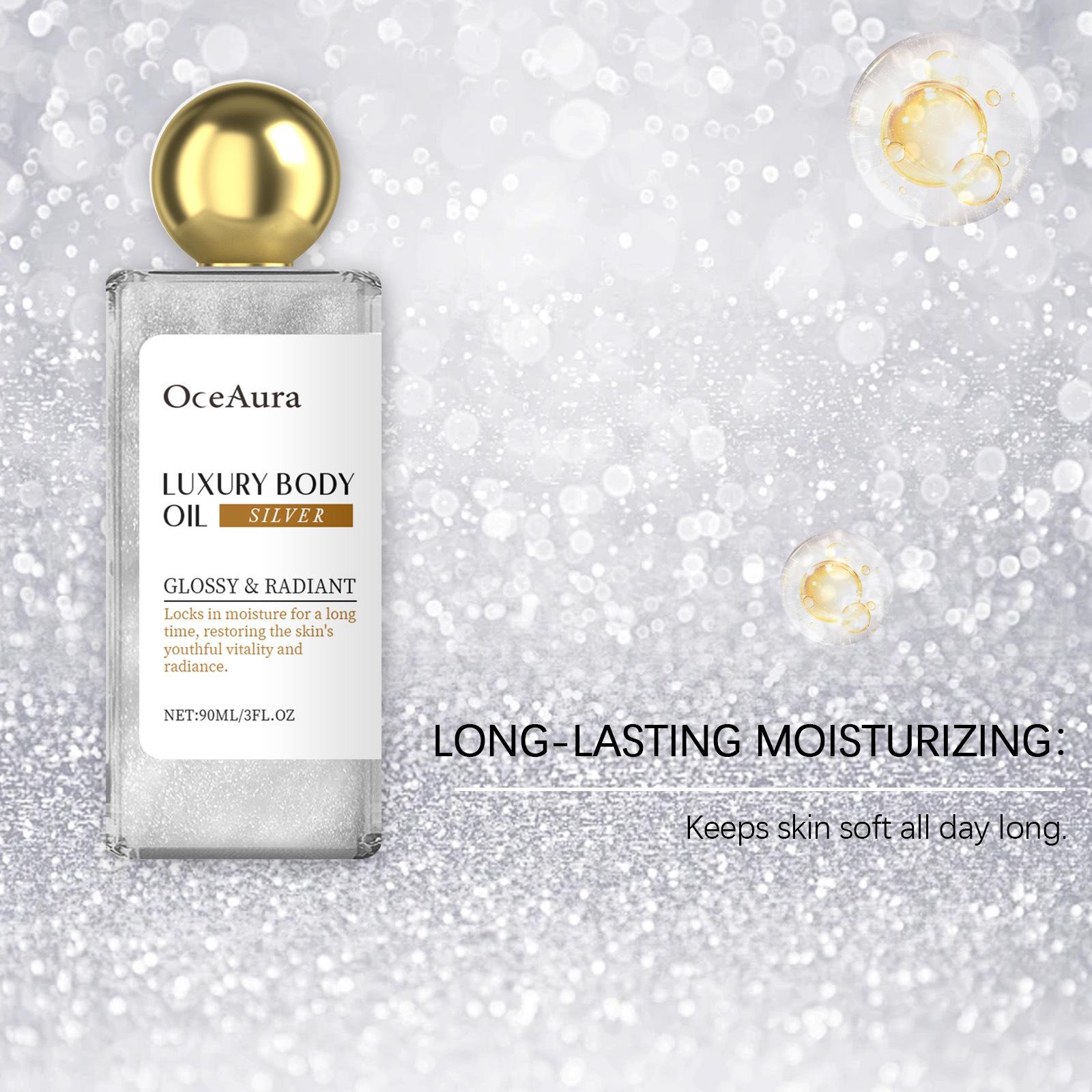 OCEAURA aceite corporal con brillo plateado hidratante para la piel cuidado corporal diario aceite con brillo fácil de aplicar