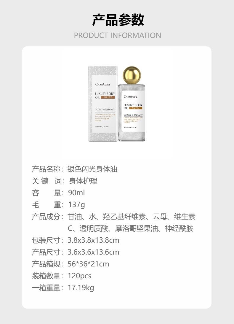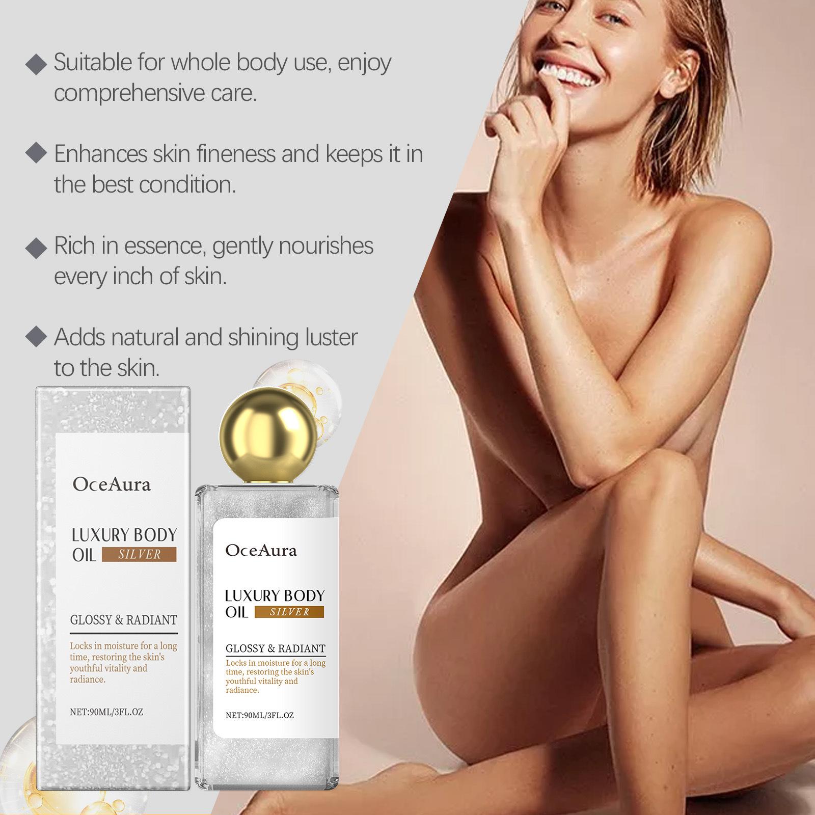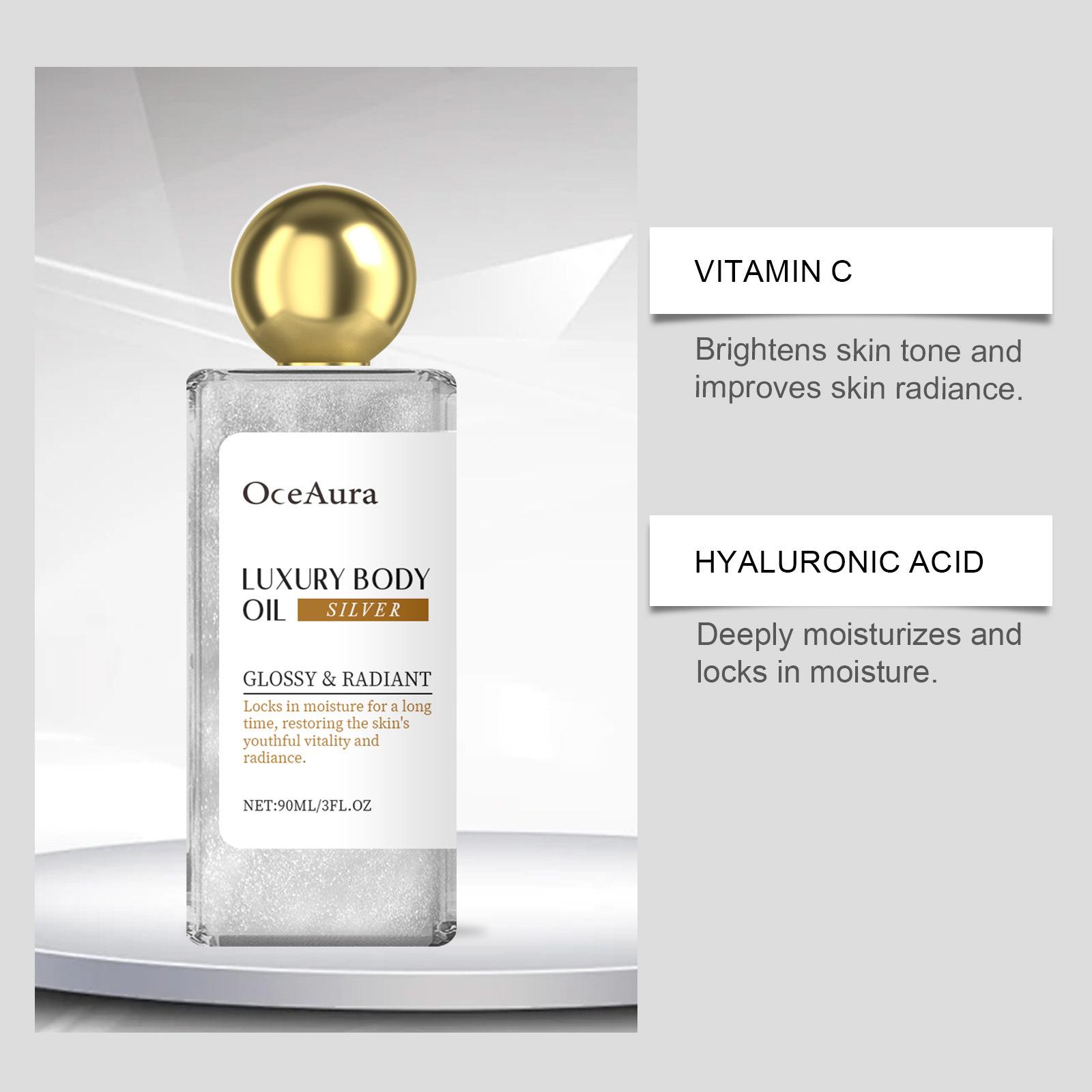 OCEAURA aceite corporal con brillo plateado hidratante para la piel cuidado corporal diario aceite con brillo fácil de aplicar