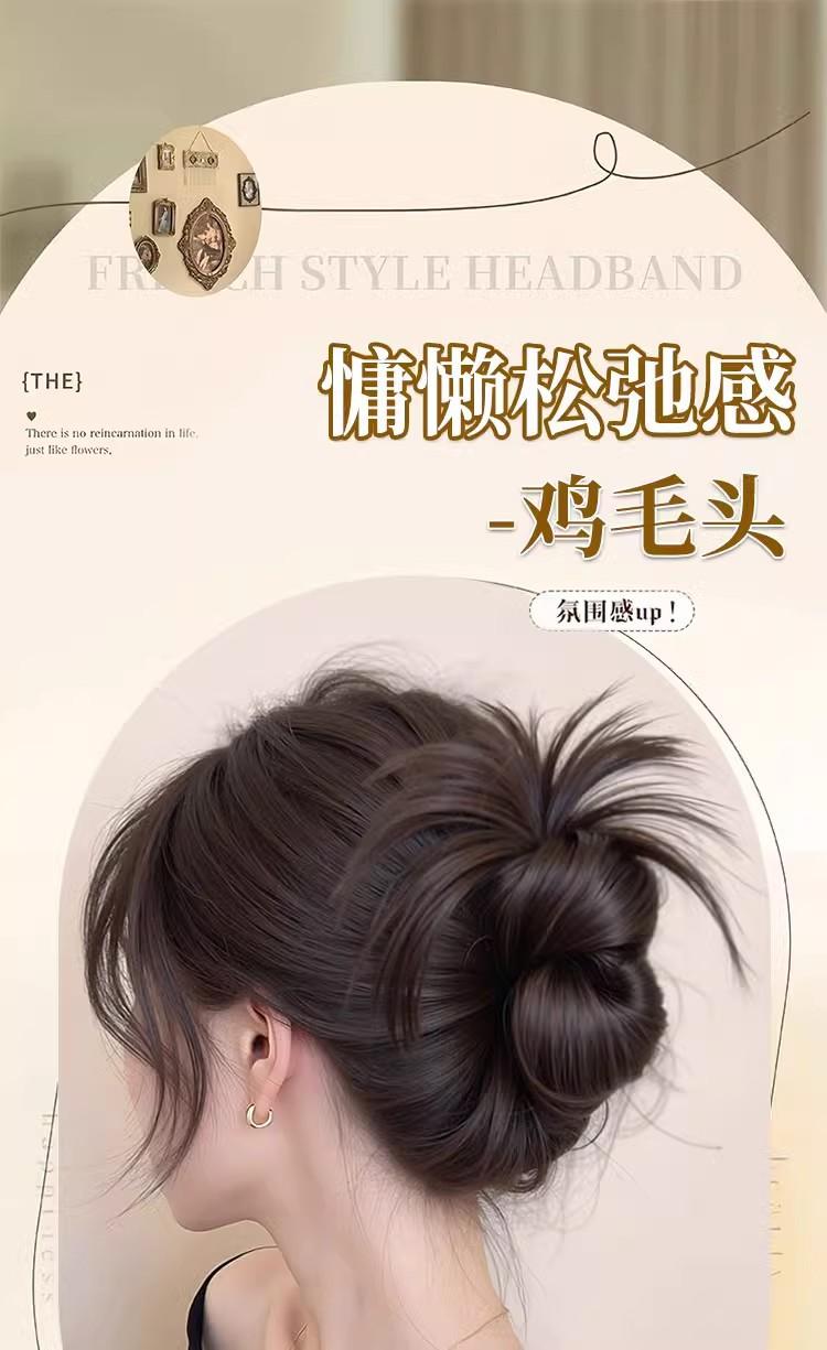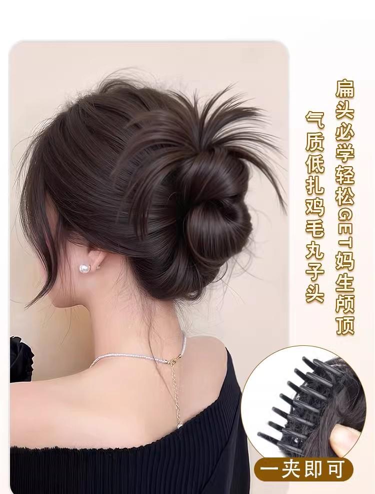 Pinza de Agarre de Pluma de Pollo Cabeza de Bola Peluca Cabello Artificial para Mujer Lazo Bajo Moño de Flor Bolsa de Cabello Accesorios para el Cabello Menos Invisible