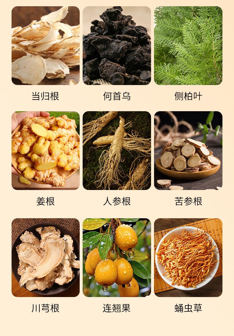 Champú Anticaída Qiweitang Ginseng Polygonum multiflorum Ginseng Ganoderma lucidum negro Extracto de Planta Herbal Limpieza Suave Cuidado Profundo