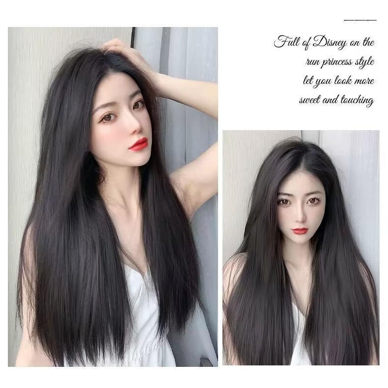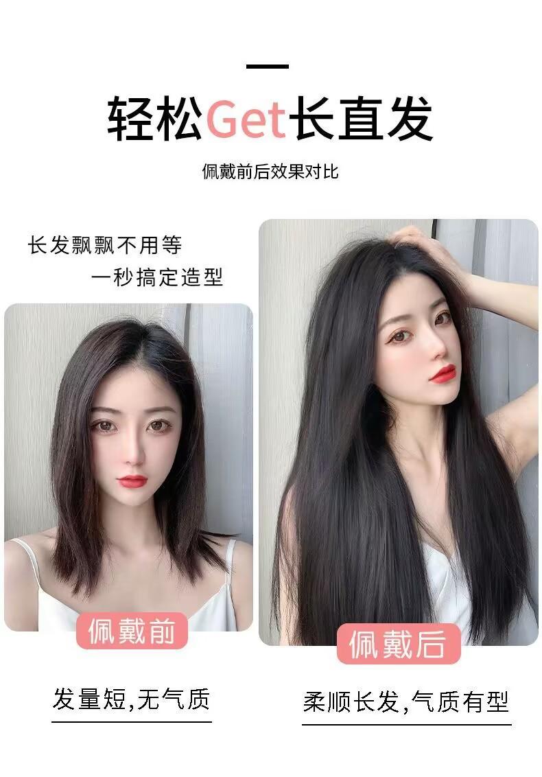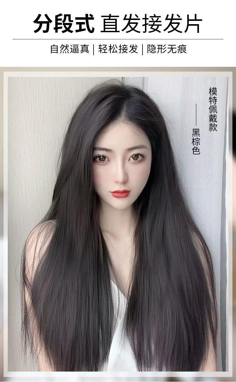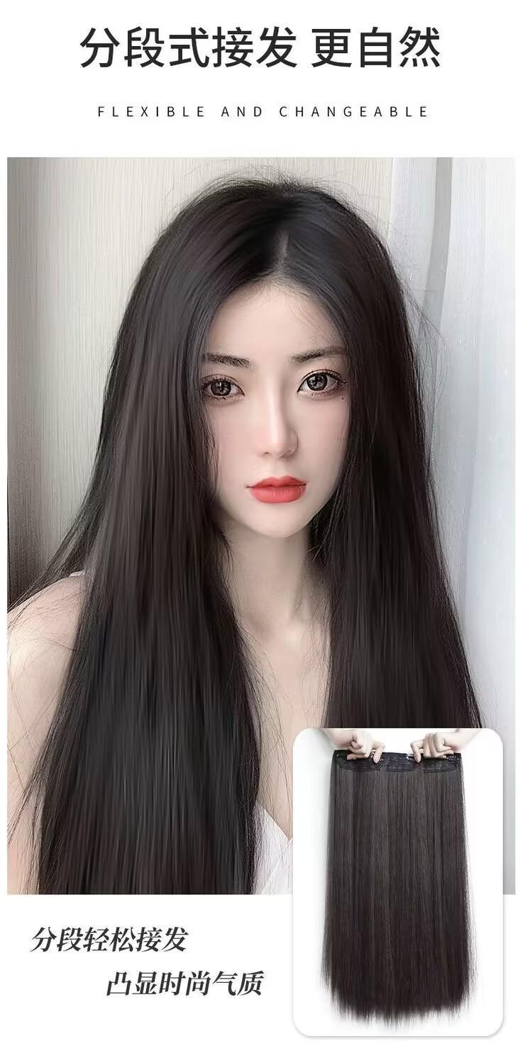 Peluca de cabello largo para mujer, de una sola pieza, que añade volumen, invisible, cabello largo y liso, esponjoso, sin dejar rastro, simulación de cabello, extensión de cabello de tres piezas