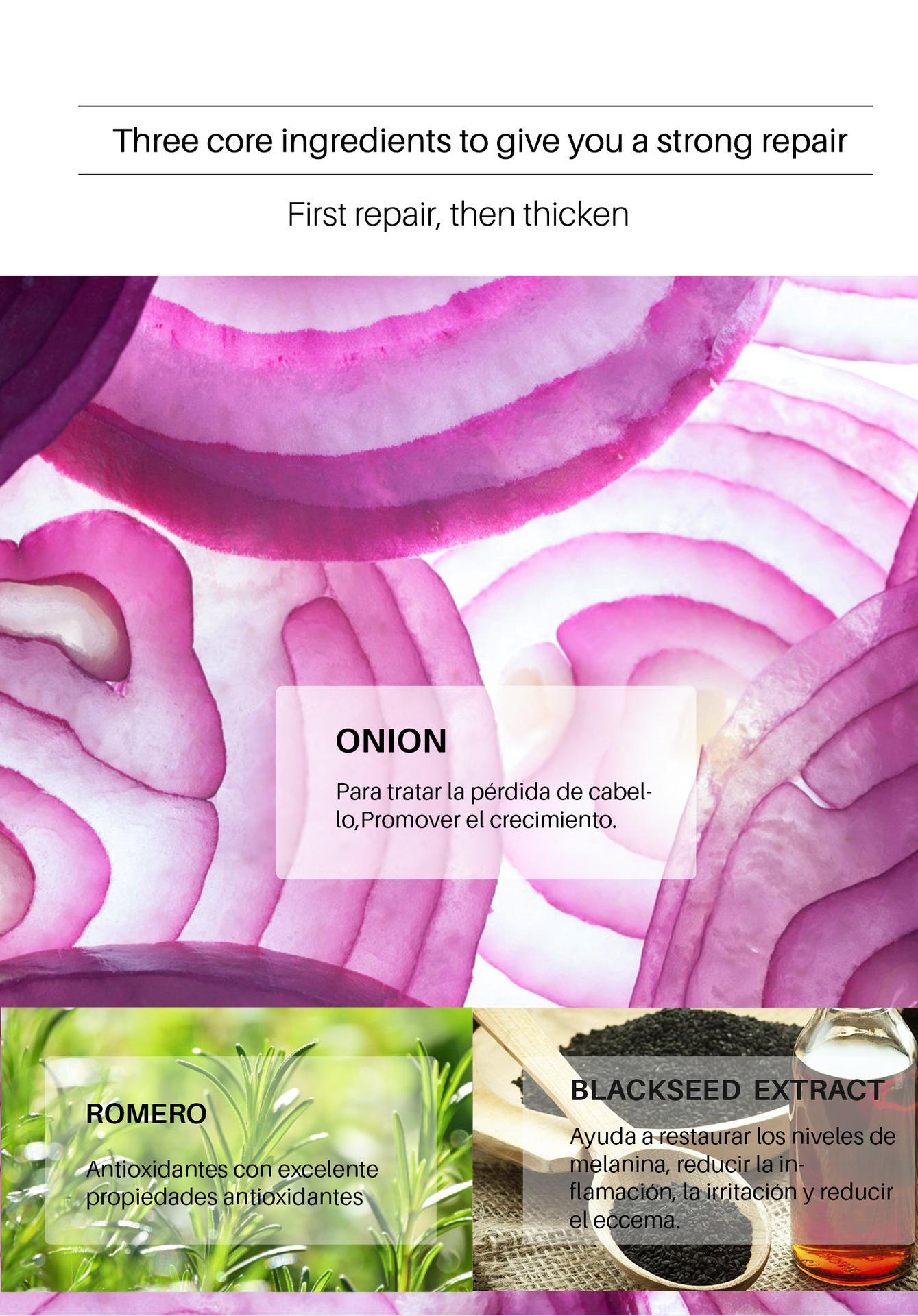 Cuidado del cabello Cebolla Romero Aceite esencial para el cabello Arroz negro en spray para el cabello Hidratante para el cabello Suero capilar de romero