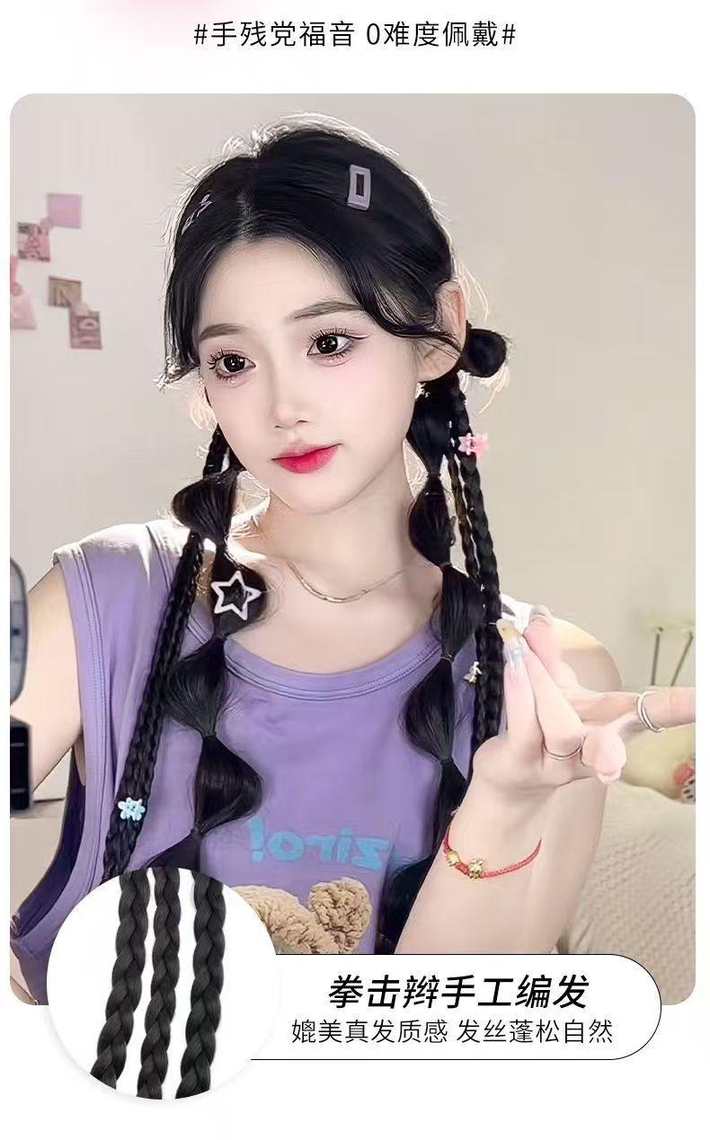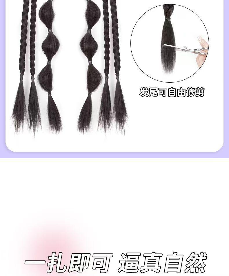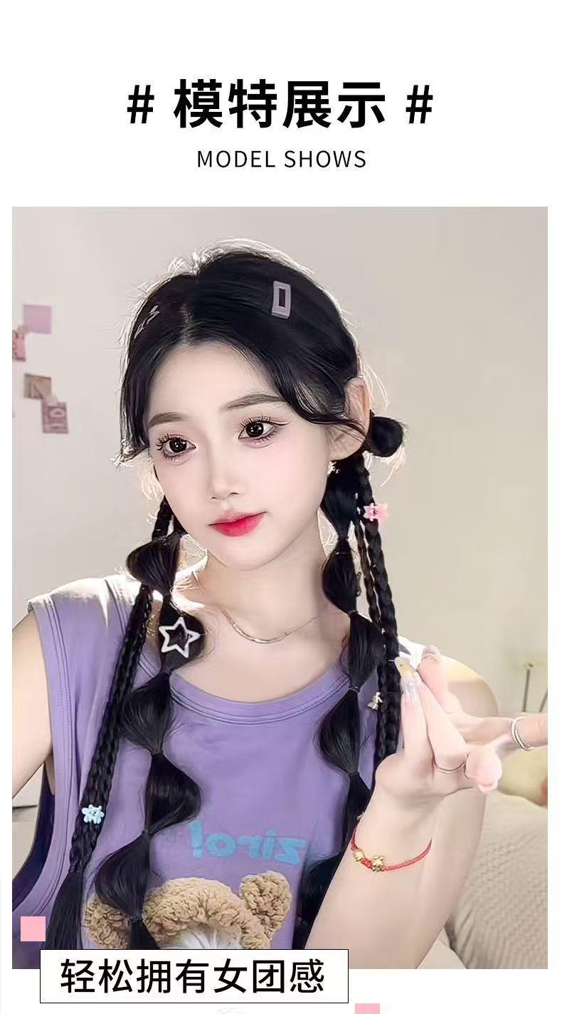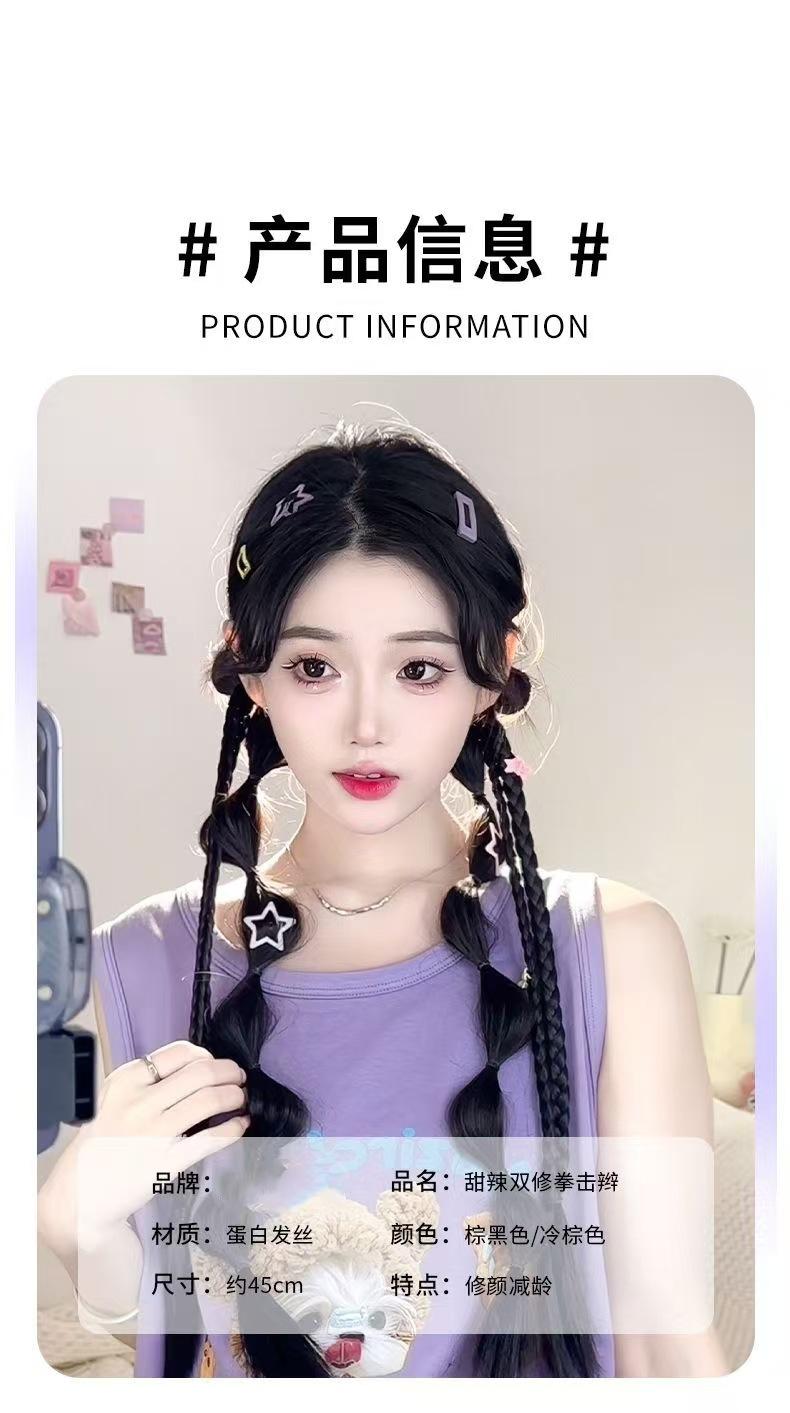 Peluca trenzada con cola de caballo para mujer, estilo Spice Girl, estilo dulce y moderno, con trenza de burbuja, popular en Internet, con la misma calabaza, doble cola de caballo y trenza de boxeo.