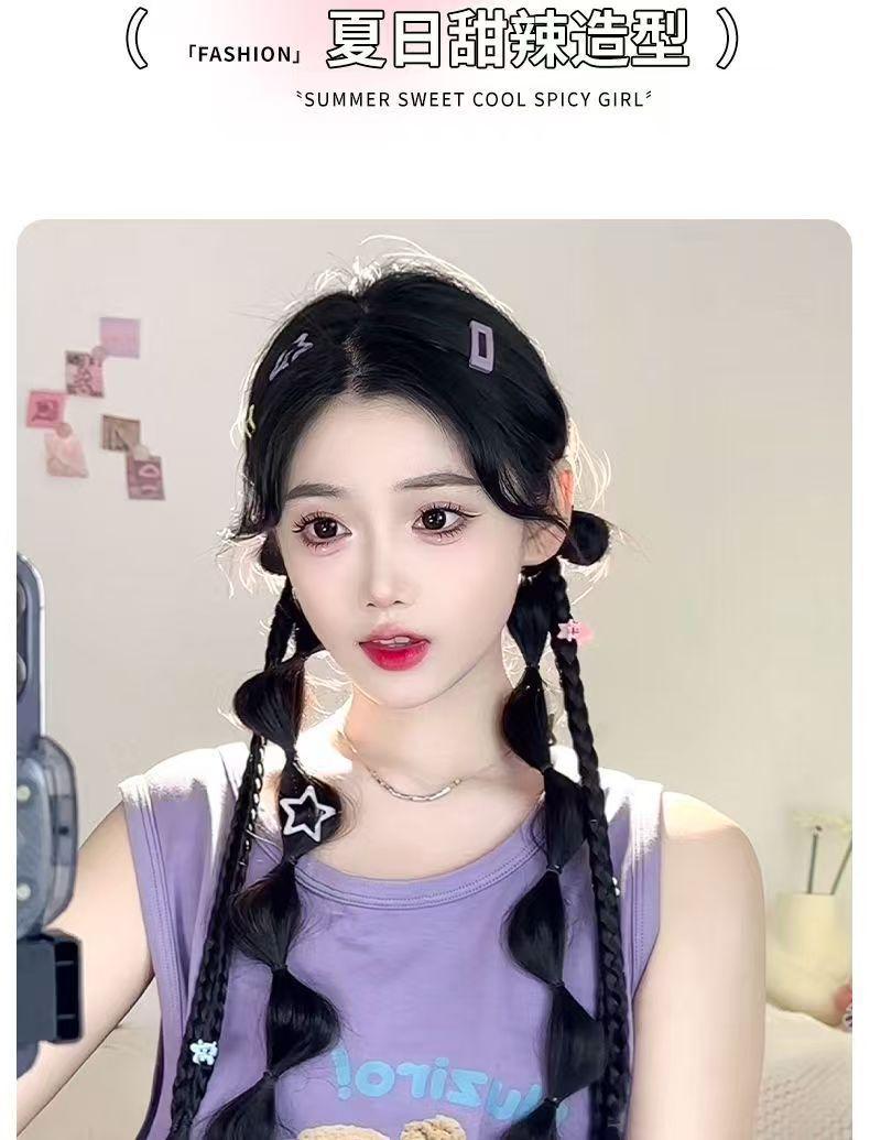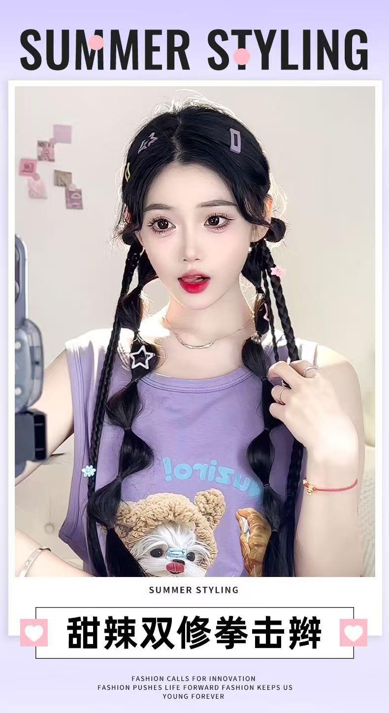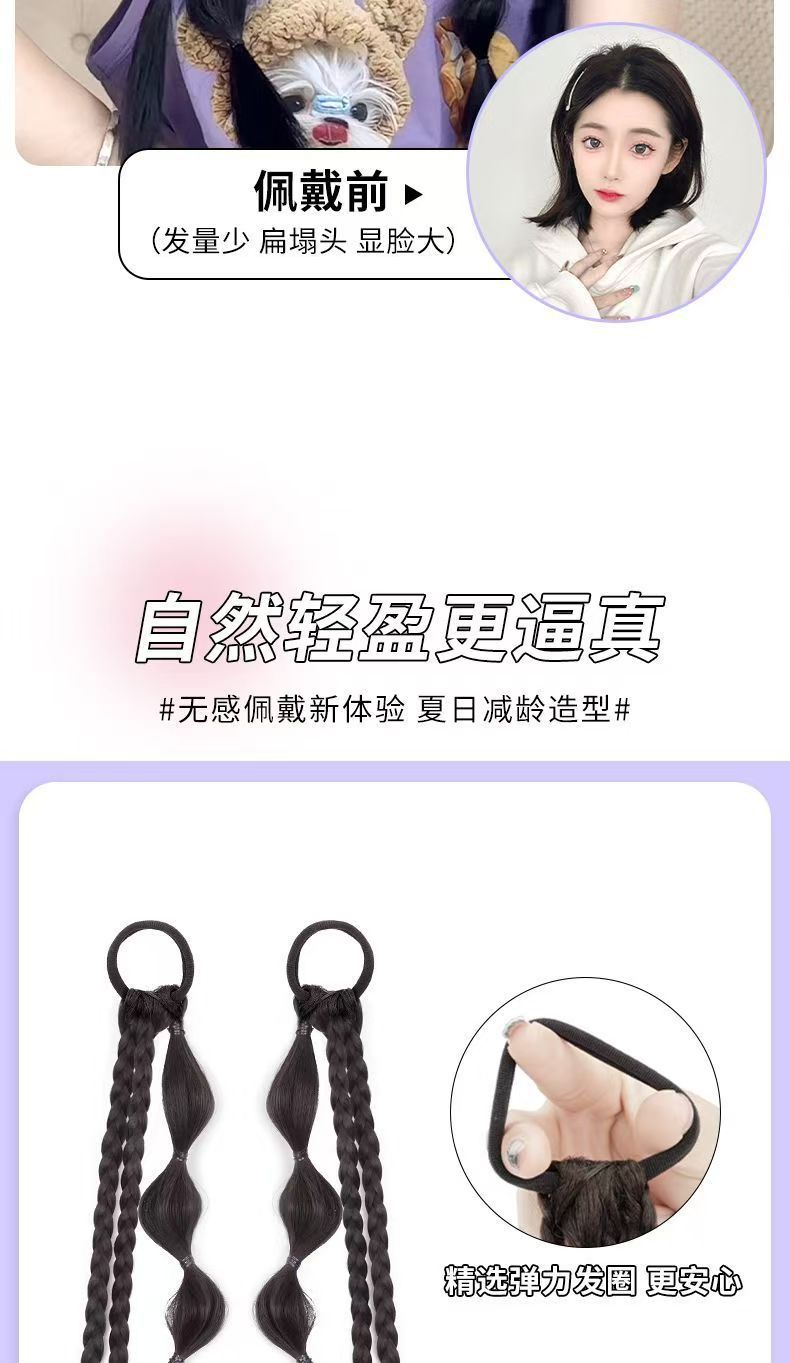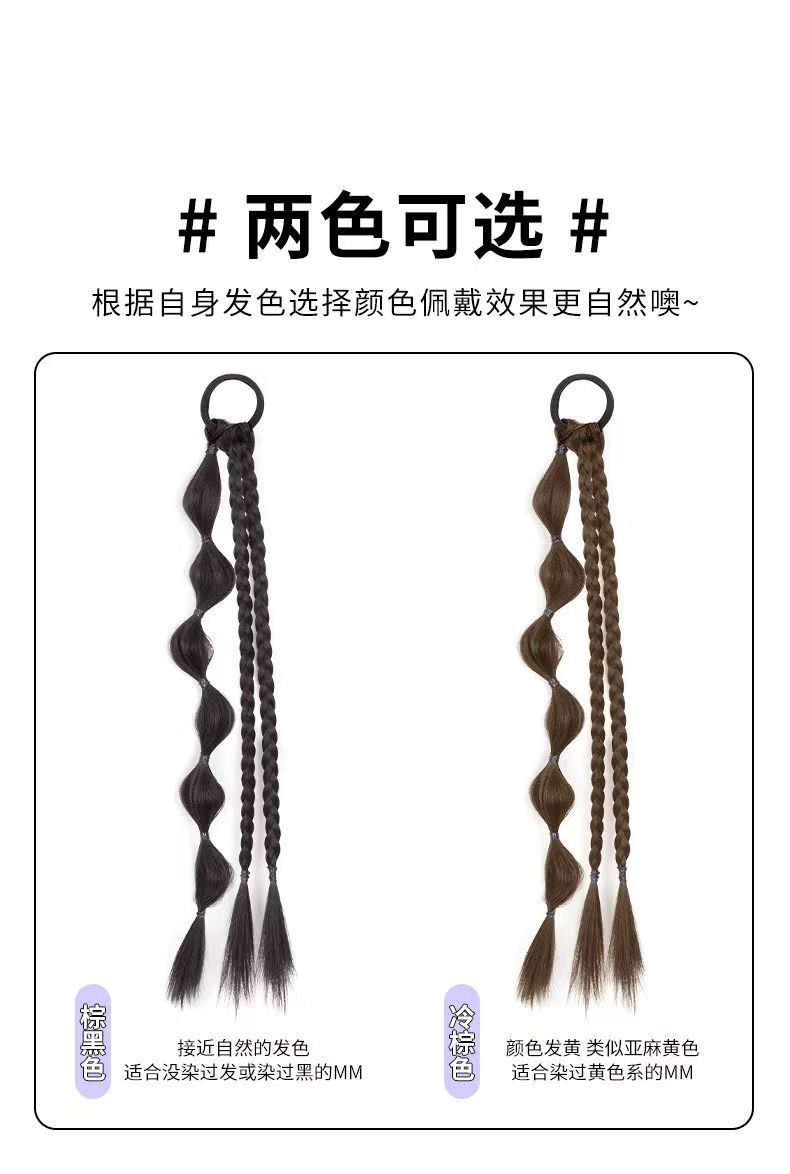 Peluca trenzada con cola de caballo para mujer, estilo Spice Girl, estilo dulce y moderno, con trenza de burbuja, popular en Internet, con la misma calabaza, doble cola de caballo y trenza de boxeo.