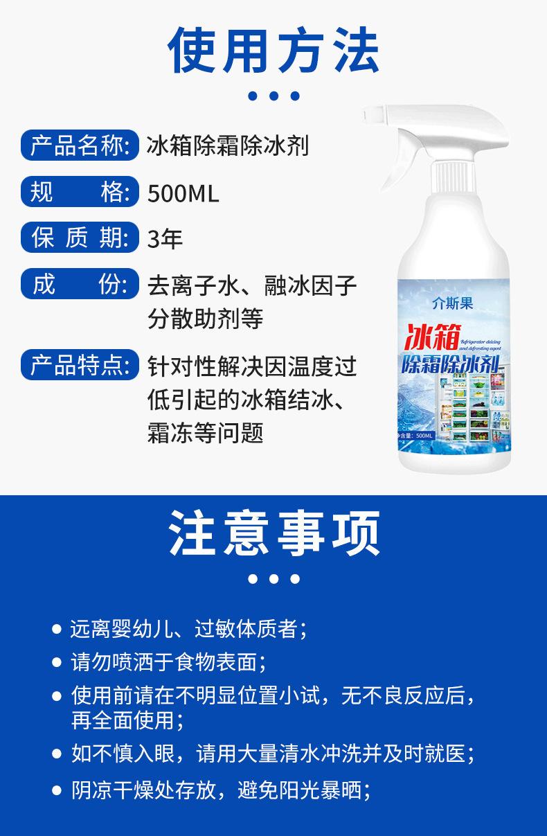Refrigerator defrost and ice remover 500ml replenishing solution