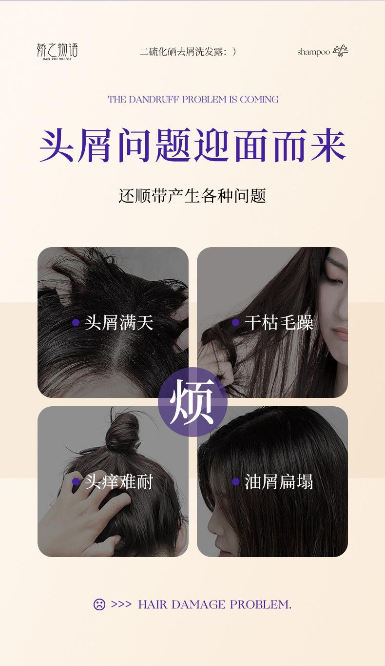 La historia del champú anticaspa con disulfuro de selenio Jiao de 300 ml, champú refrescante y esponjoso con control de grasa limpia al por mayor