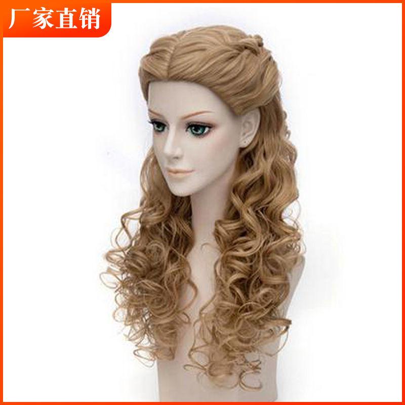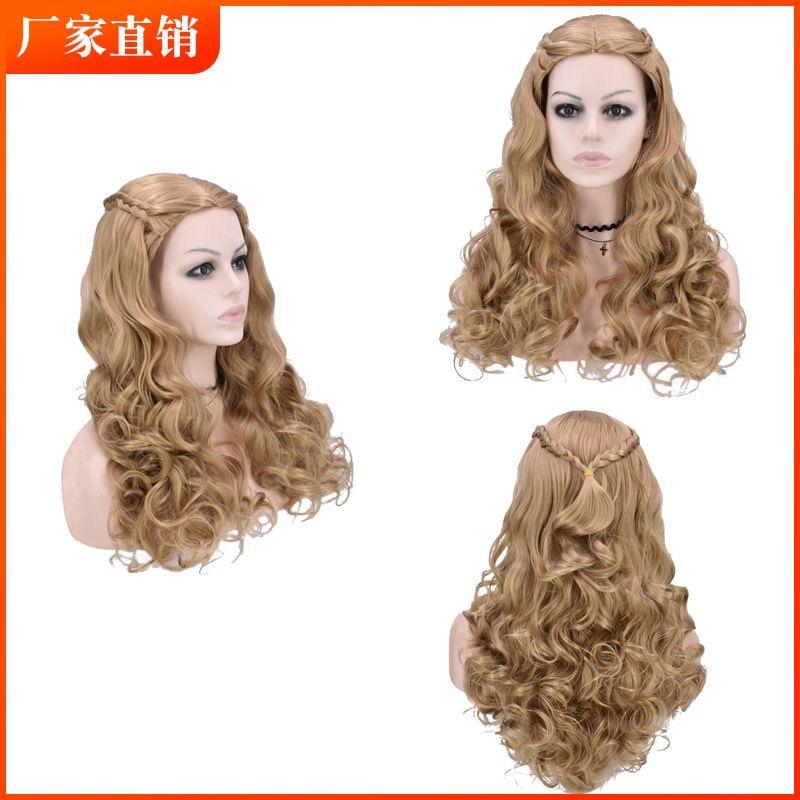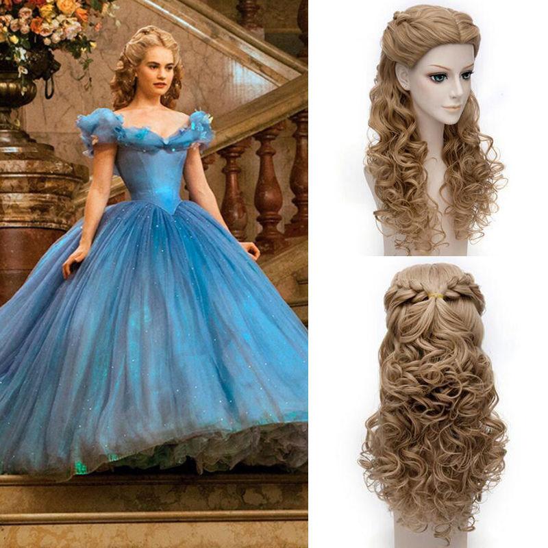 Peluca de Cenicienta Peluca de Cosplay de Cenicienta Moderna Dulce y Linda con Raya Media Cabello Largo Rizado Rubio Claro para Mujeres