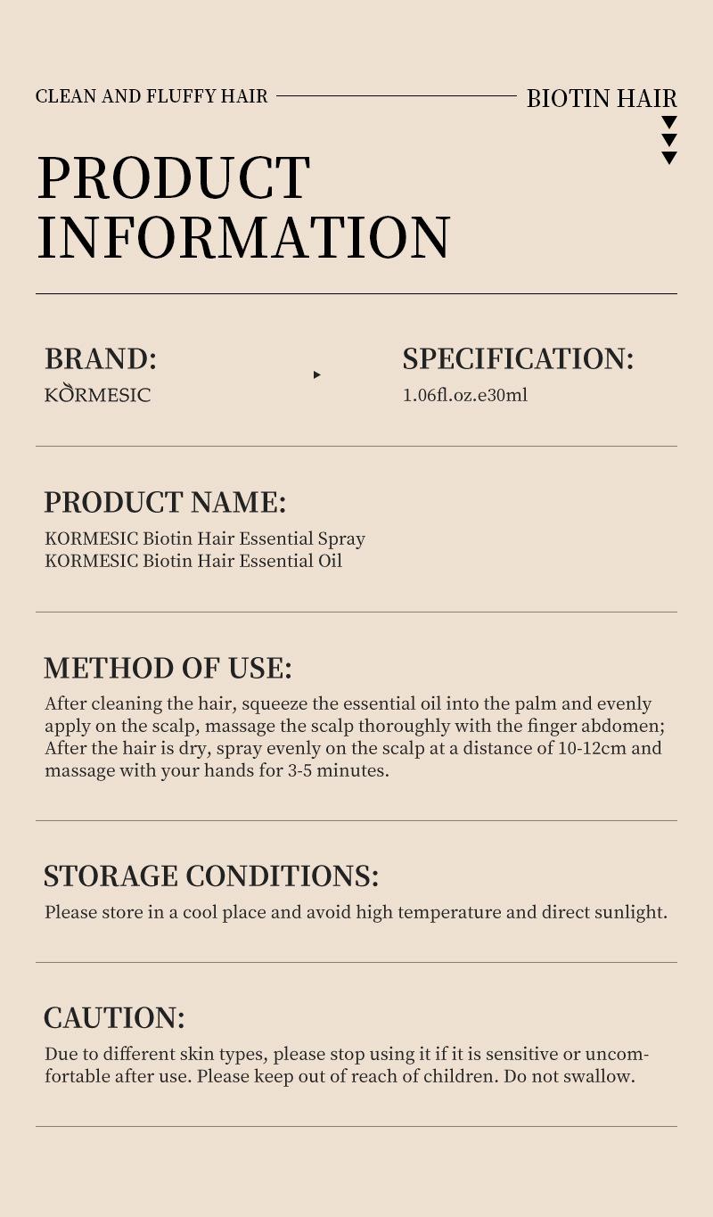 Kormesic biotin secret hair essential oil 30ml [only for foreign trade cross-border sales, domestic sales are prohibited, purchase means disclaimer and assume responsibility]